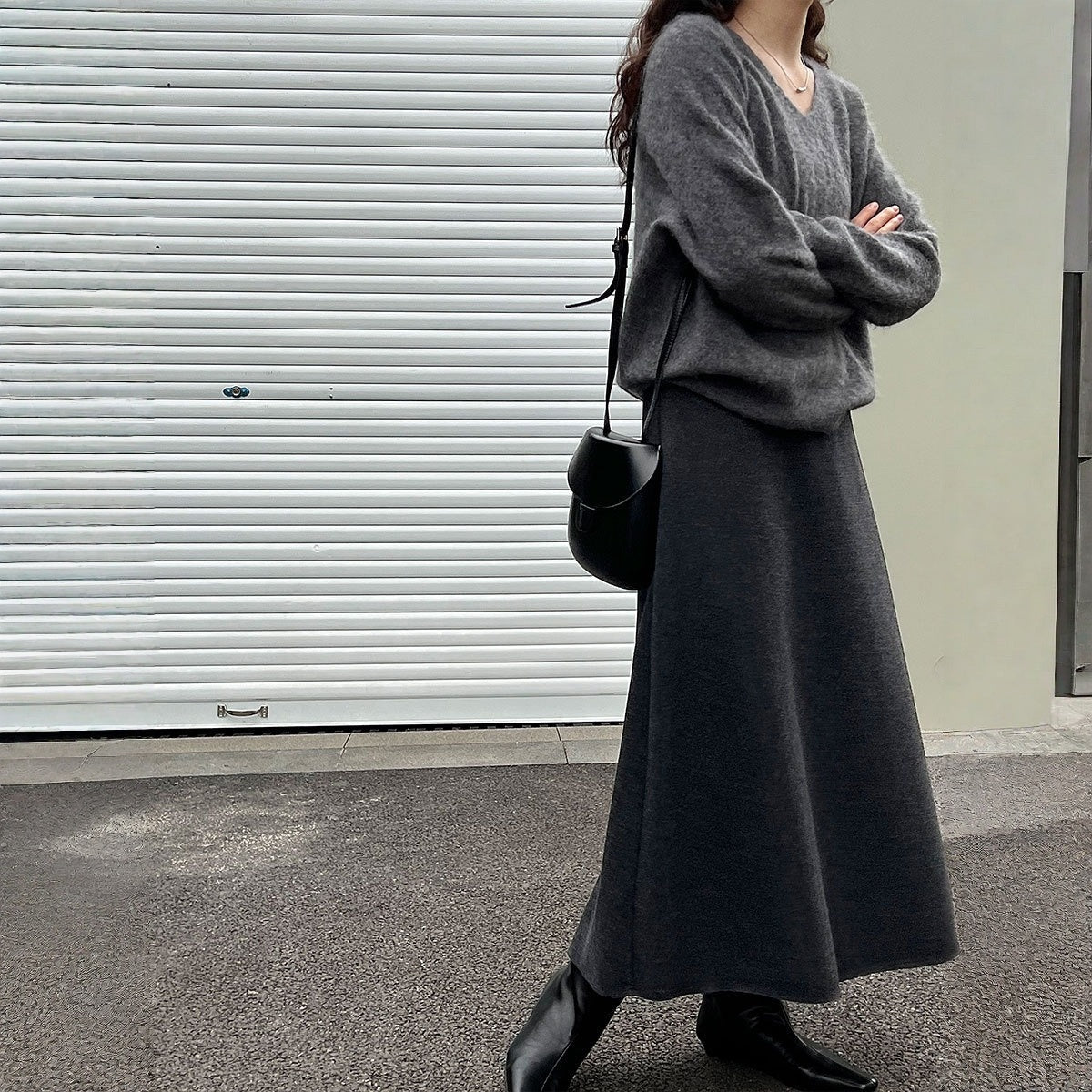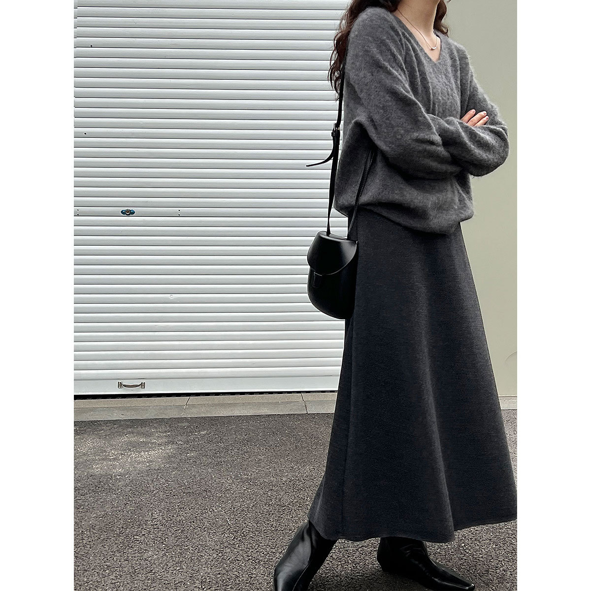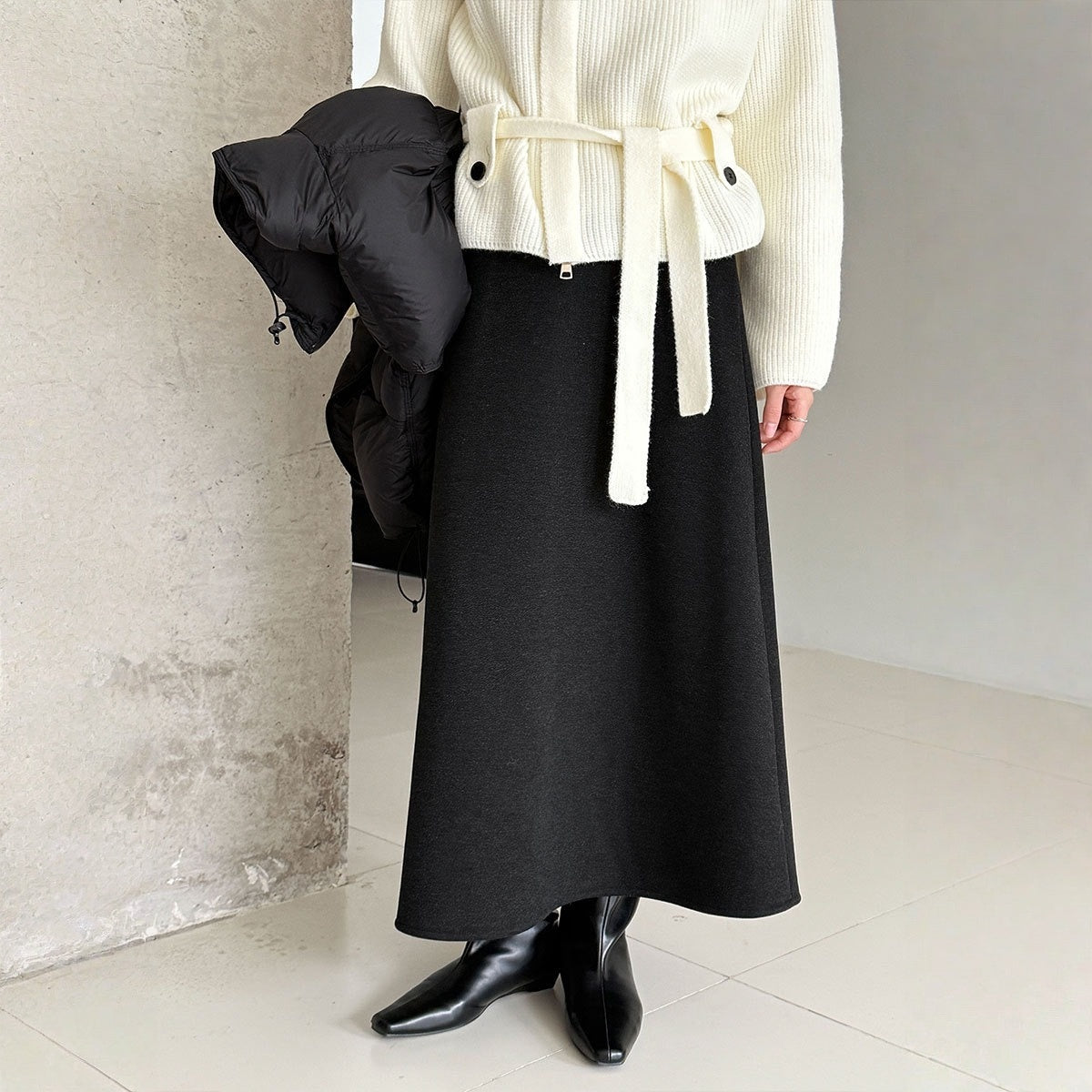 【商品名】【ボトムス】落ち感 細見え ウール裏起毛 Aラインロング スカート 【JZシリーズ】