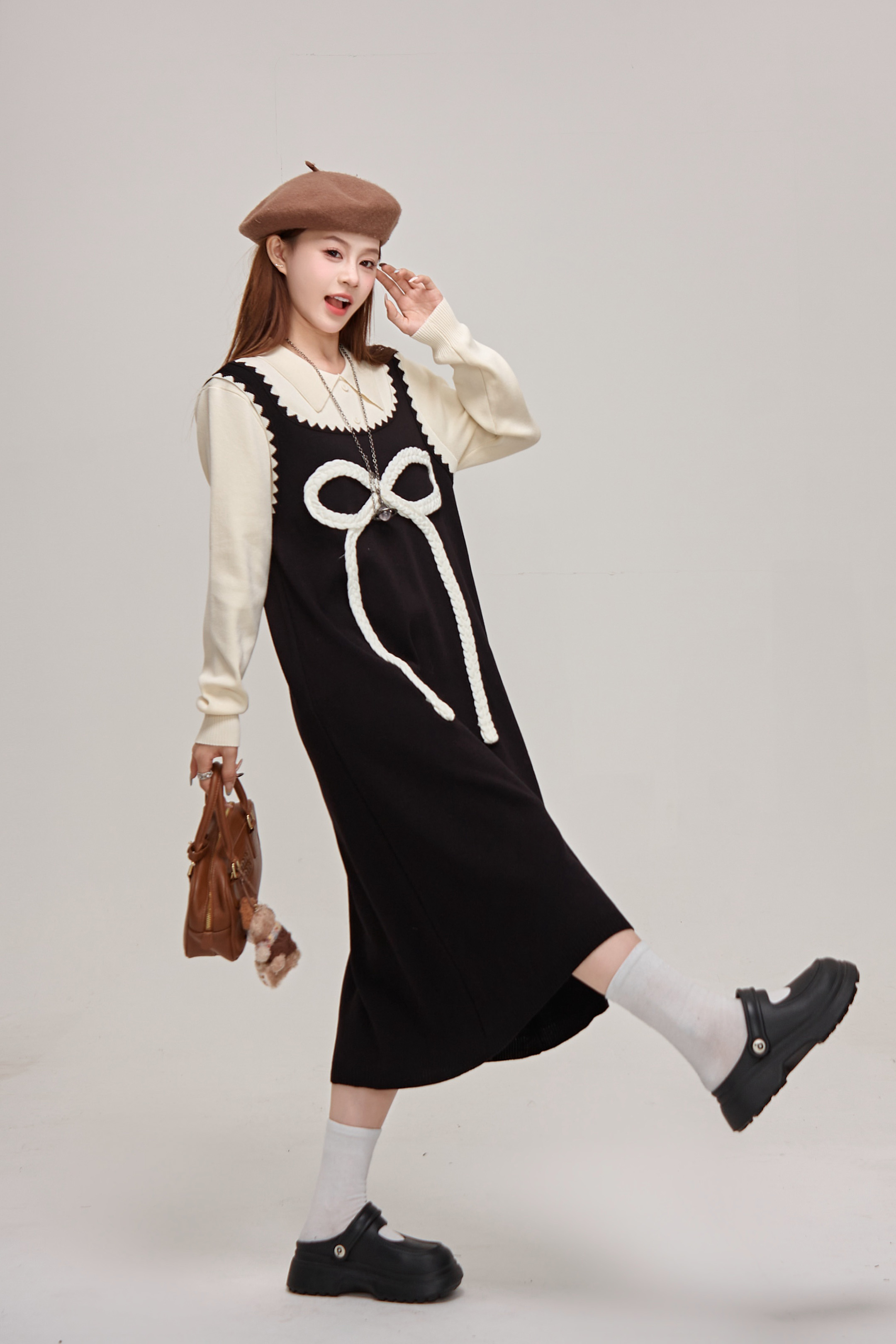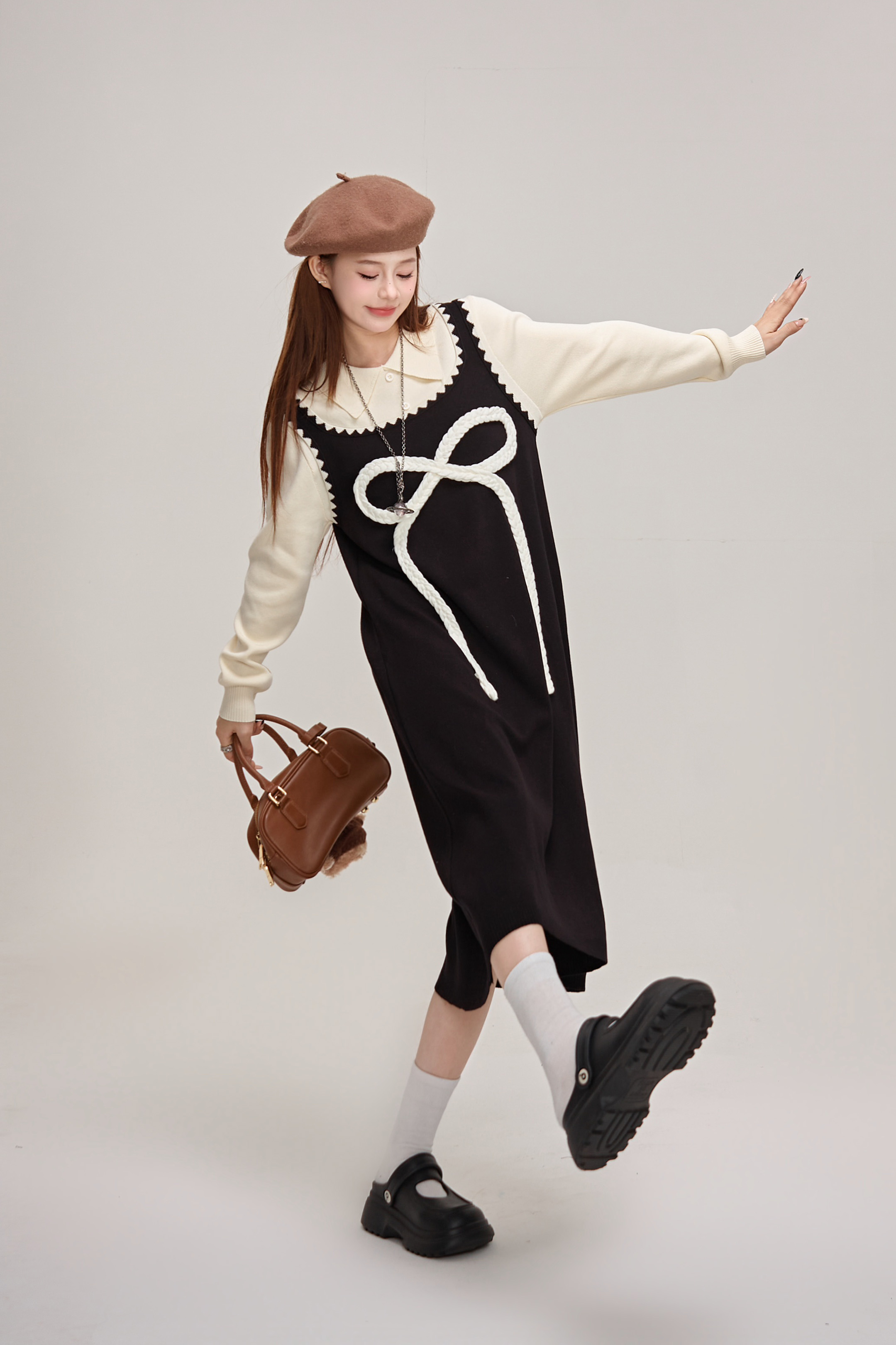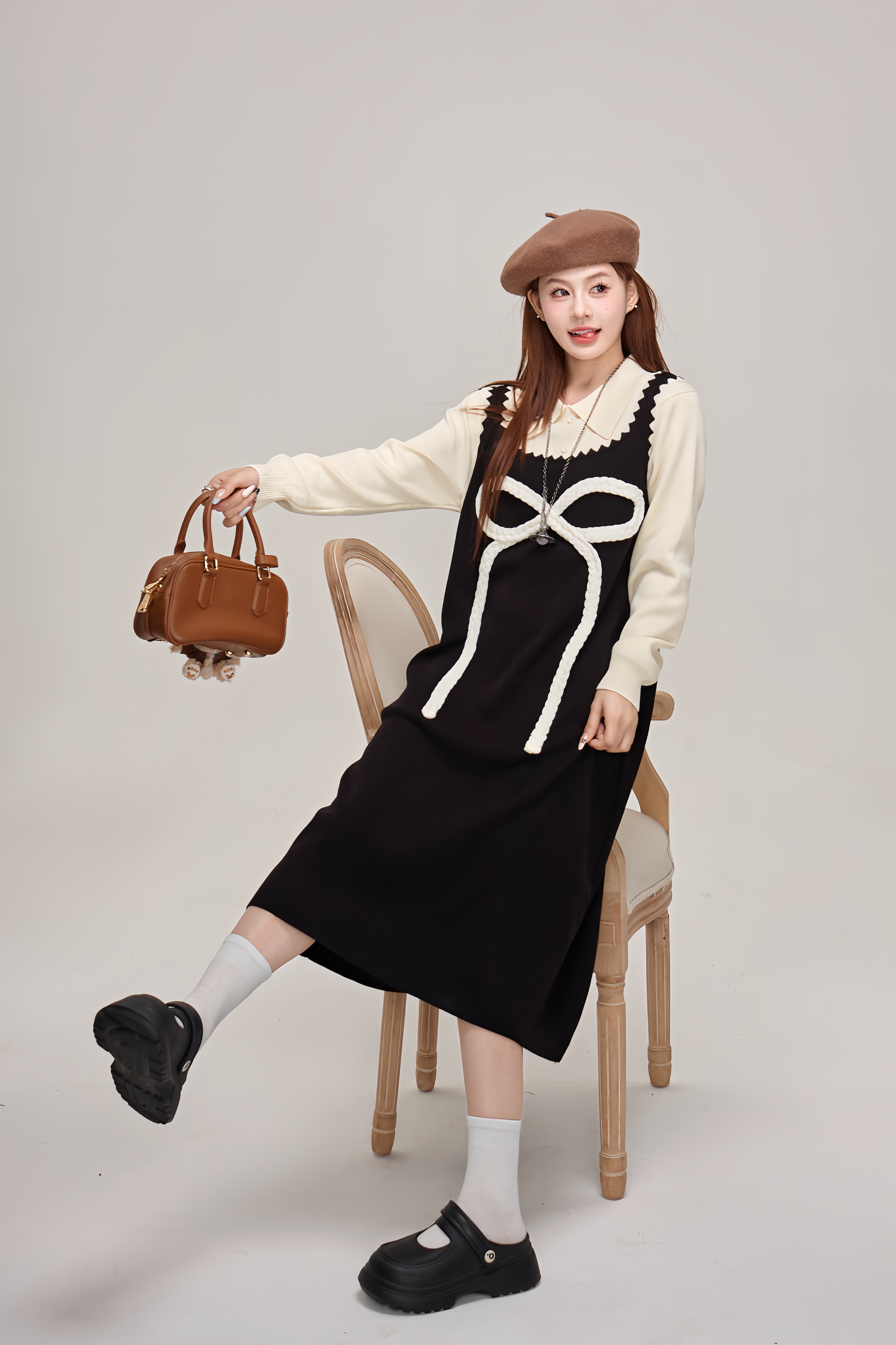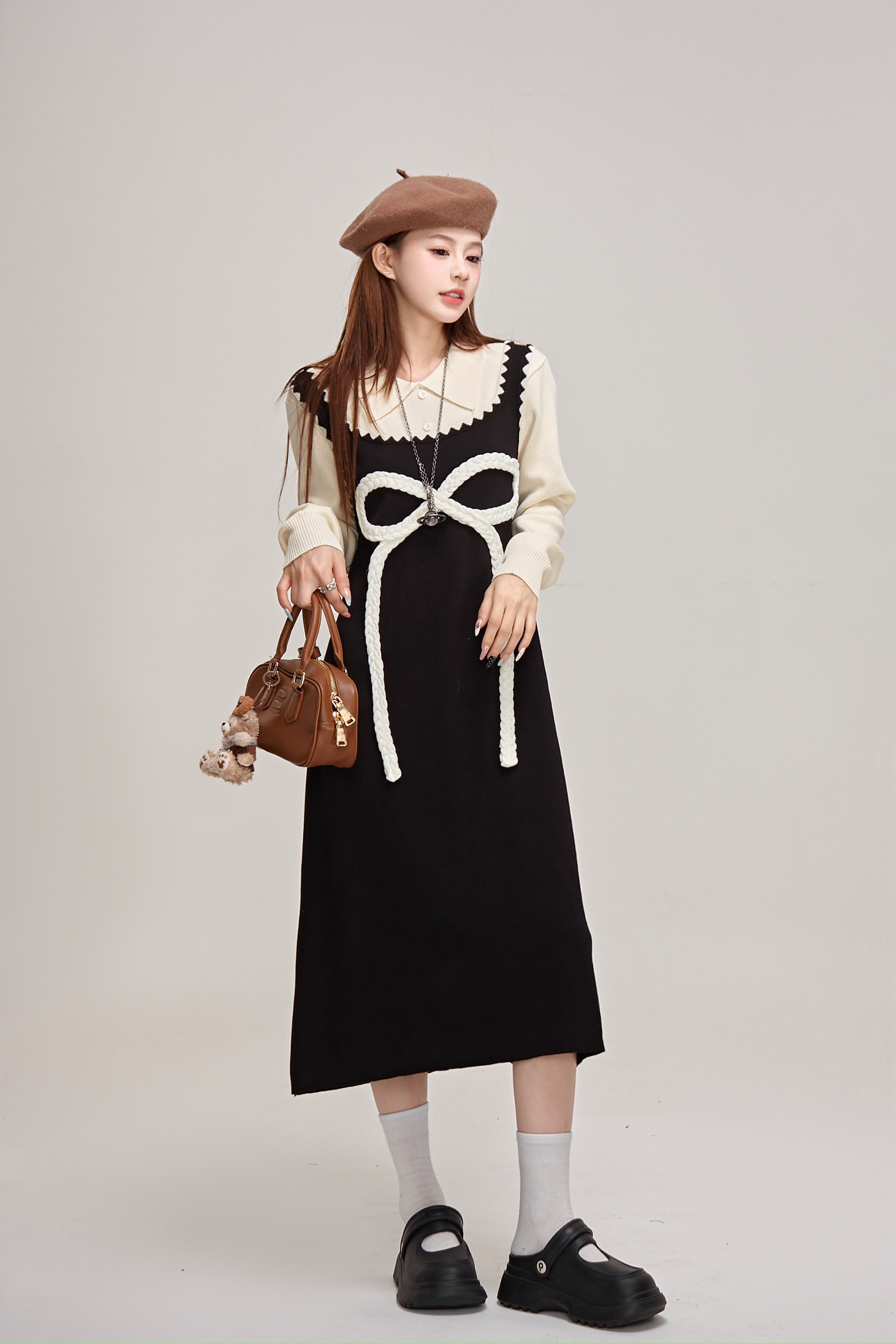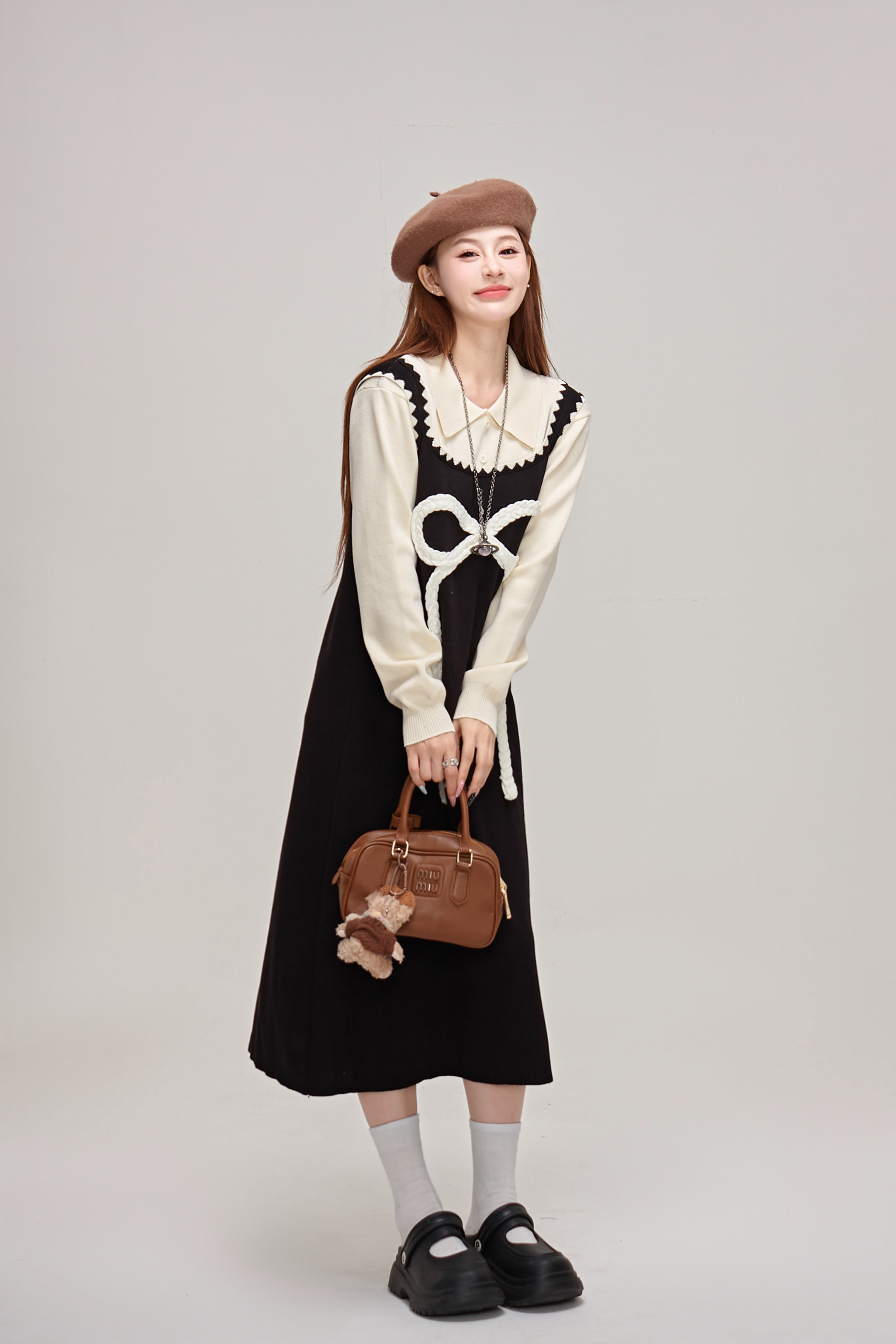 【商品名】【ワンピース】蝶結びデザイン🎀 ツーピース風ニットワンピ 冬 レディース 上品&高見え 長袖ワンピース【JZシリーズ】