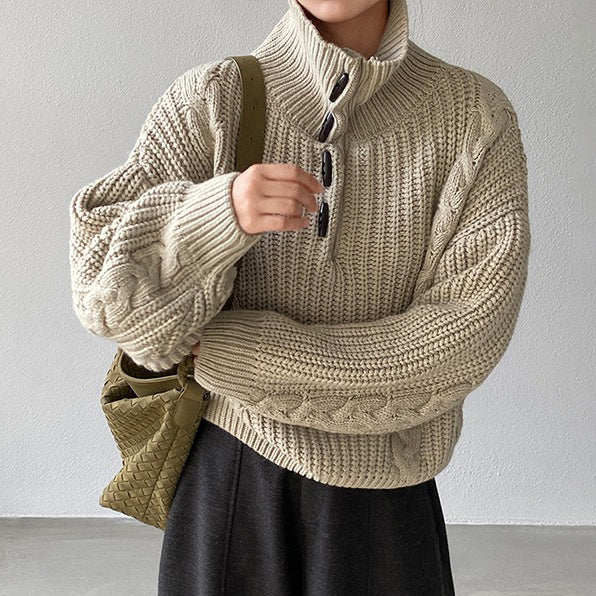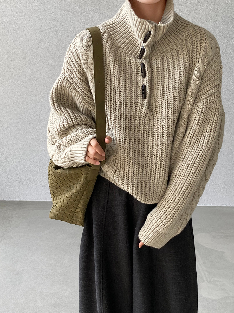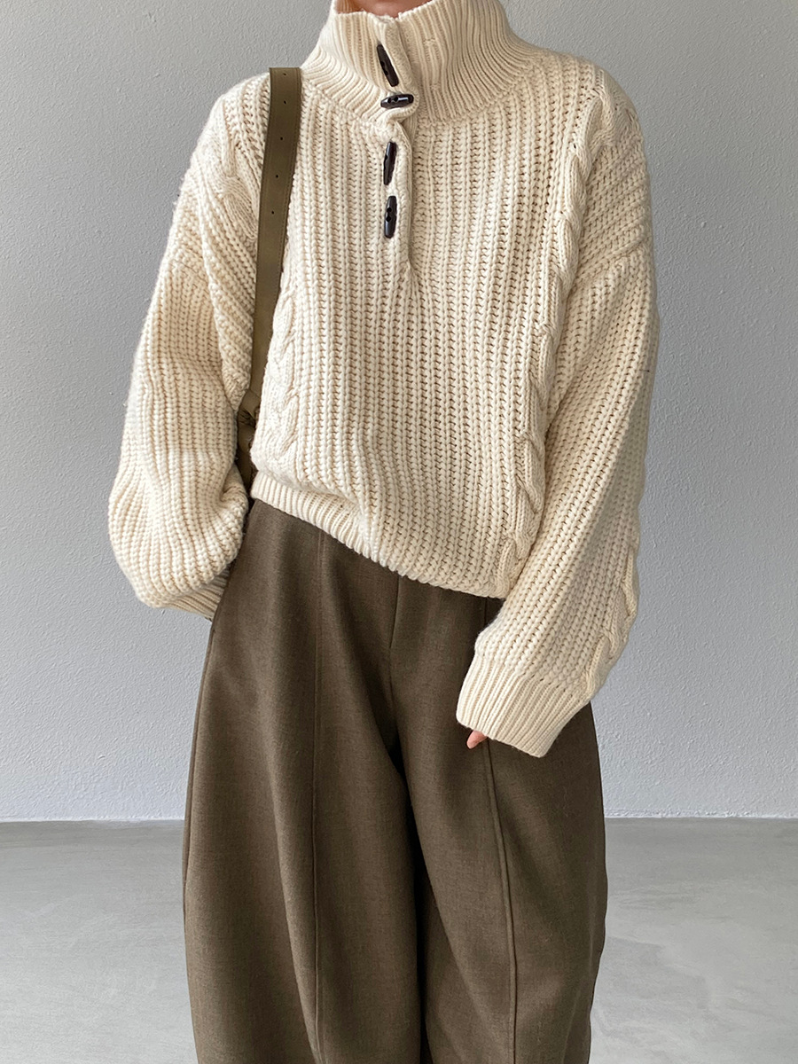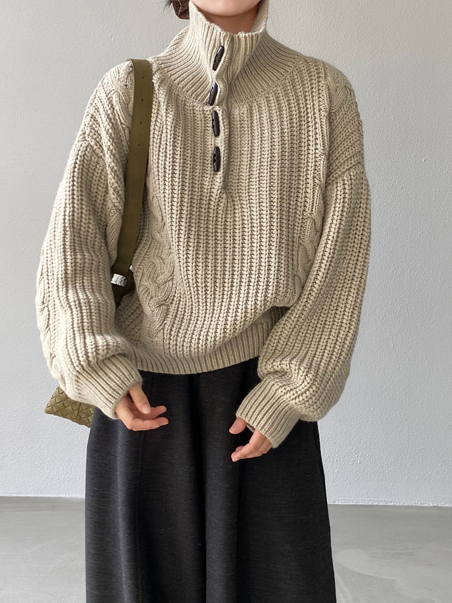 【商品名】【トップス】気質 あったか ケーブル編み ハイネックセーター 春秋冬 プルオーバー ゆるかわ【JZシリーズ】