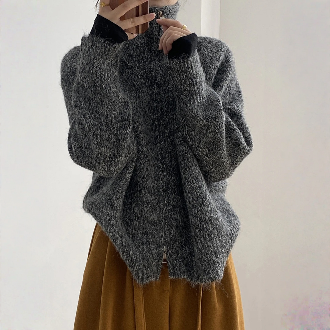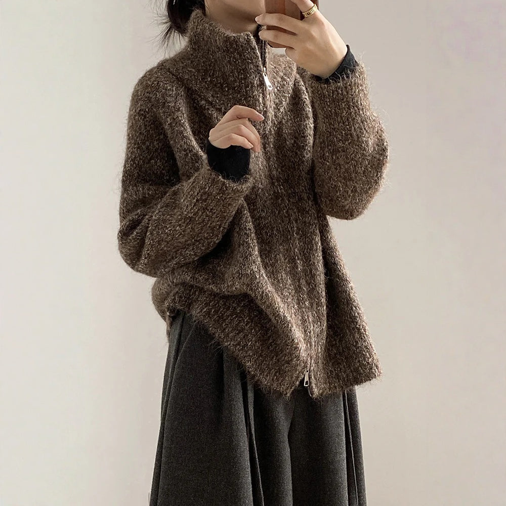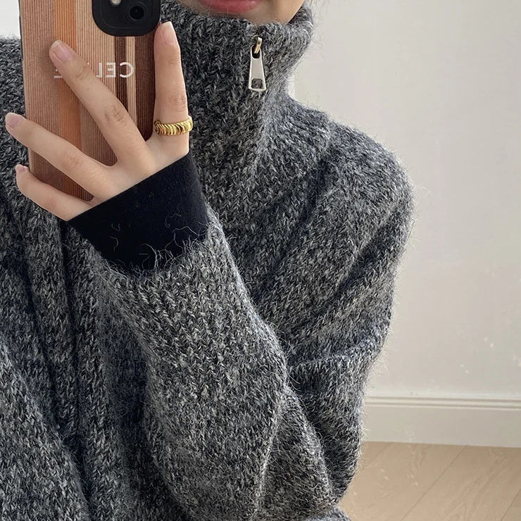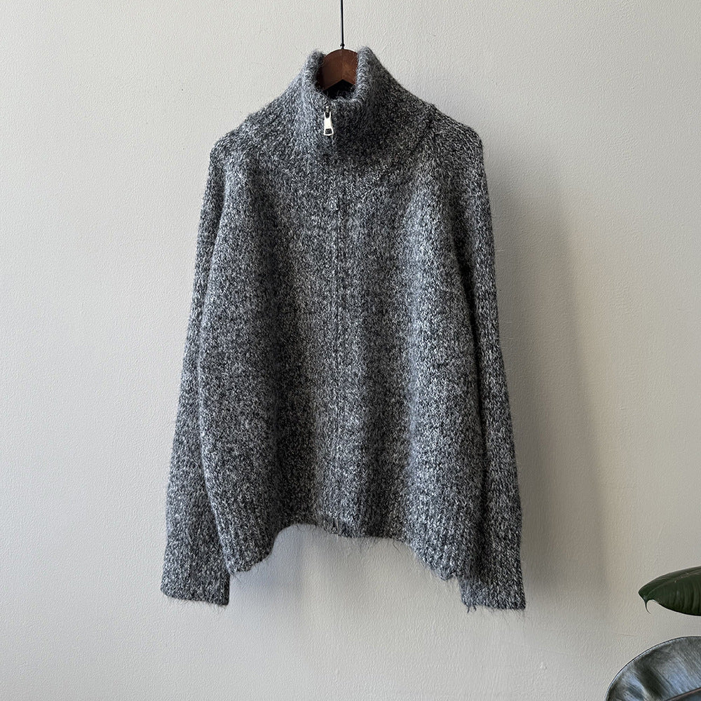 【トップス】ルーズ ファスナー付き 立襟 春 秋 冬 プルオーバー ニット セーター 【FCシリーズ】