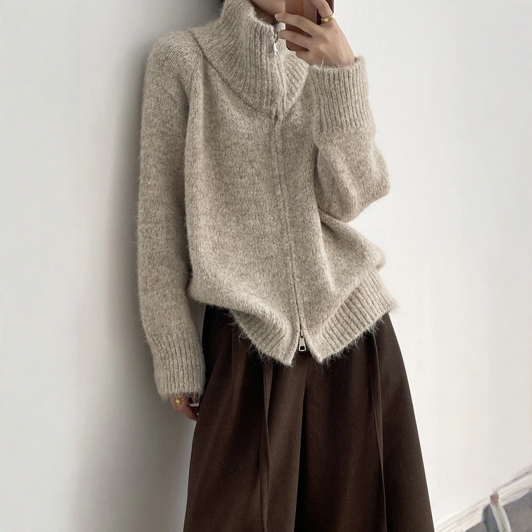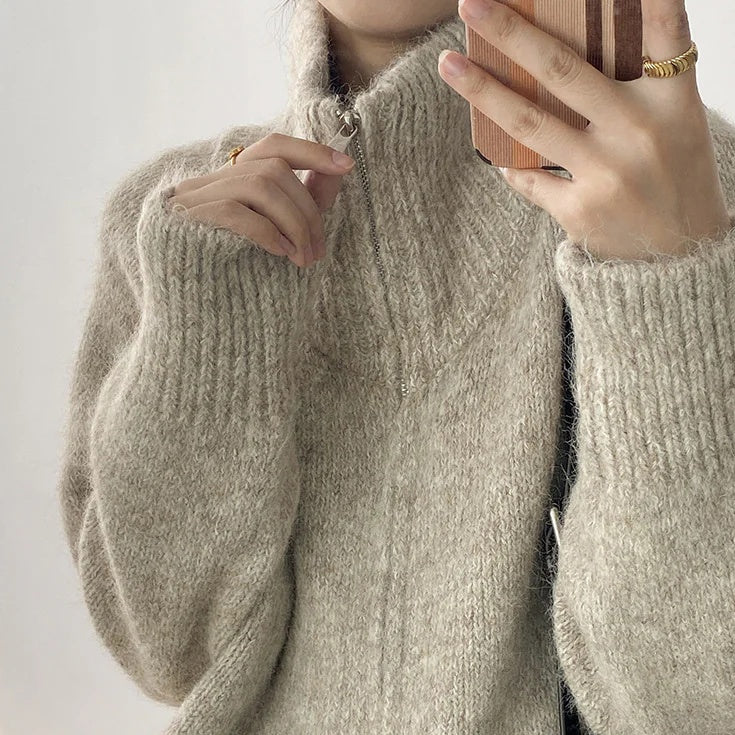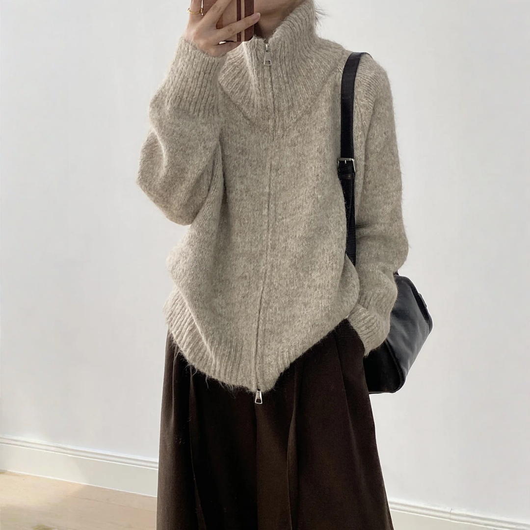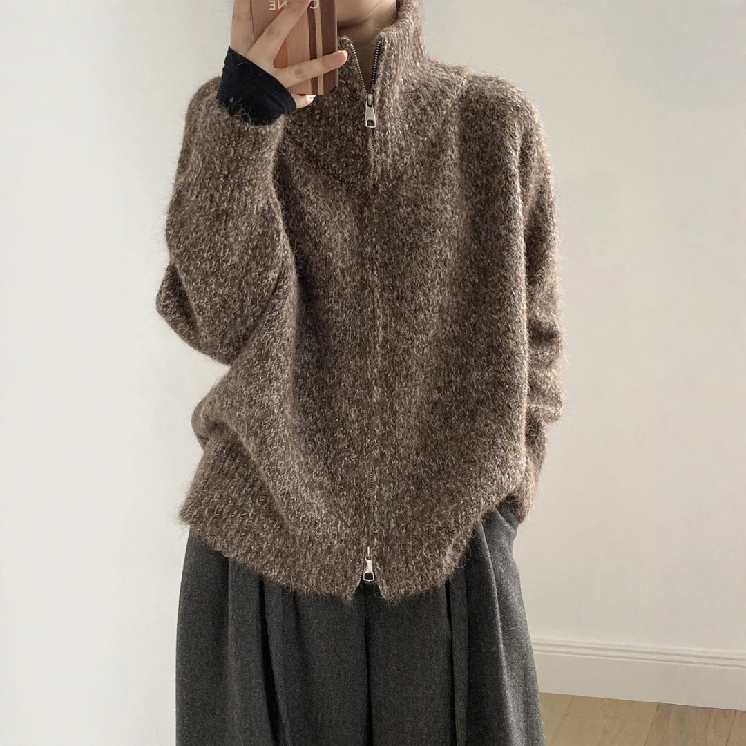 【トップス】ルーズ ファスナー付き 立襟 春 秋 冬 プルオーバー ニット セーター 【FCシリーズ】
