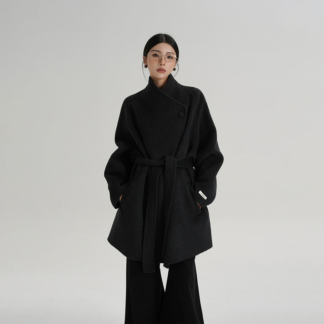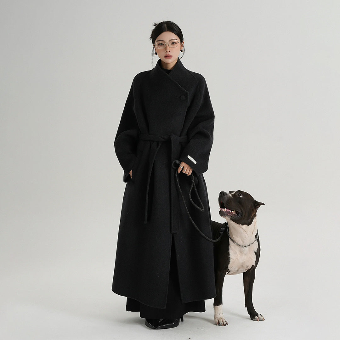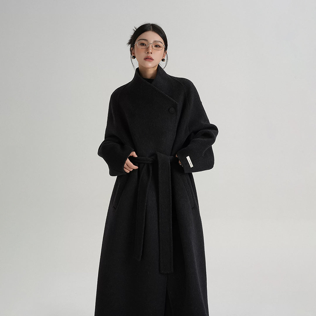 【アウター】気質と高級感 ミディアムロング 斜めボタン襟 ウールコート【JZシリーズ】