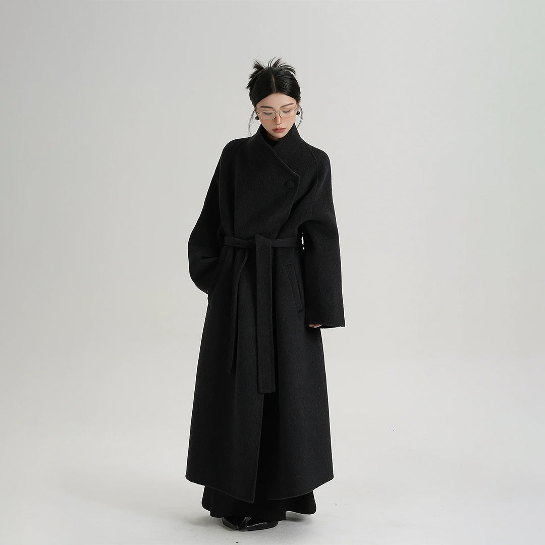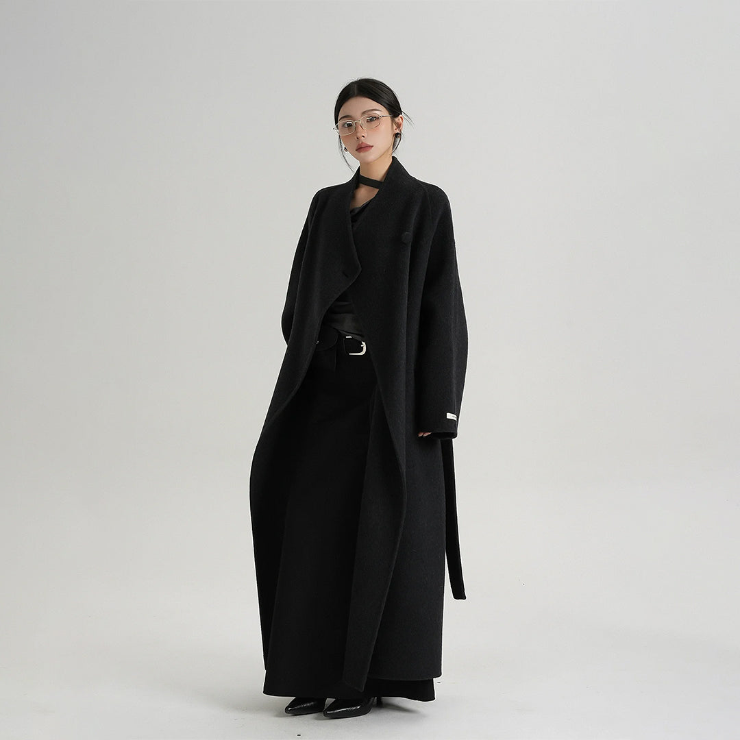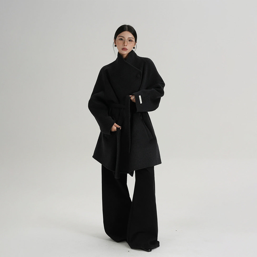 【アウター】気質と高級感 ミディアムロング 斜めボタン襟 ウールコート【JZシリーズ】