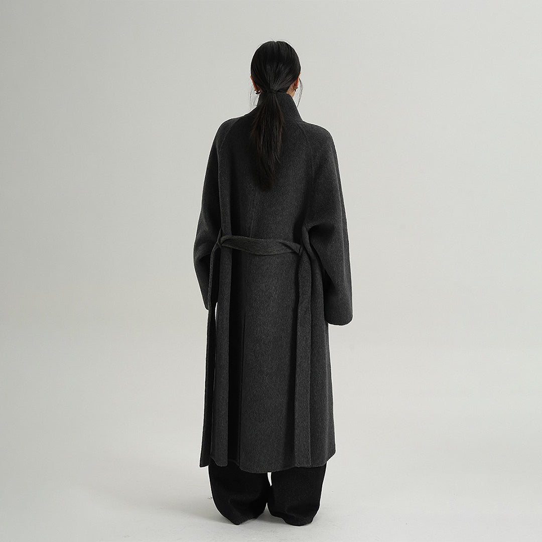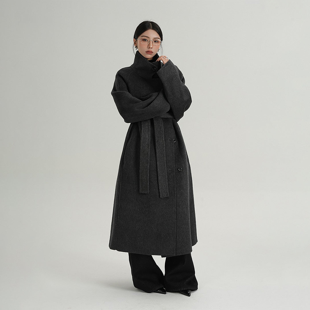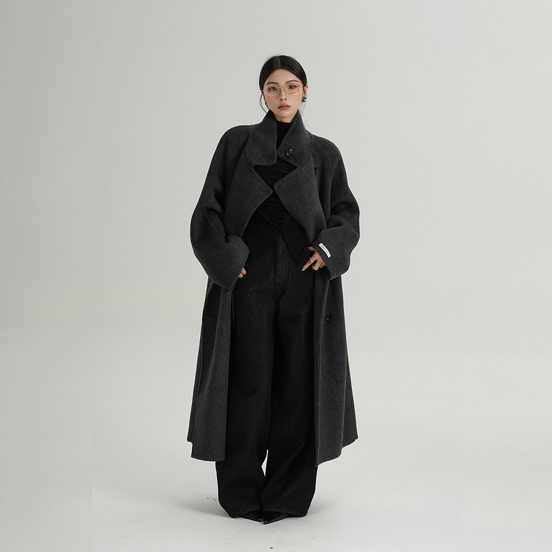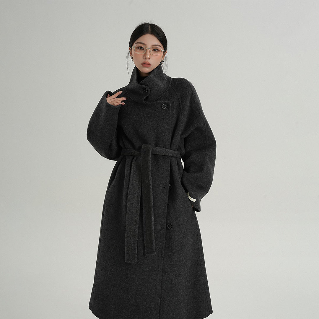 【アウター】気質と高級感 ミディアムロング 斜めボタン襟 ウールコート【JZシリーズ】