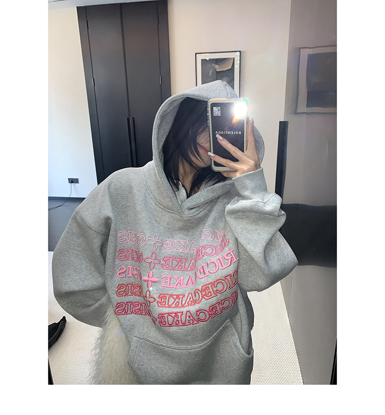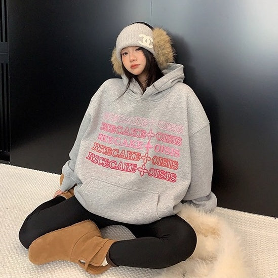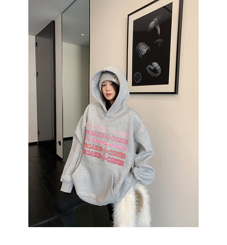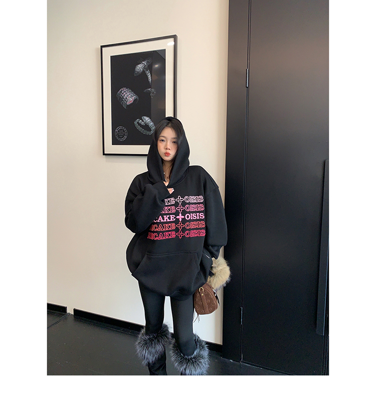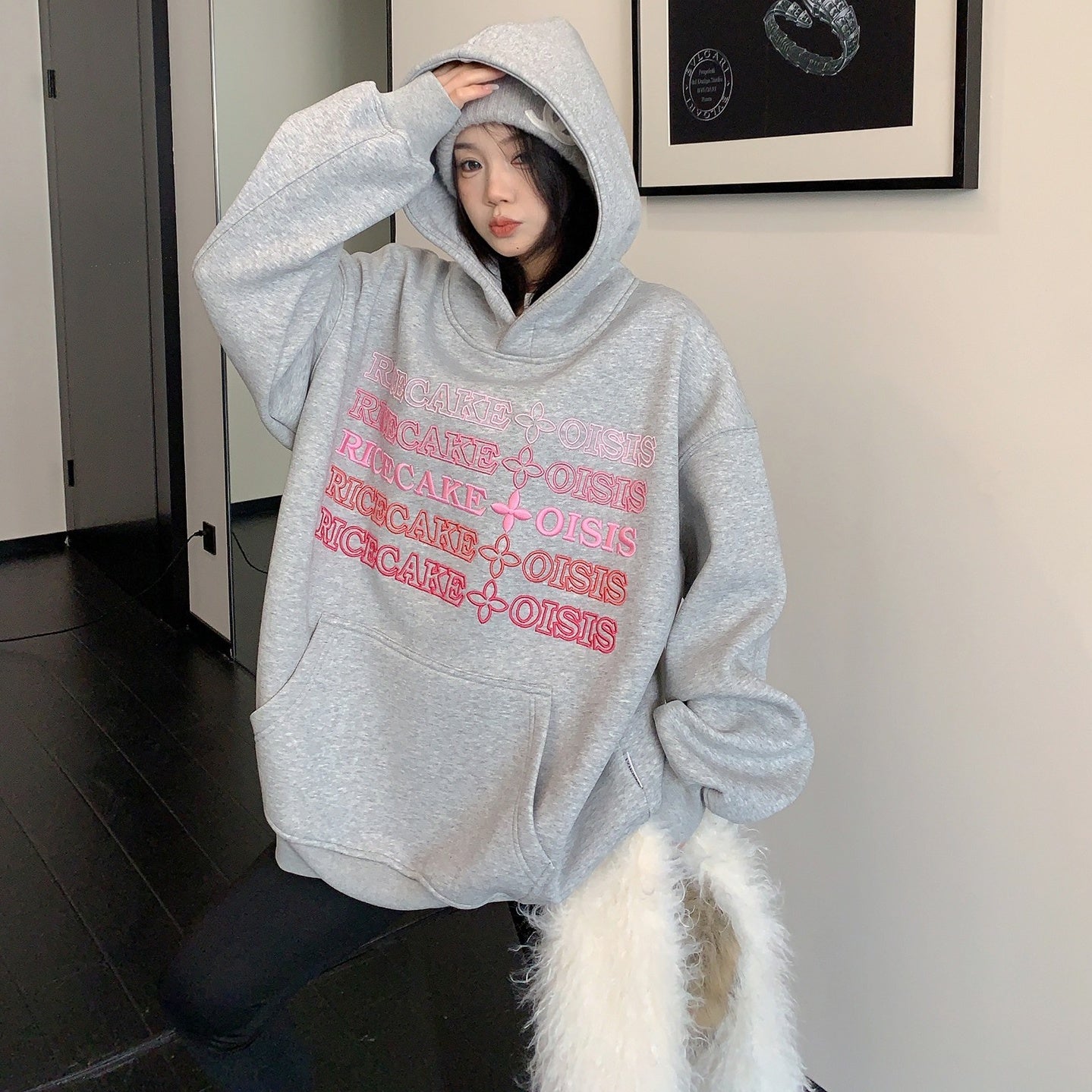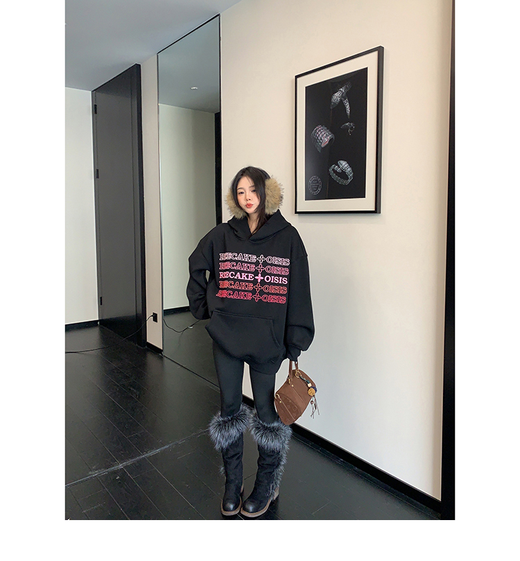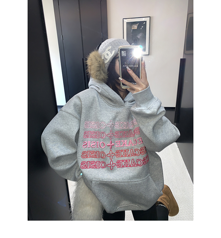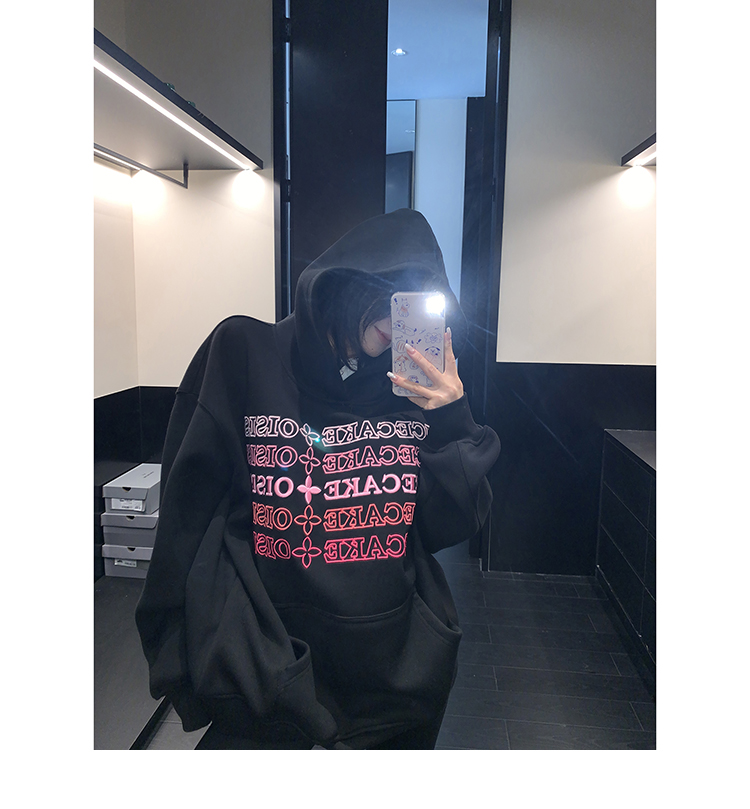【トップス】💖カップルでも着られる!ワイドフーディ 裏起毛 重工パッチ&刺繍 レディース 冬新作【FCシリーズ】