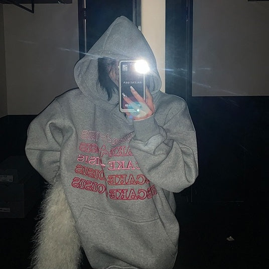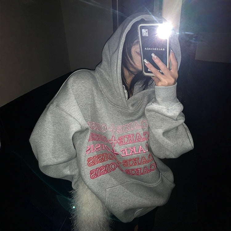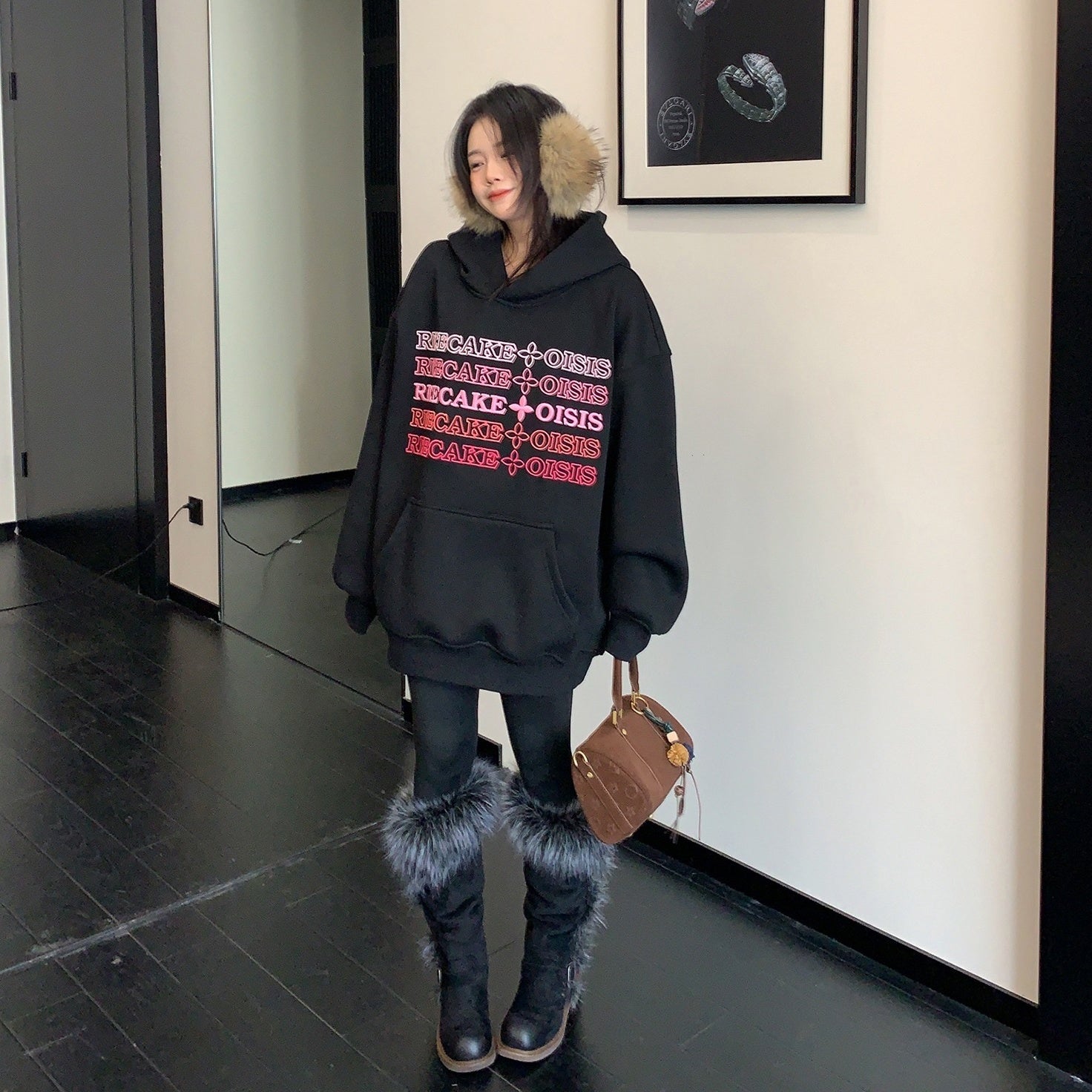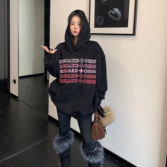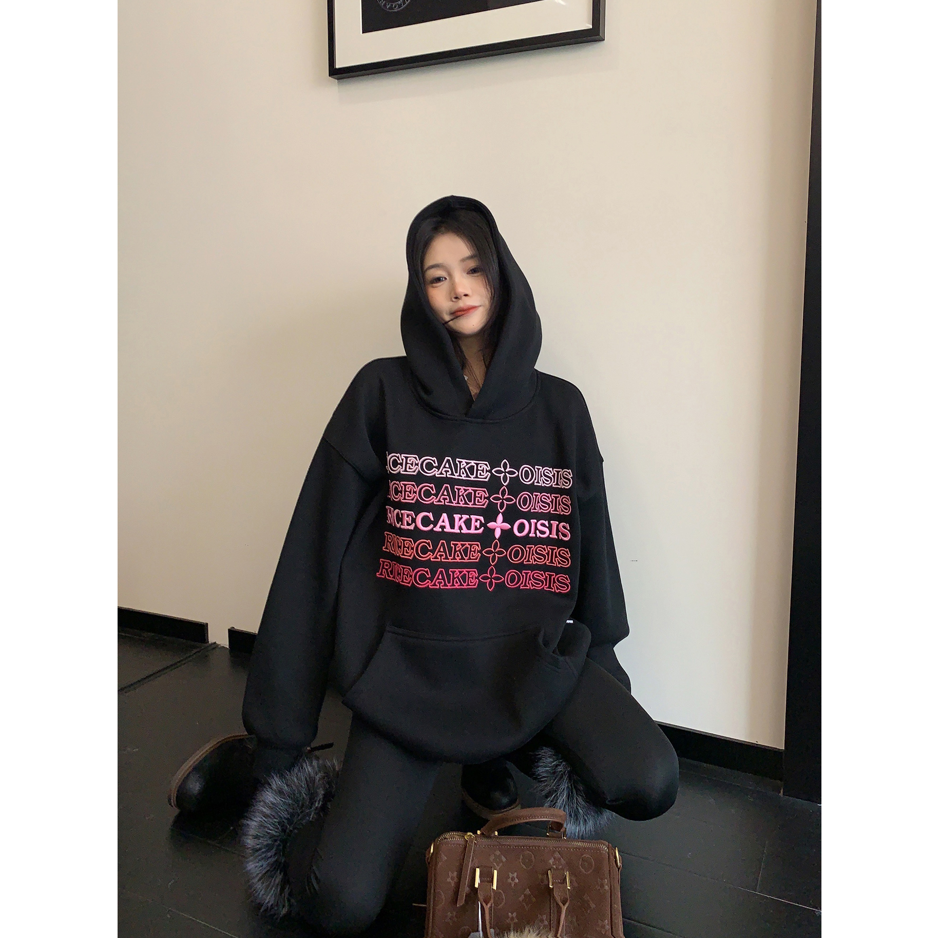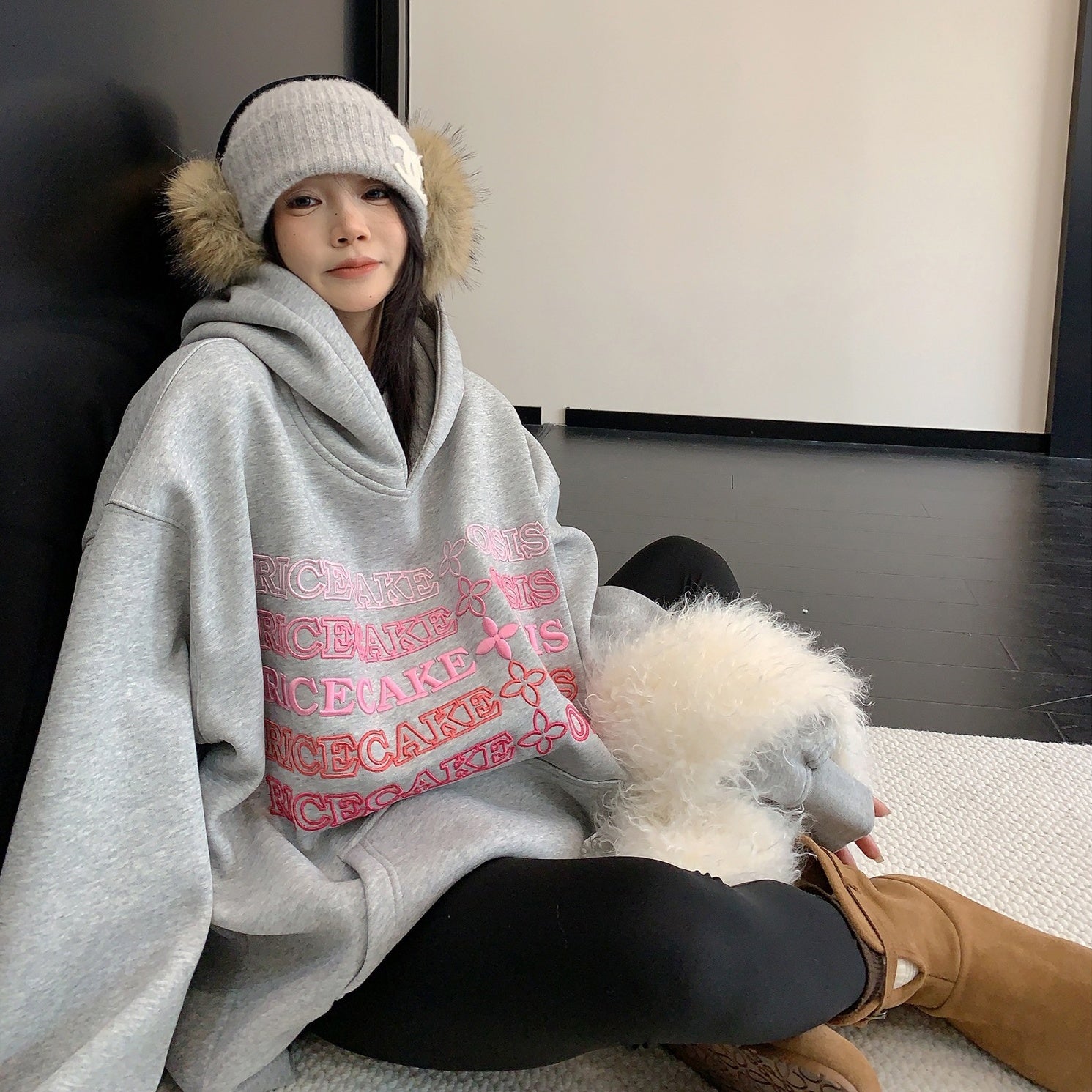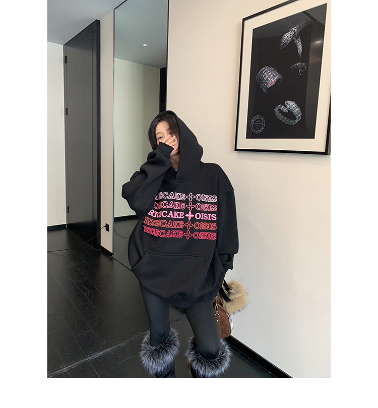 【トップス】💖カップルでも着られる!ワイドフーディ 裏起毛 重工パッチ&刺繍 レディース 冬新作【FCシリーズ】