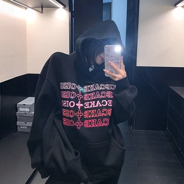 【トップス】レトロ感たっぷり ぼかしシルエットプリント ストリートゆるパーカー【FCシリーズ】