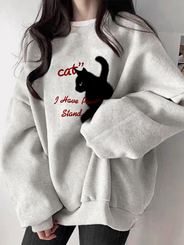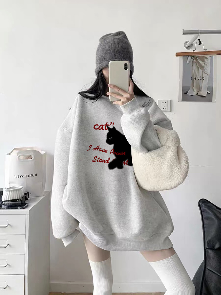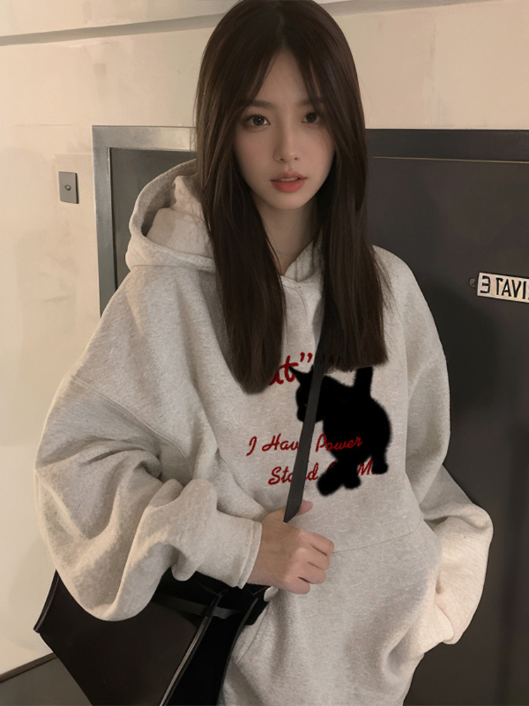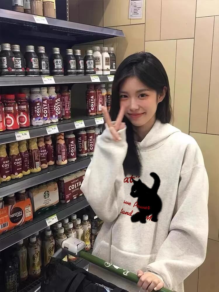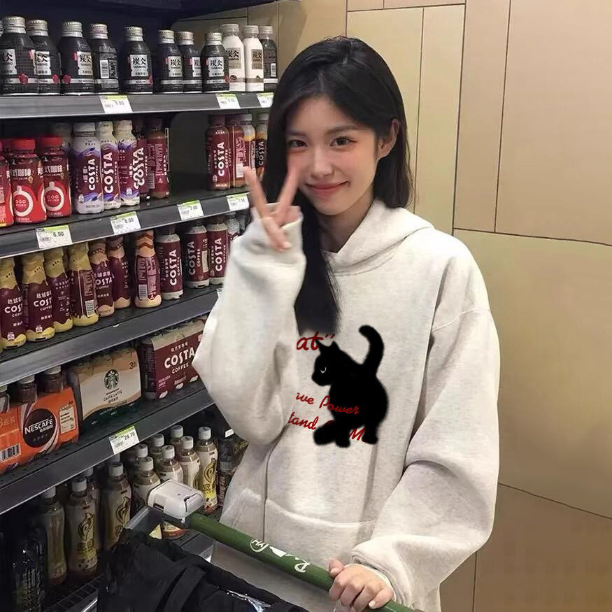 S~3XL【トップス】黒猫柄 フード付き スウェット レディース 秋冬 裏起毛 ゆったり おしゃれ【FCシリーズ】
