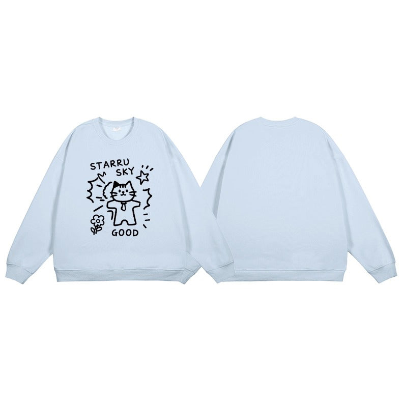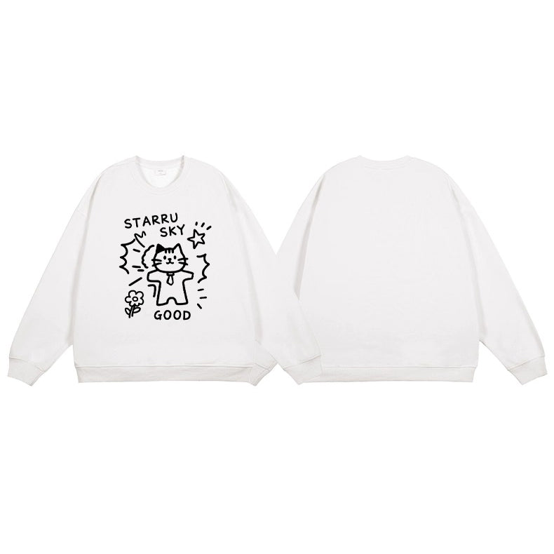 全7色【トップス】🐾子猫柄 クルーネック スウェット ユニセックス 秋冬 ゆったり かわいい パーカー【FCシリーズ】