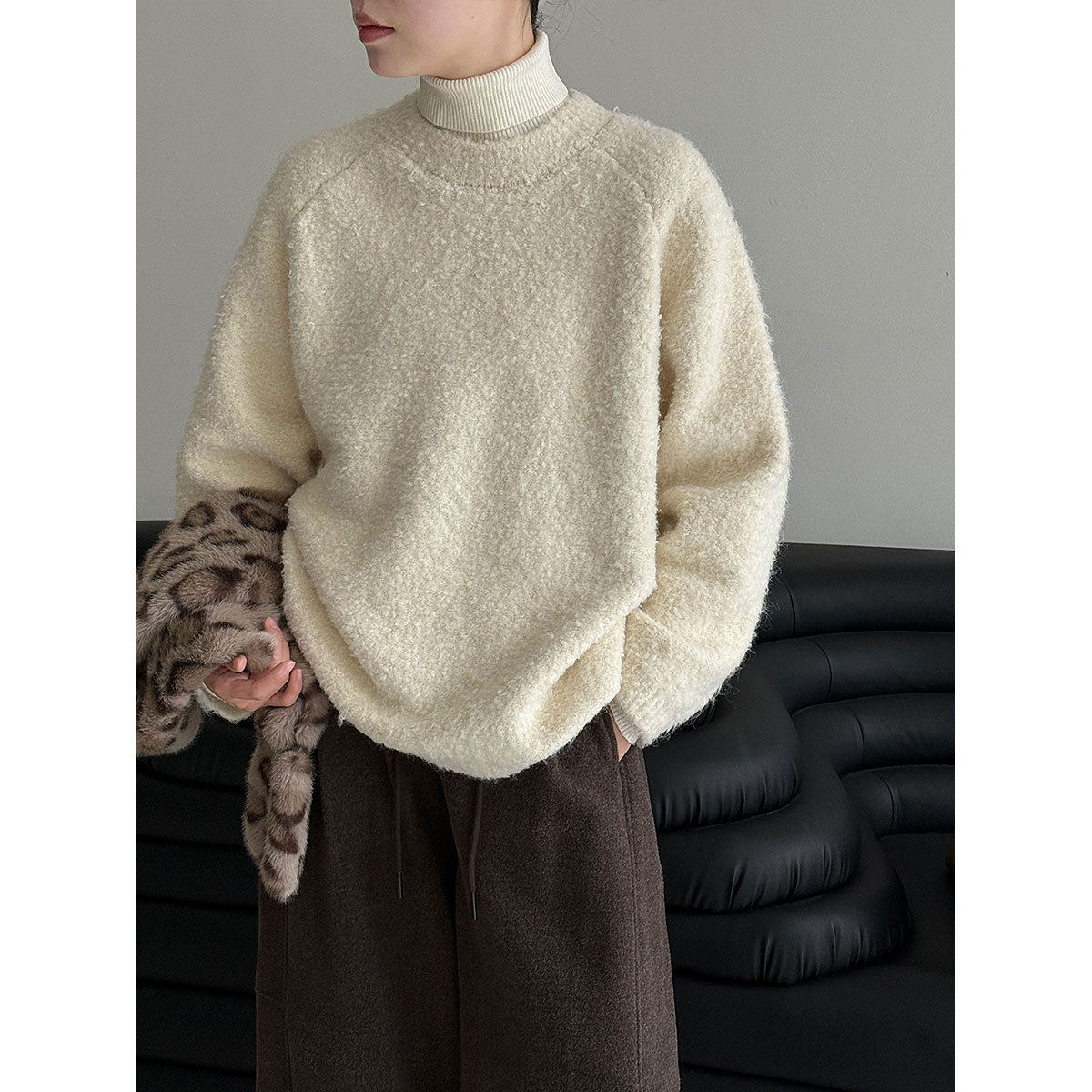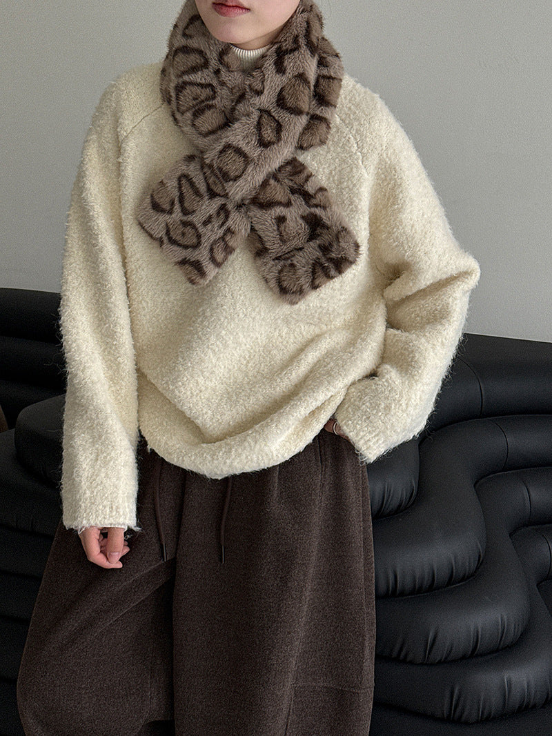 【60%OFF⭐️早い者勝ち】【トップス】レトロ 豹柄 猫 ゆったり ラウンドネック ニットセーター【FCシリーズ】