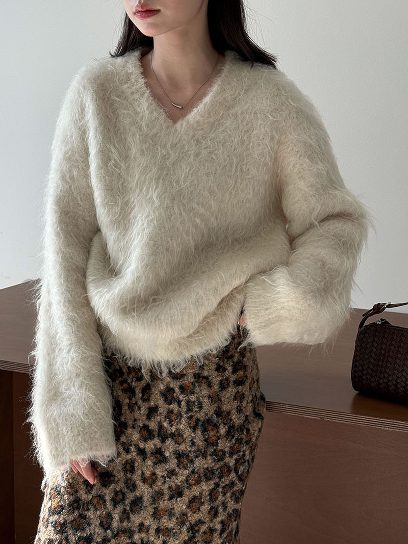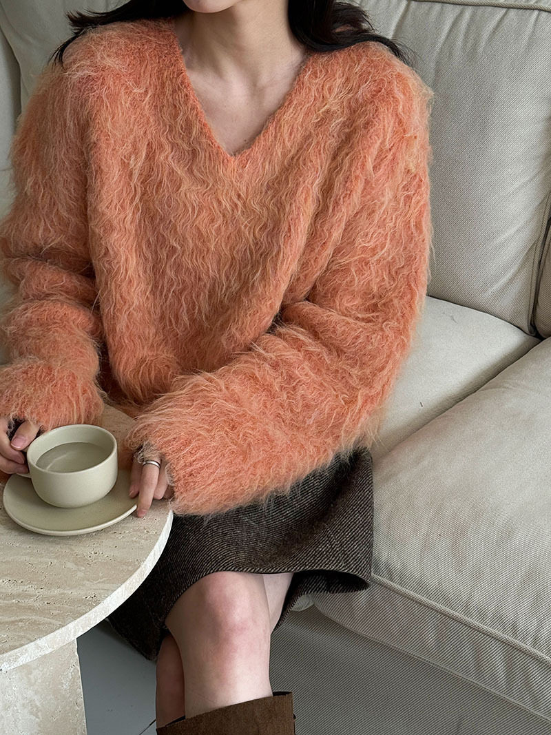 【トップス】もちもち 起毛 Vネック 春 秋 冬 リラックス感 セーター 【JZシリーズ】