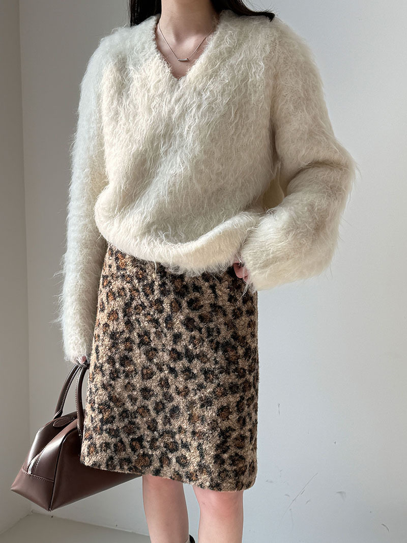 【60%OFF⭐️早い者勝ち】【トップス】レトロ 豹柄 猫 ゆったり ラウンドネック ニットセーター【FCシリーズ】