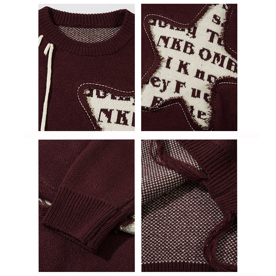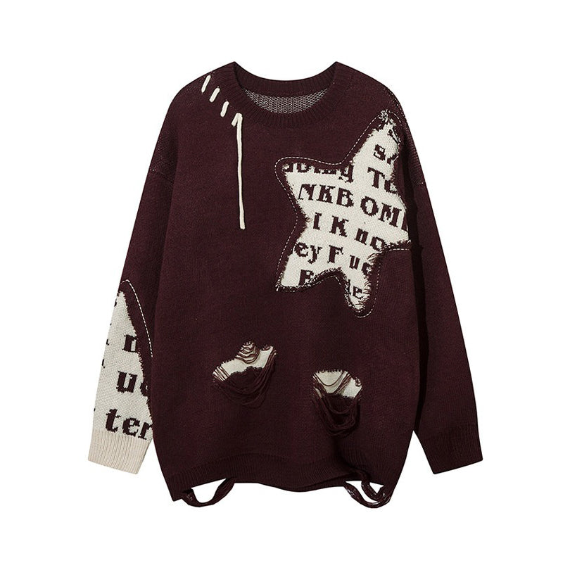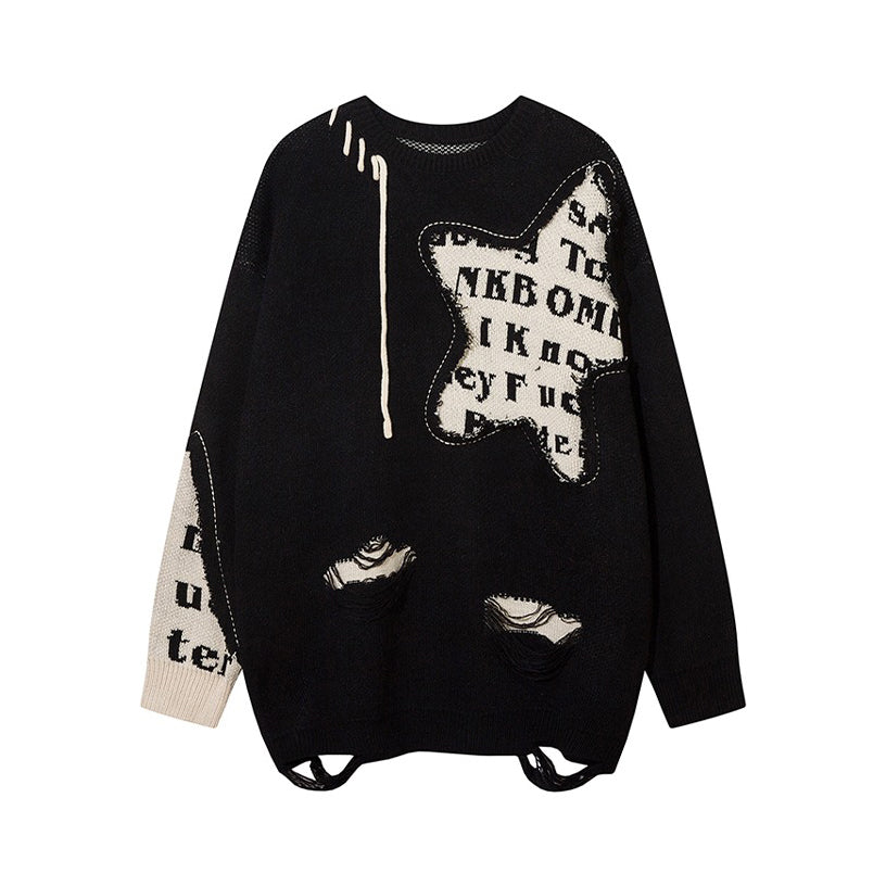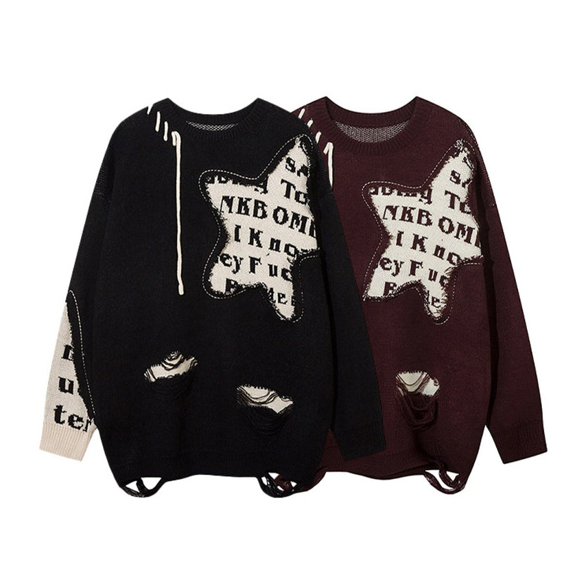 【トップス】星柄切替 デザインニット ユニセックス レディース 秋冬 ゆったり ハイストリート【FCシリーズ】