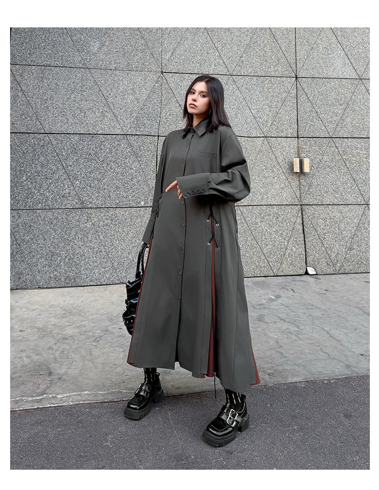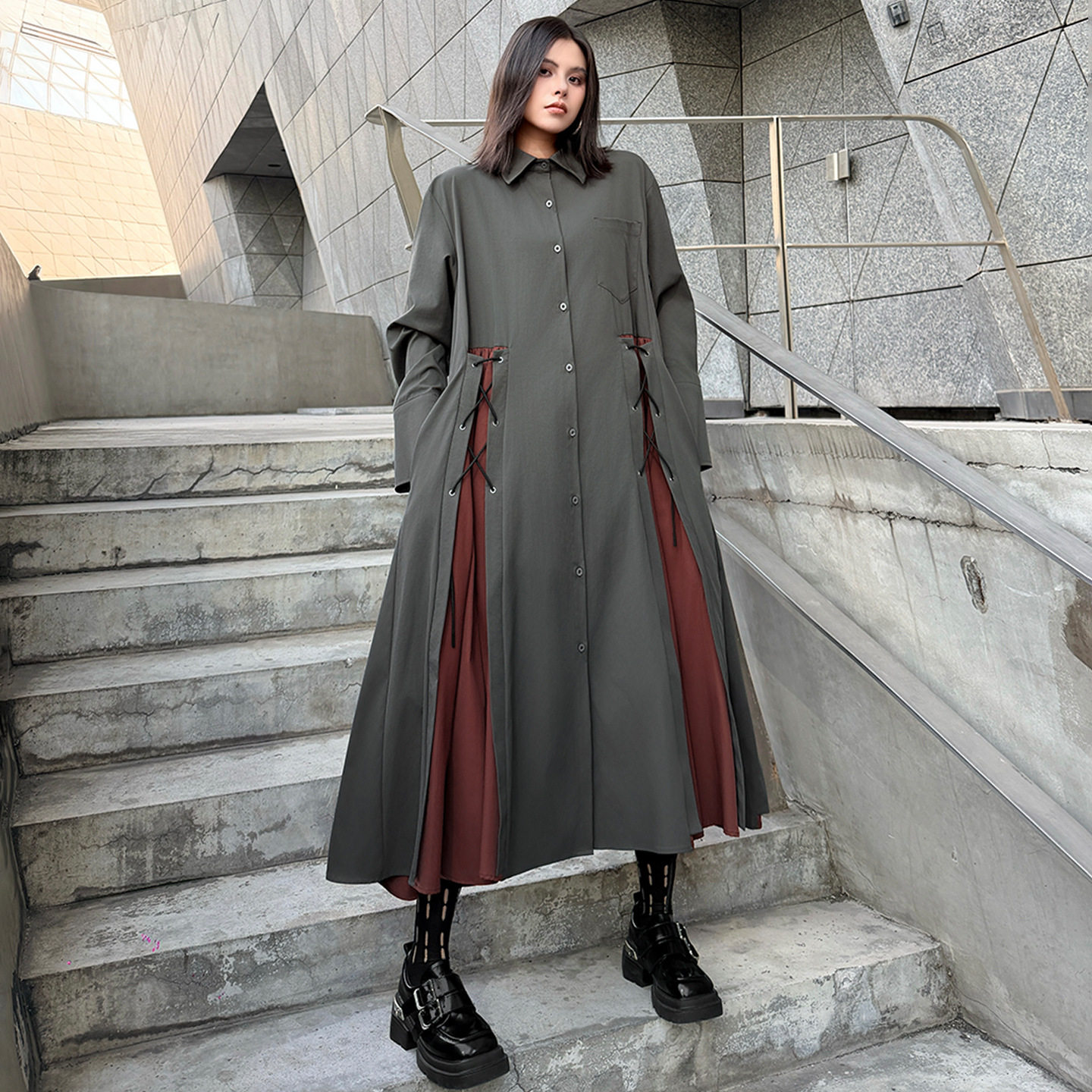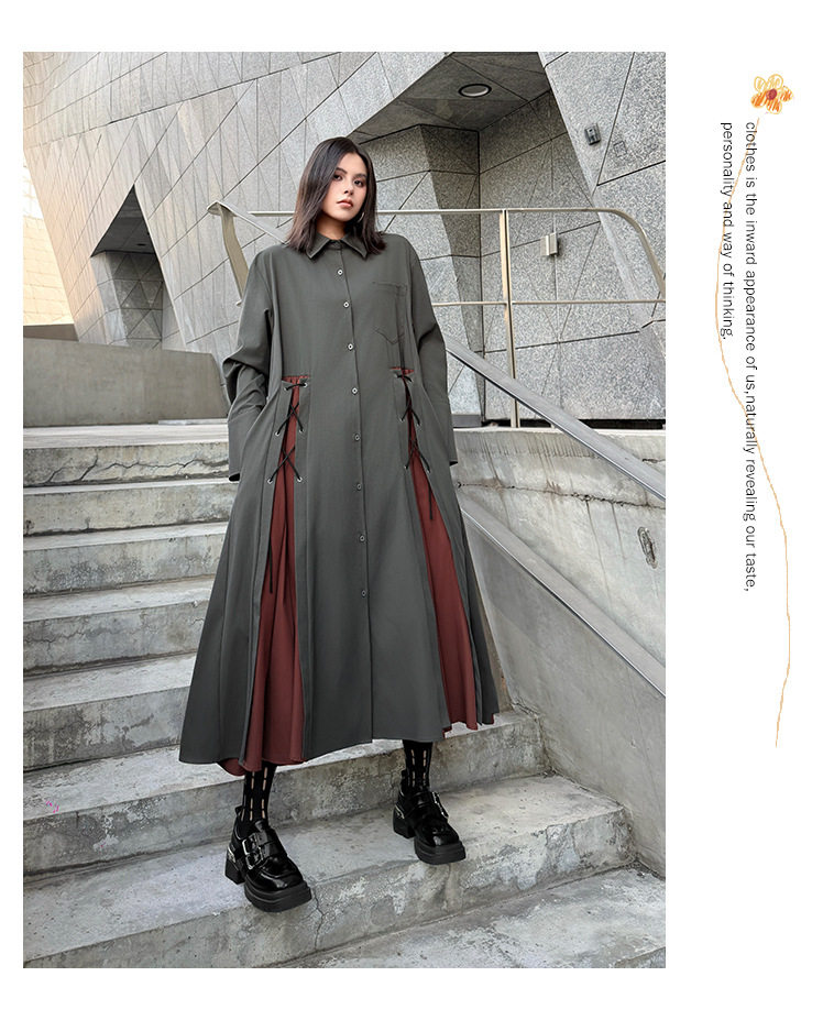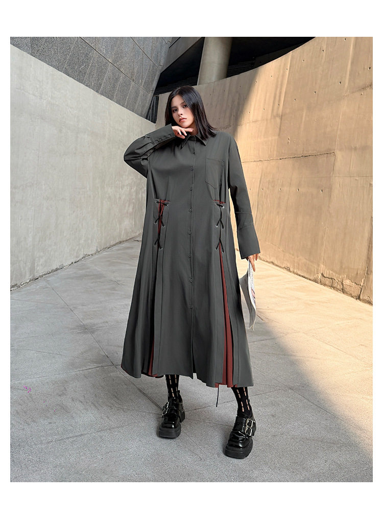 【商品名】【ワンピース】配色デザイン ポロ襟 ゆったり 上品 すっきり見え Aラインスカート 【AHシリーズ】