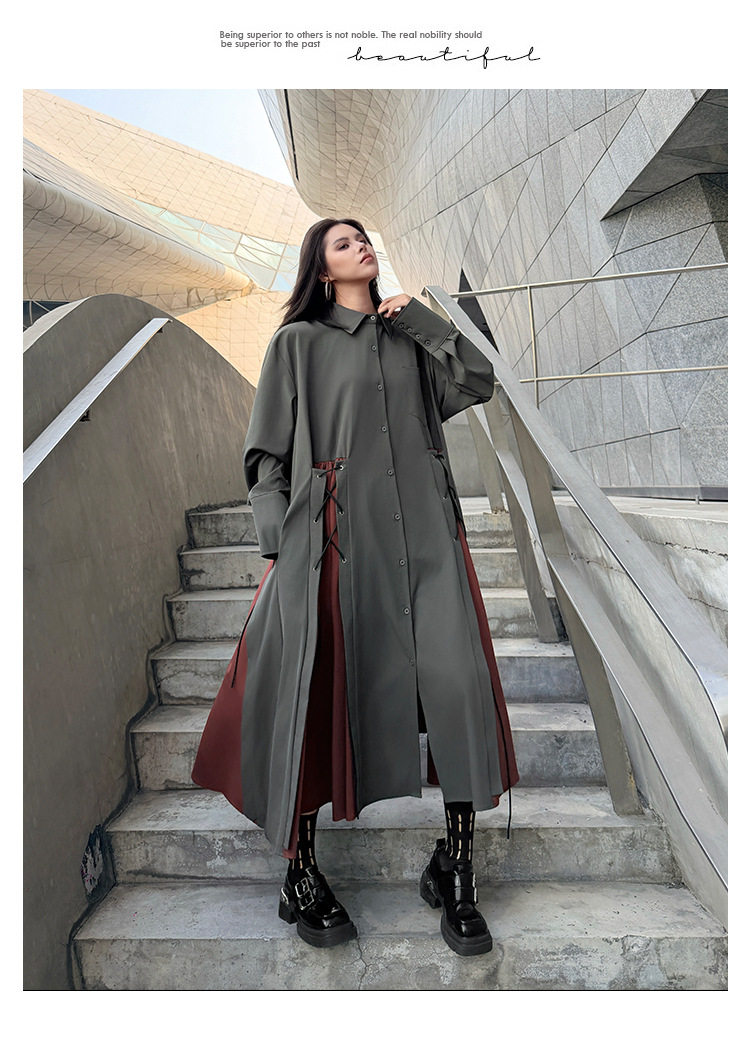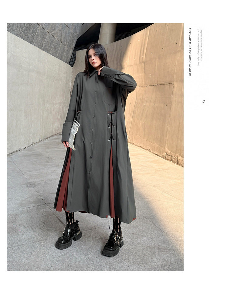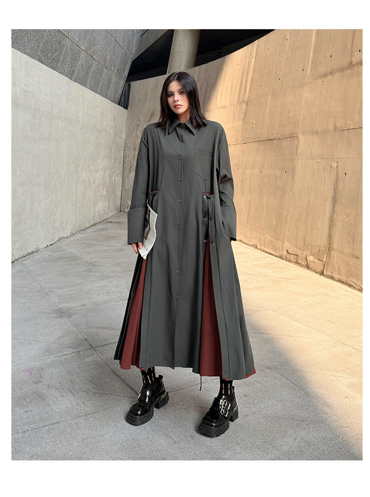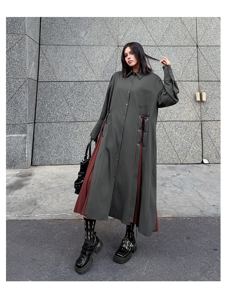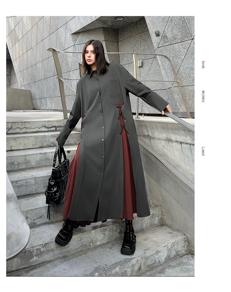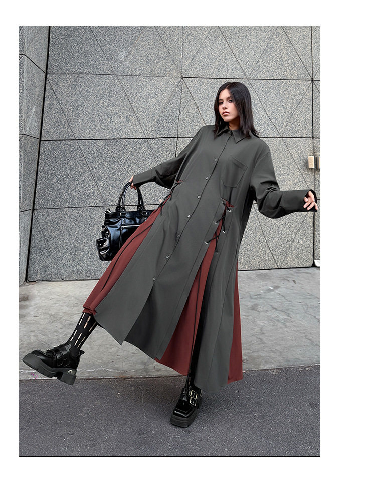 [洋裝] 春秋圓領長袖針織拼布長長袖洋裝