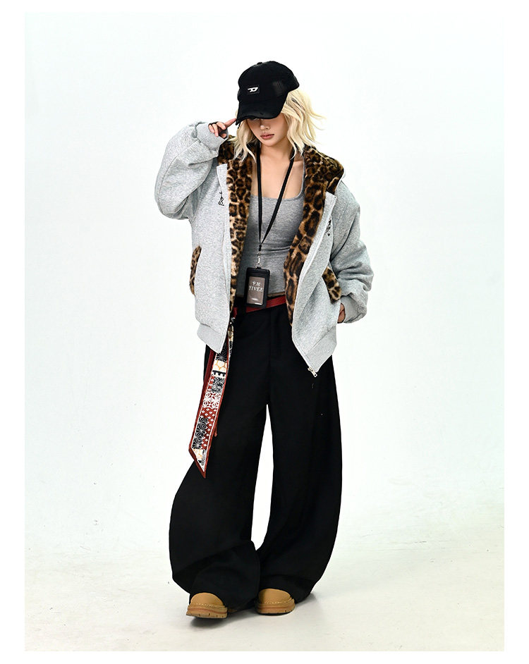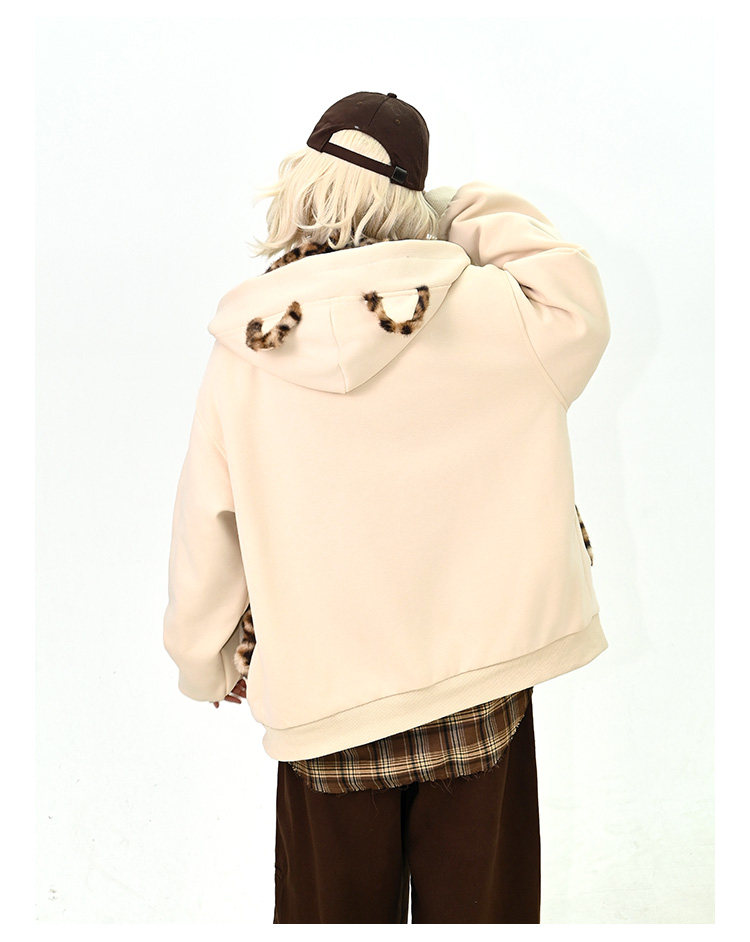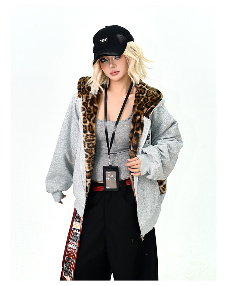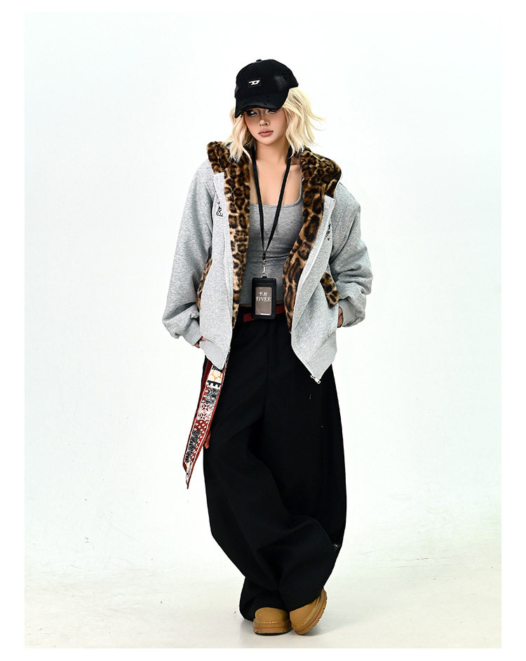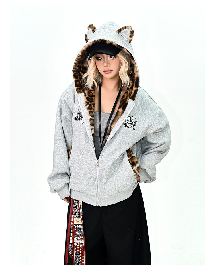 【アウター】アメリカンヴィンテージ レオパード ロゴ ジップアップパーカー ゆったり 男女兼用 カジュアルカーディガン【FCシリーズ】