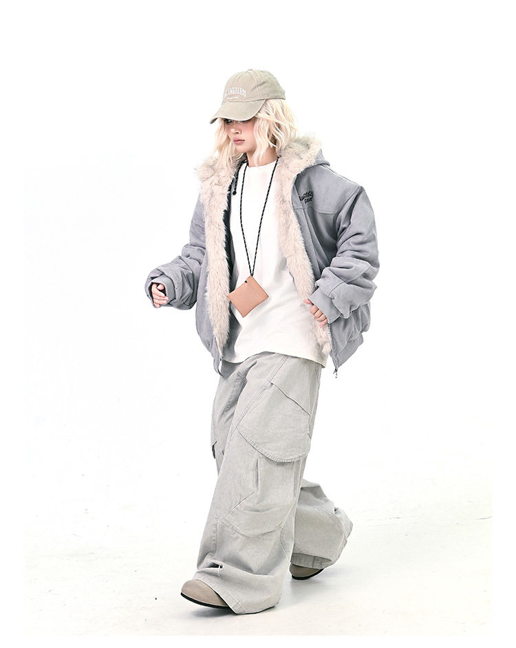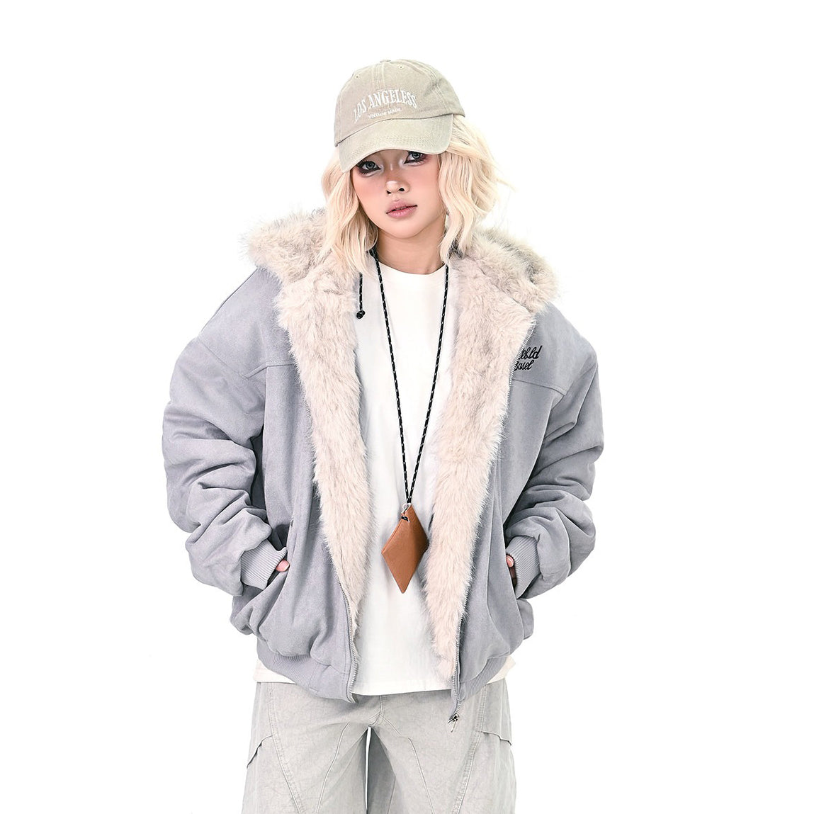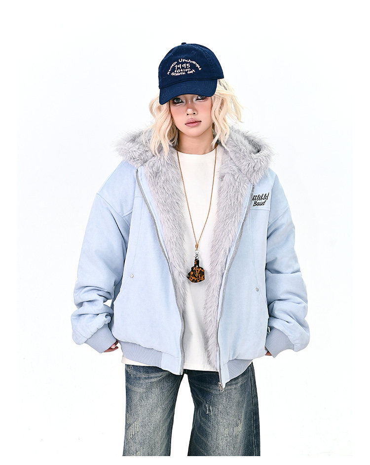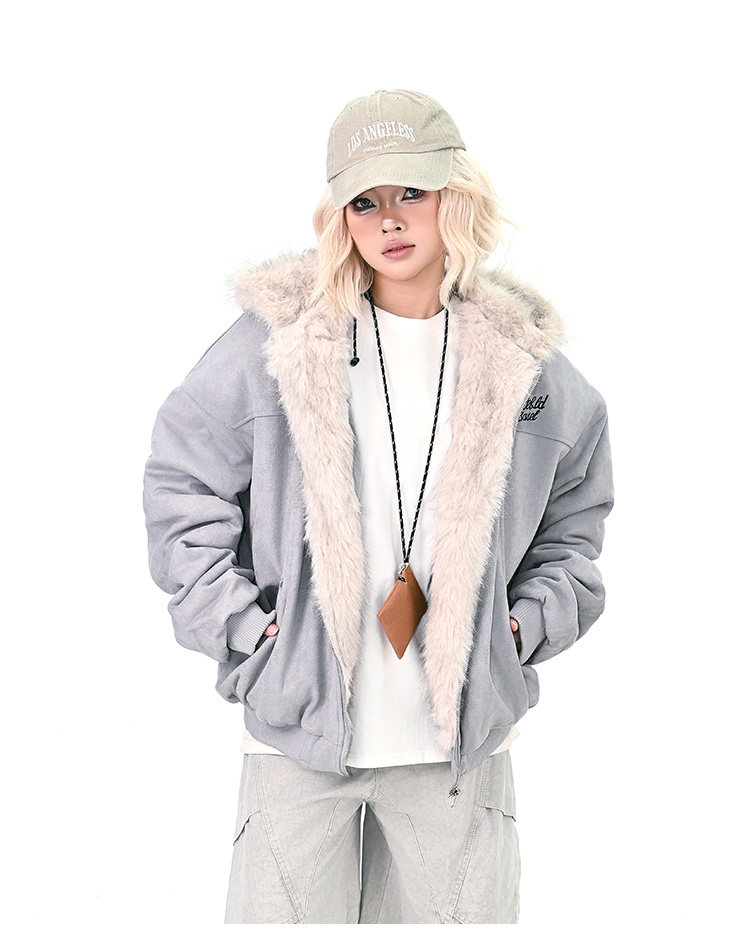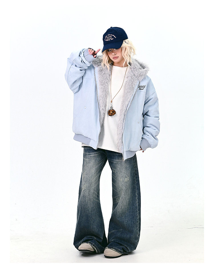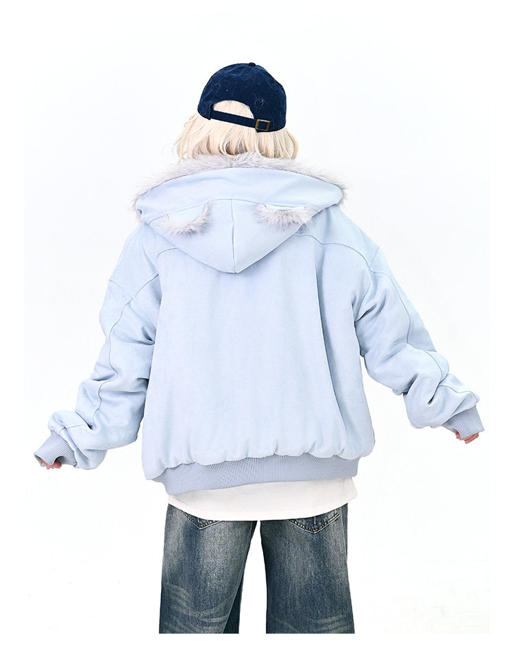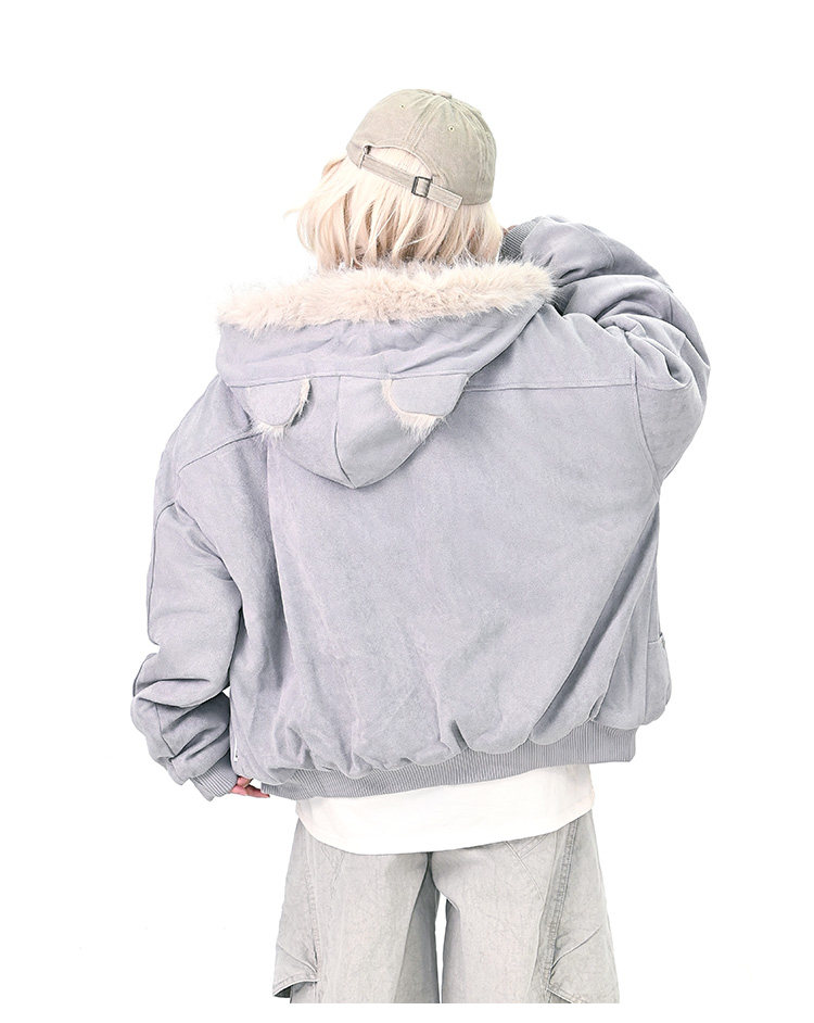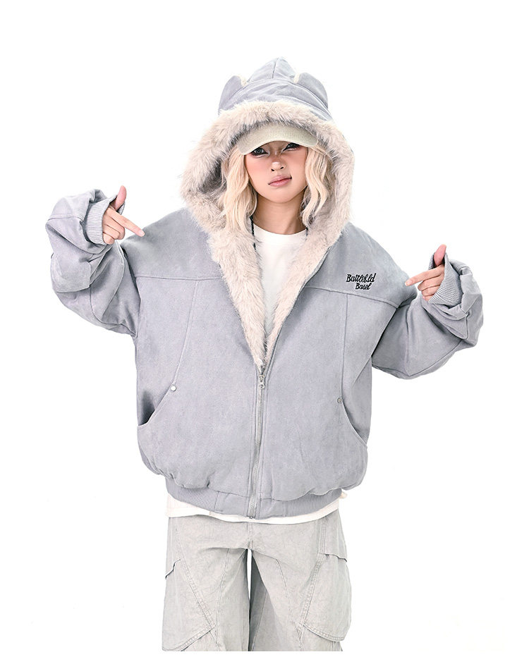 【商品名】【アウター】もこもこ耳付きフードコート レディース ゆったりBF風 アメカジ 学院風 綿入れコート 【FCシリーズ】
