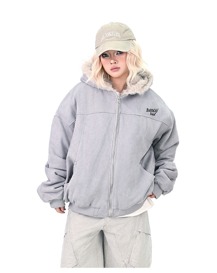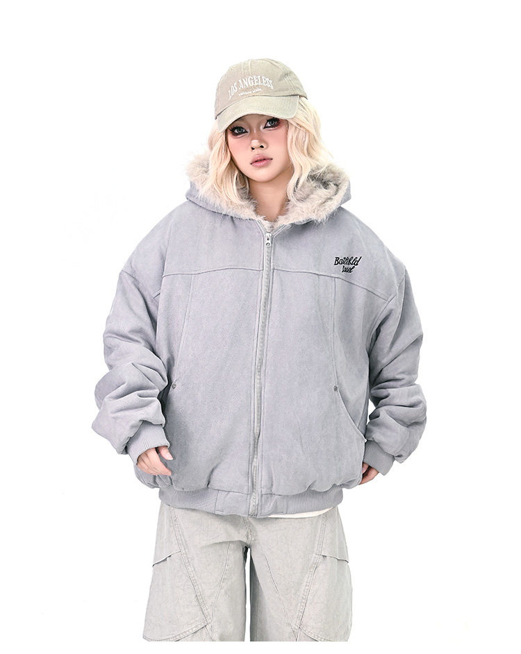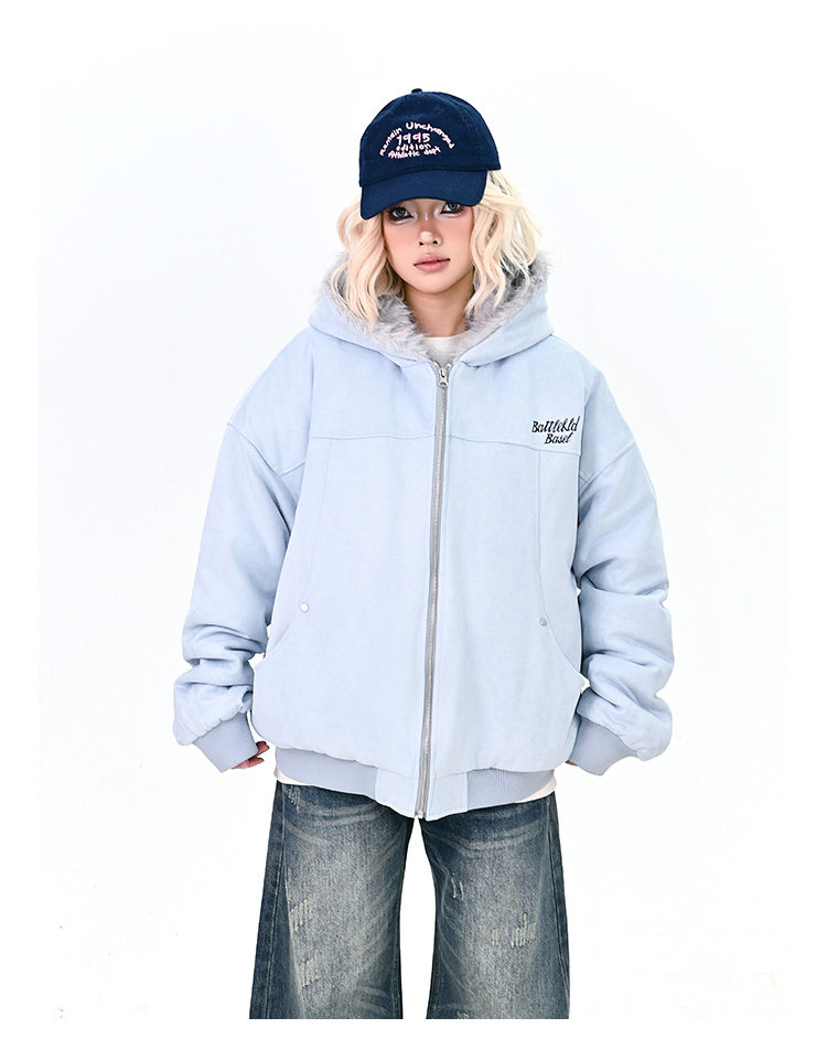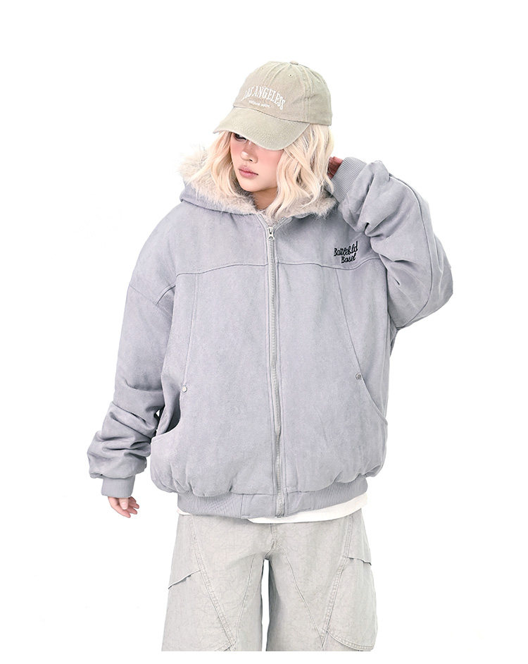 [外套] 秋冬美式情侶裝寬鬆復古刺繡連帽棉外套【FC系列】