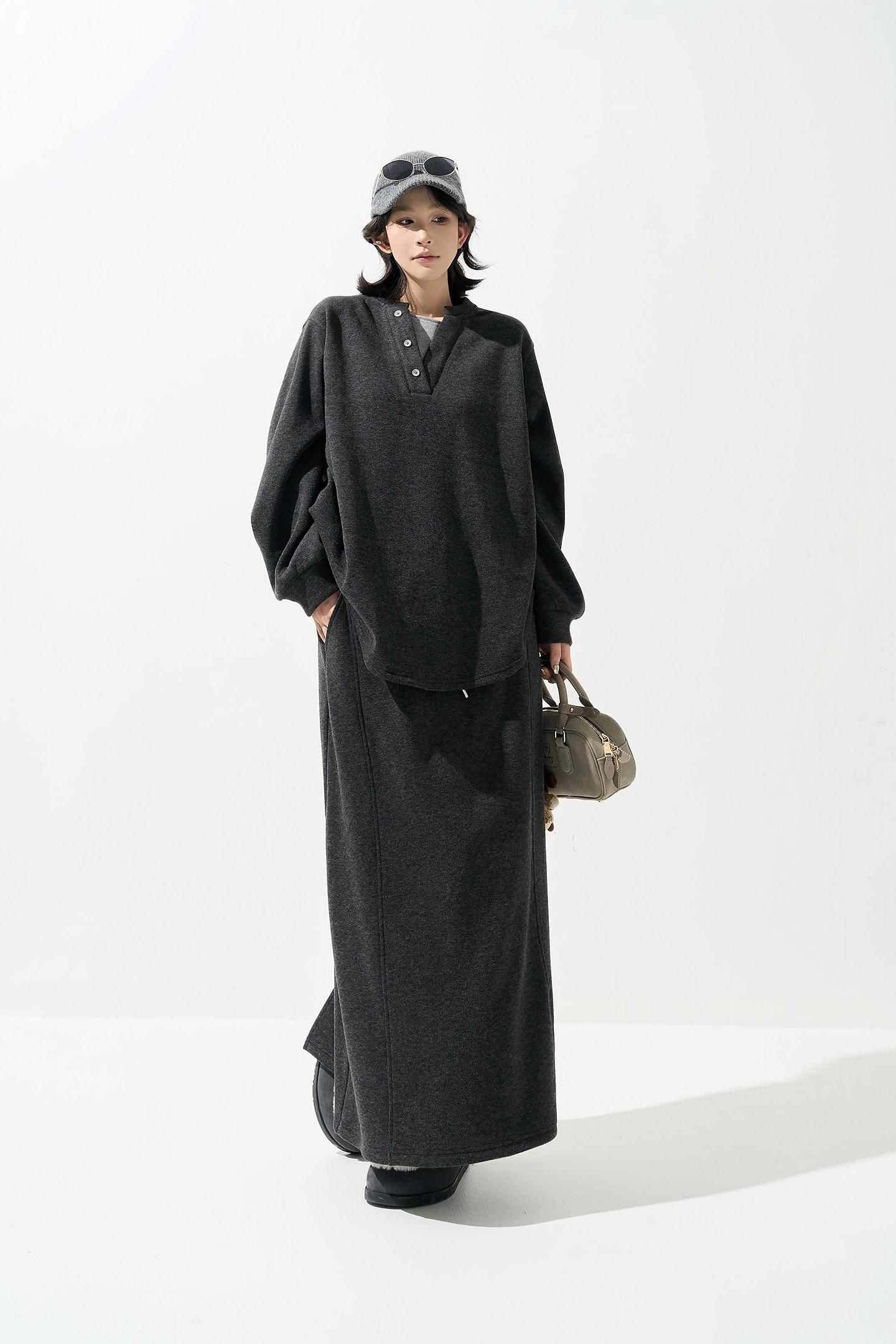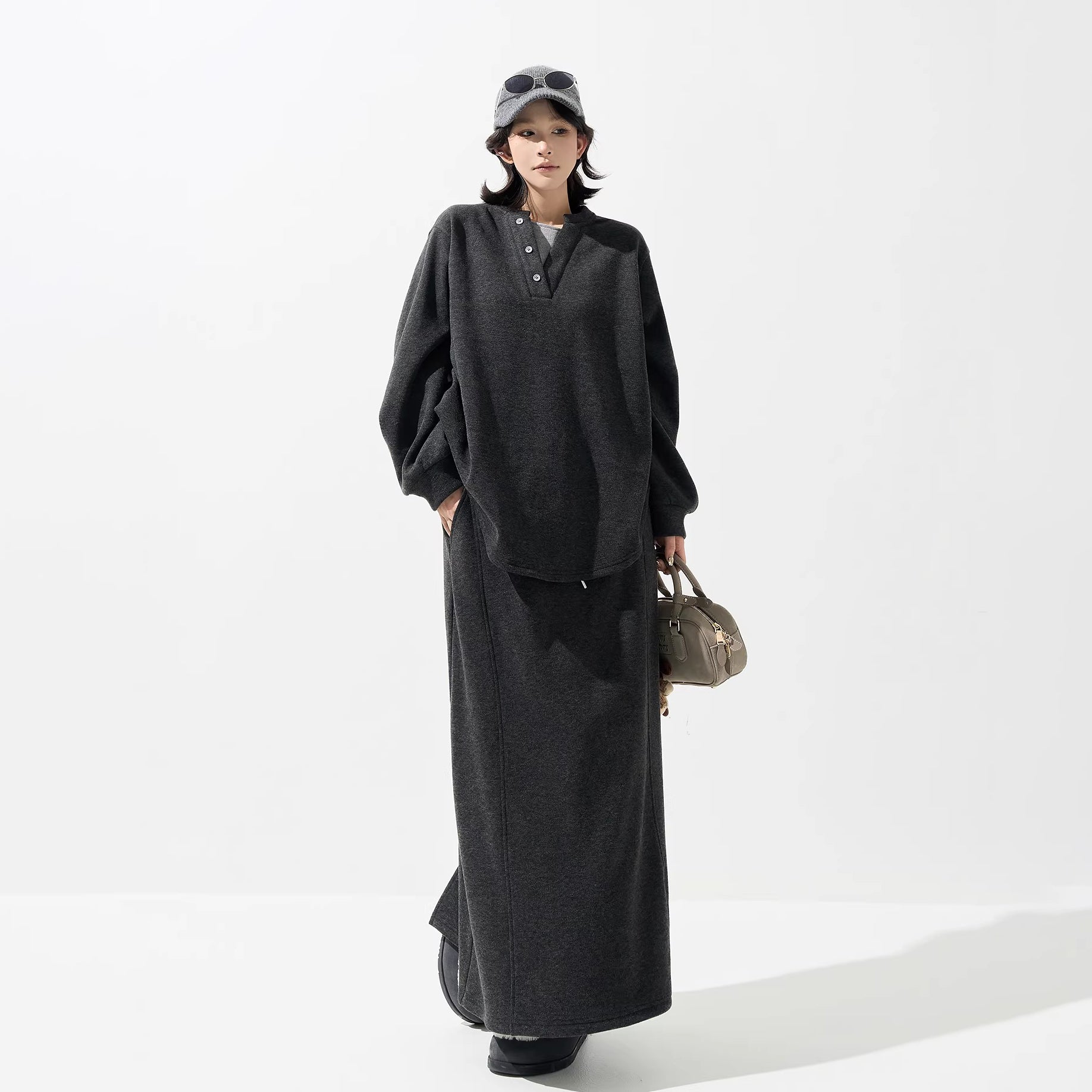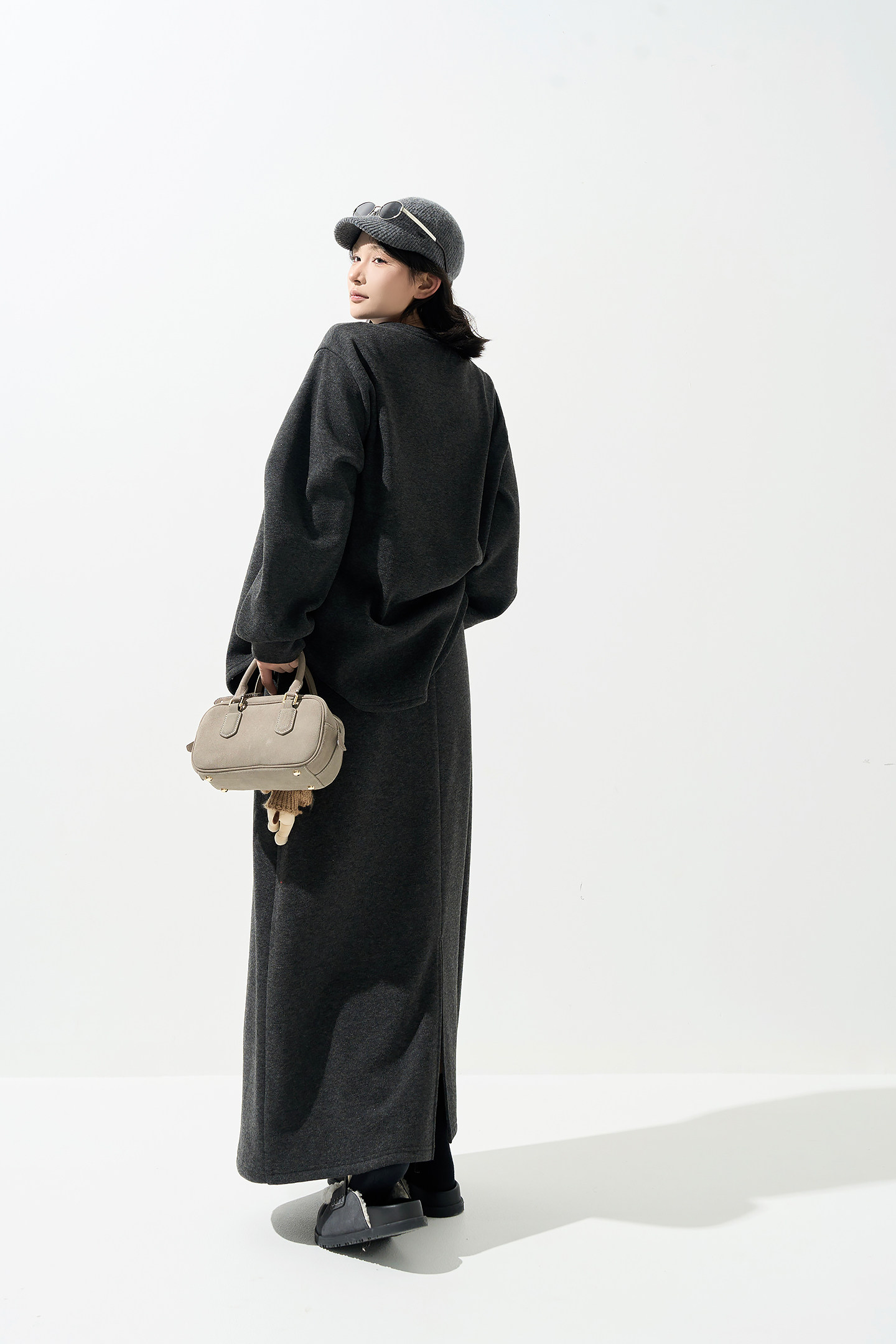 【商品名】【単品注文】【セットアップ】レイヤード風 スウェット+スカート 上下セット レディース 秋冬 韓国風 上品 あったか【FCシリーズ】