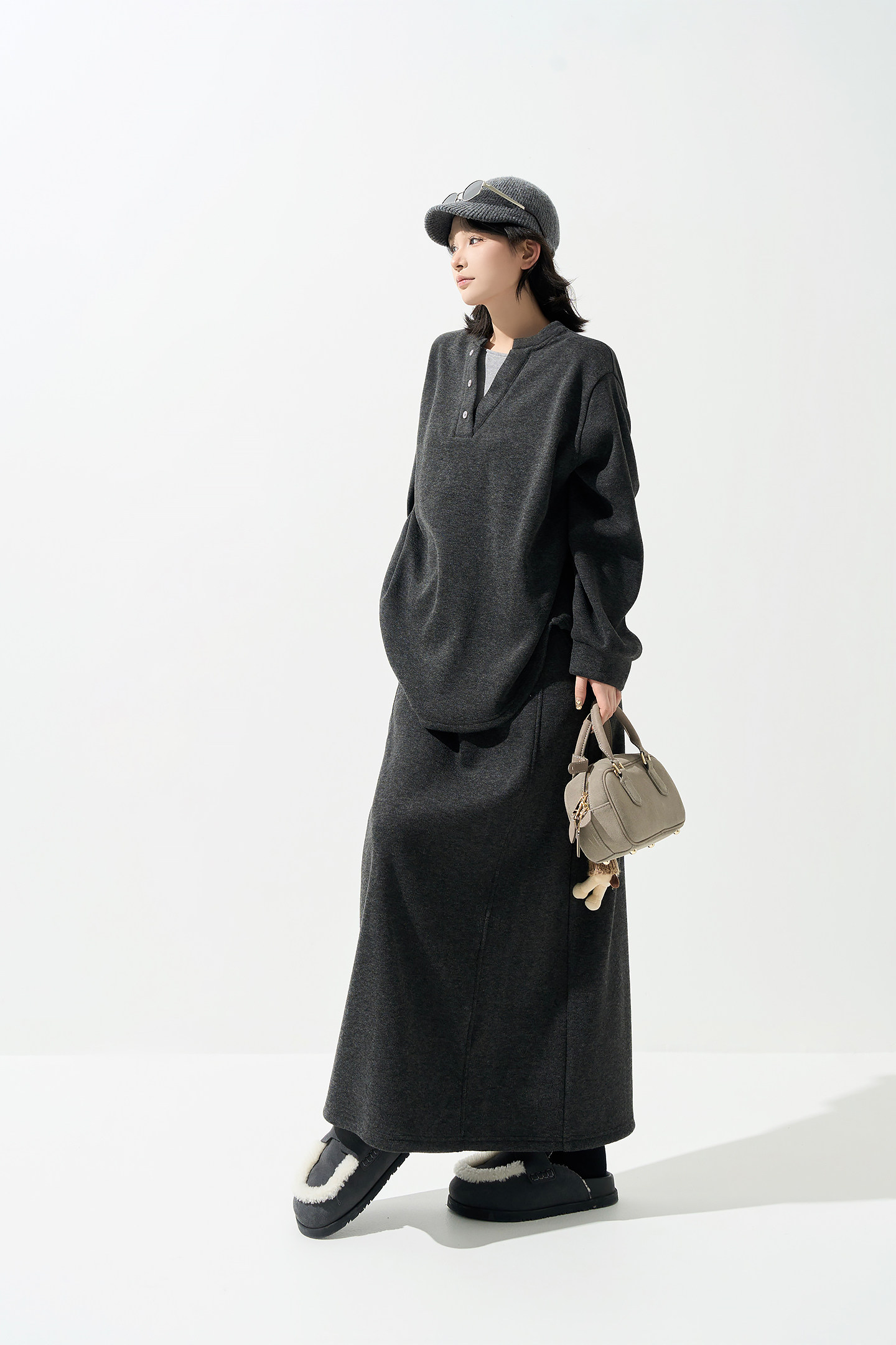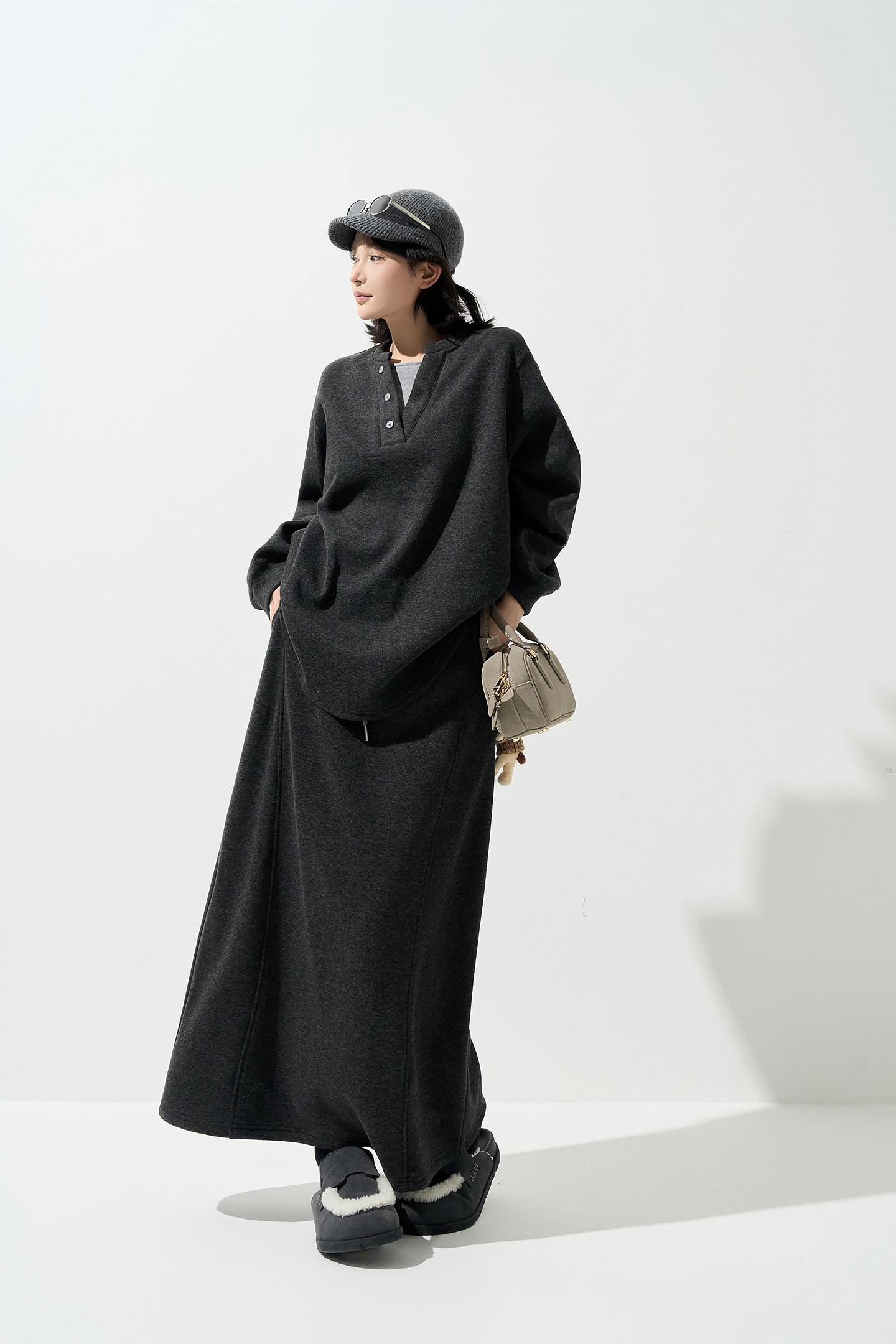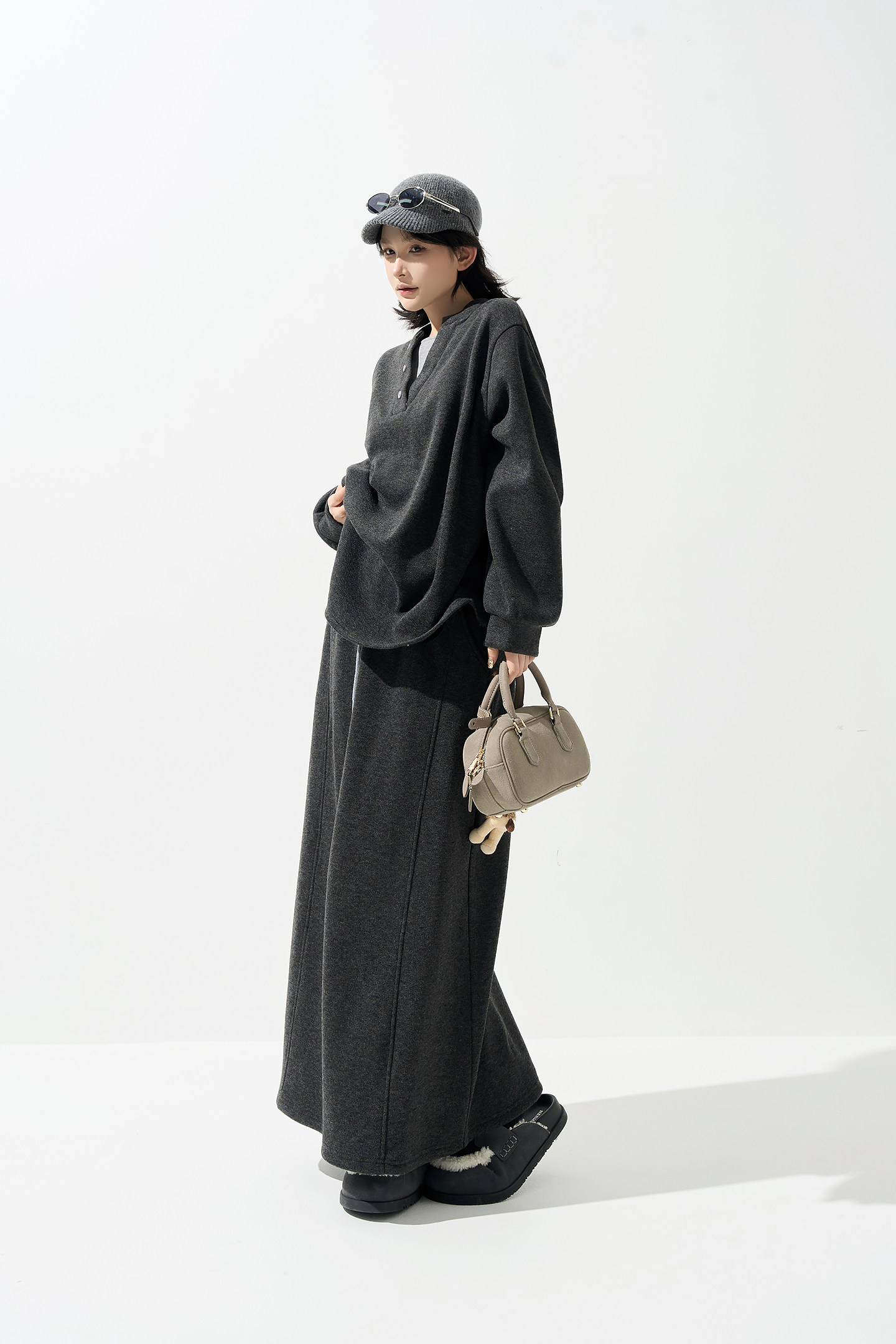 【商品名】【単品注文】【セットアップ】レイヤード風 スウェット+スカート 上下セット レディース 秋冬 韓国風 上品 あったか【FCシリーズ】