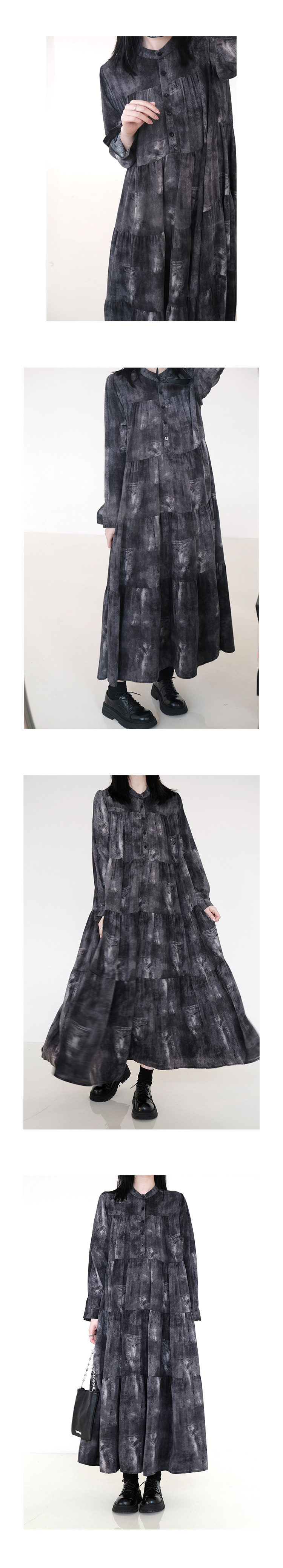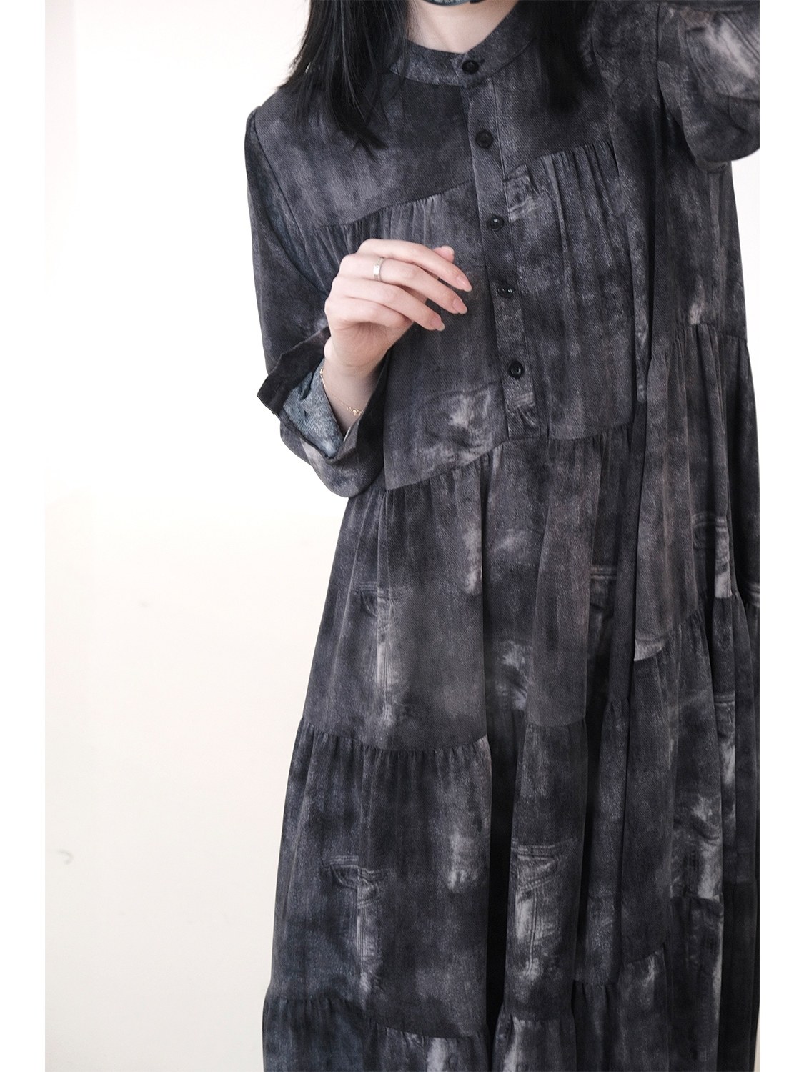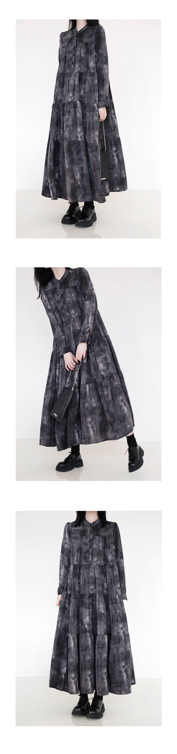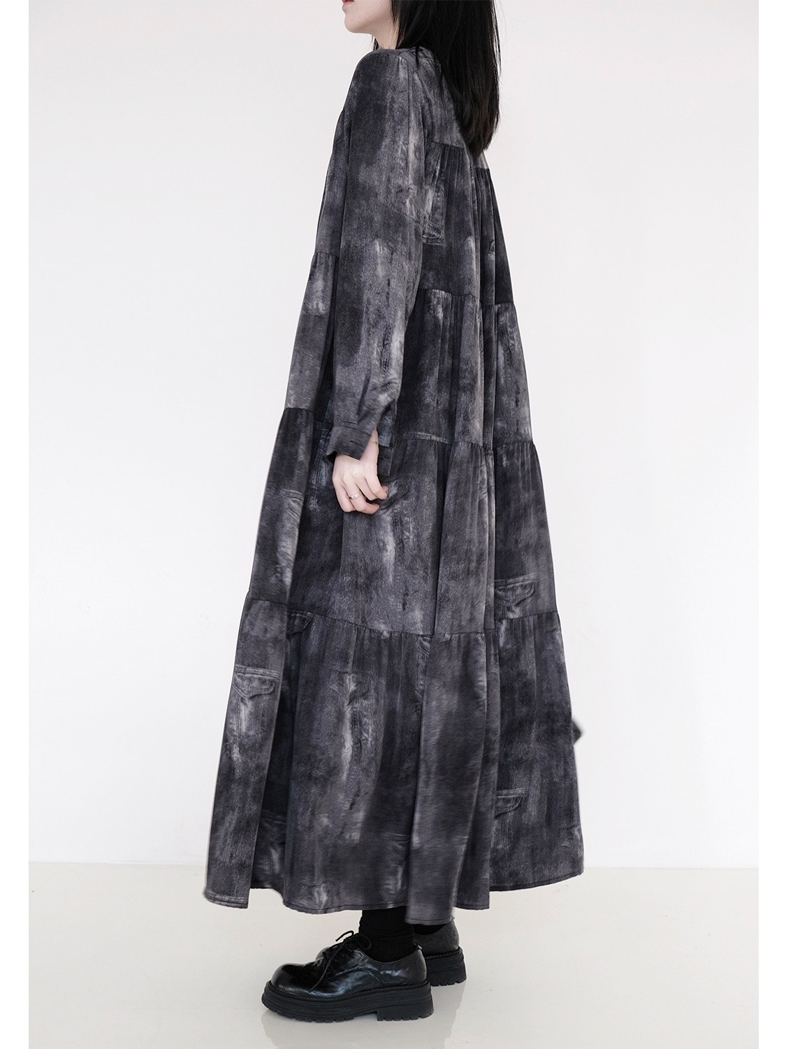 【ワンピース】タイダイ 体型カバー ダーク系 シワになりにくい 長袖 ワンピース 【AHシリーズ】