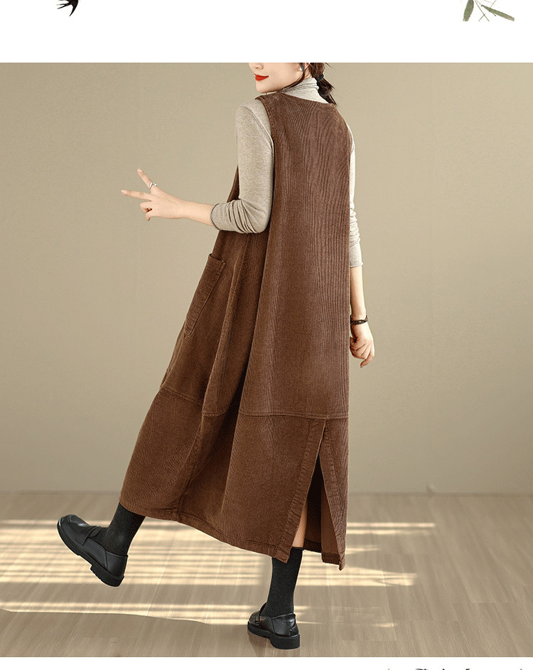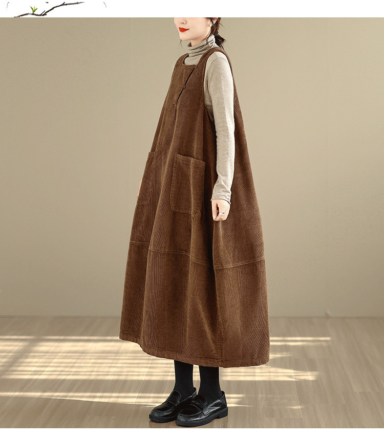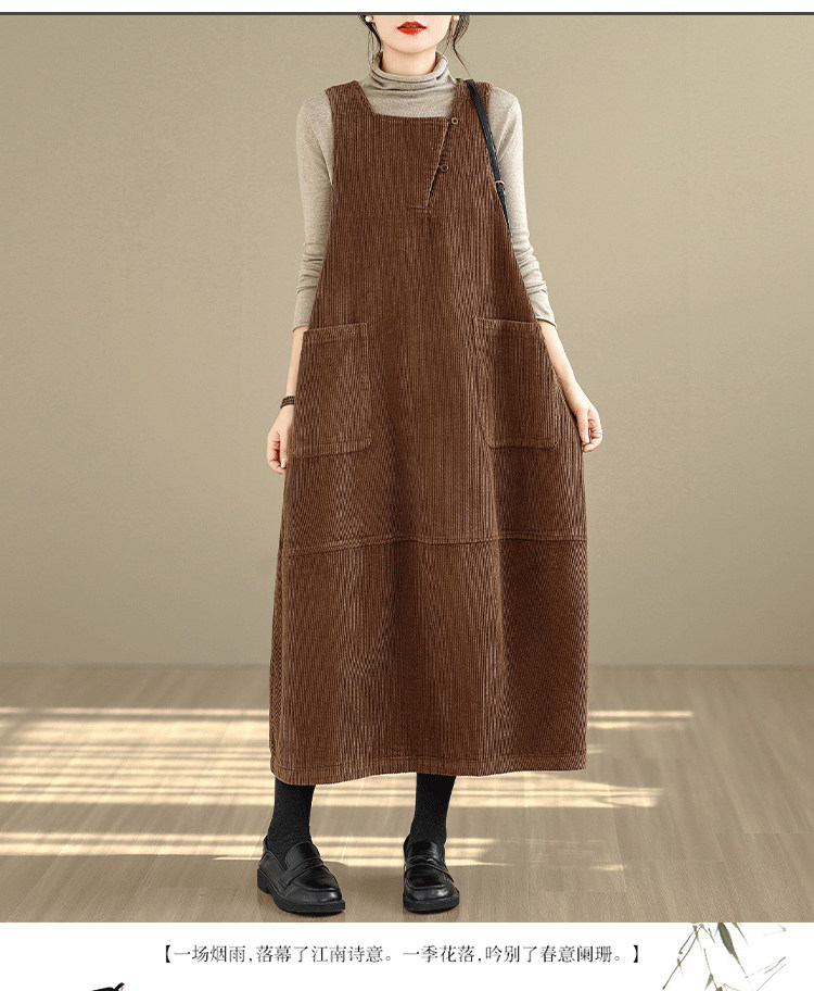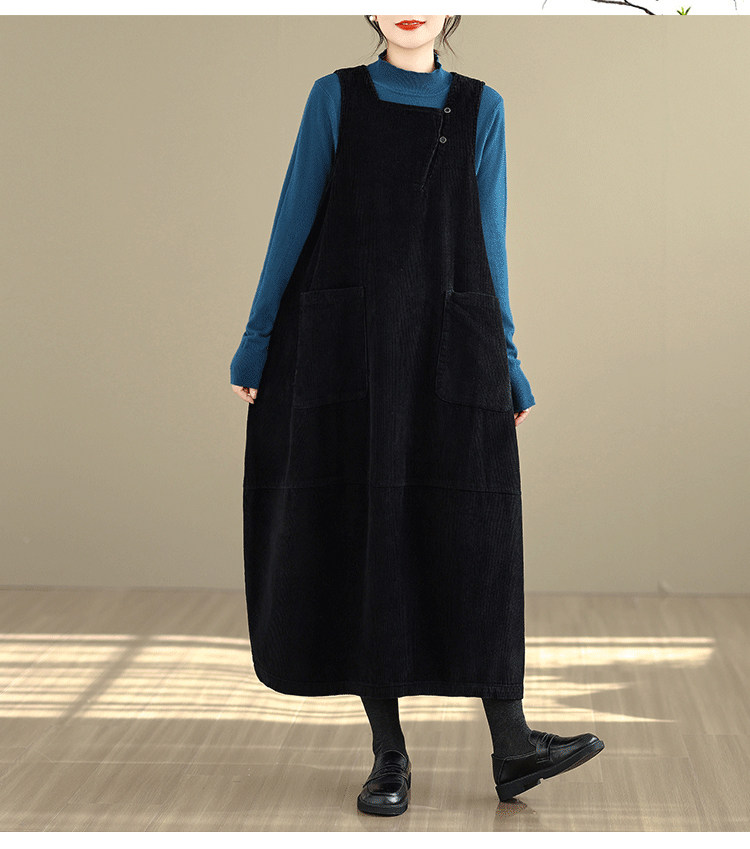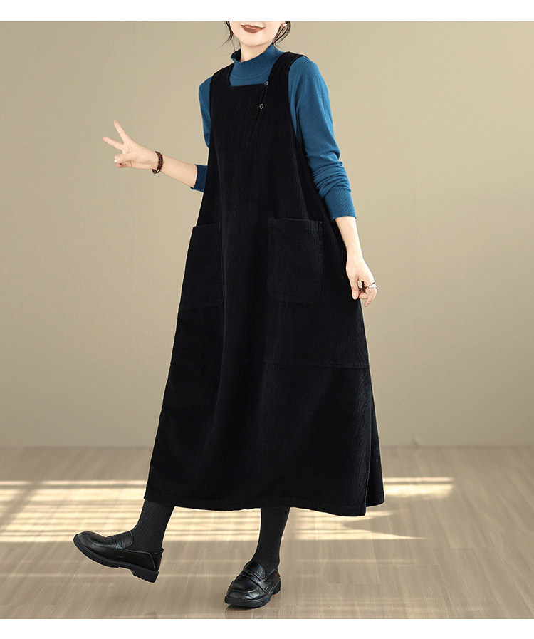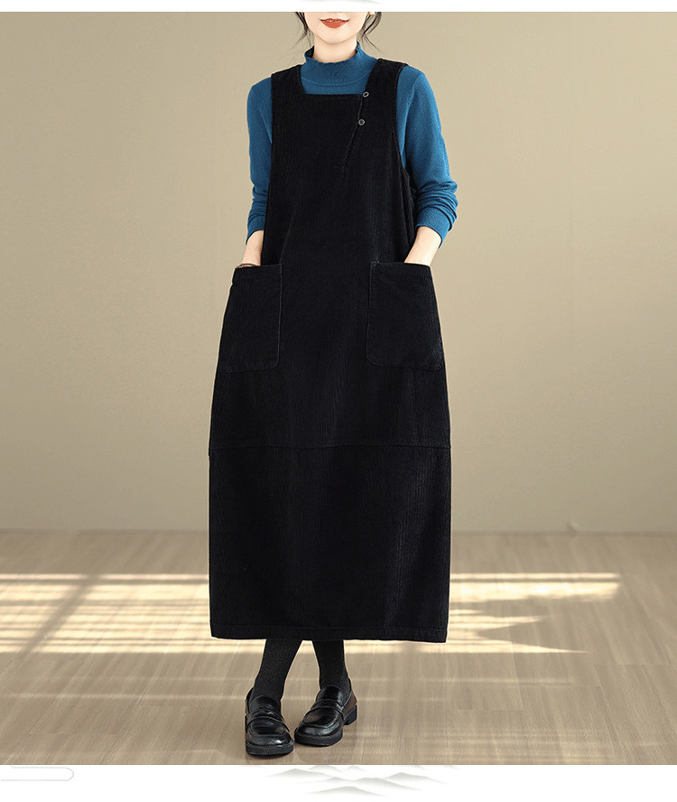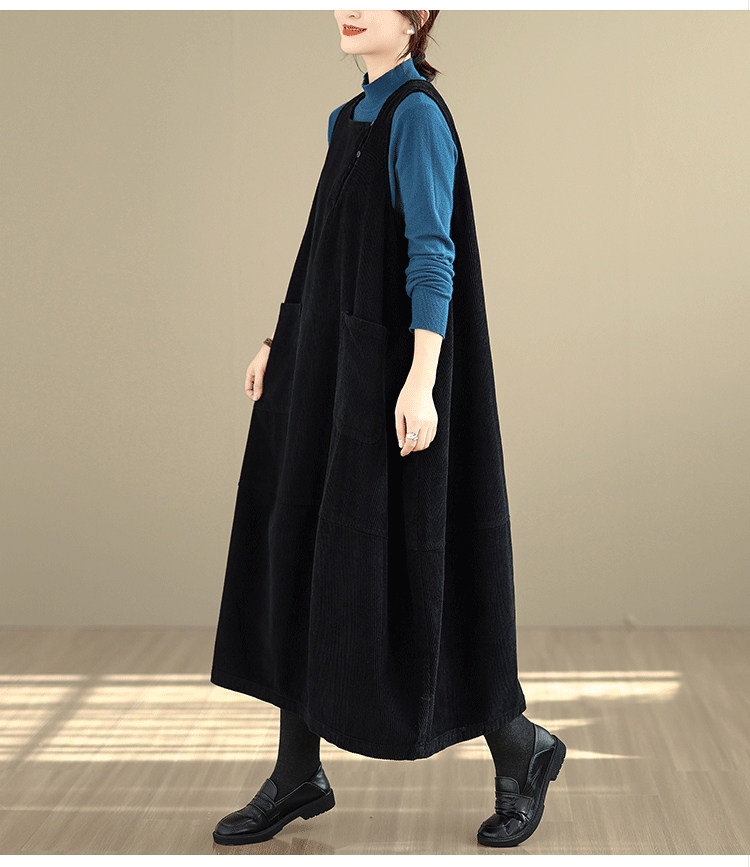 【商品名】【ワンピース】スクエアネック コーデュロイ 綿100% ロング丈 ノースリーブワンピース 冬用【AHシリーズ】