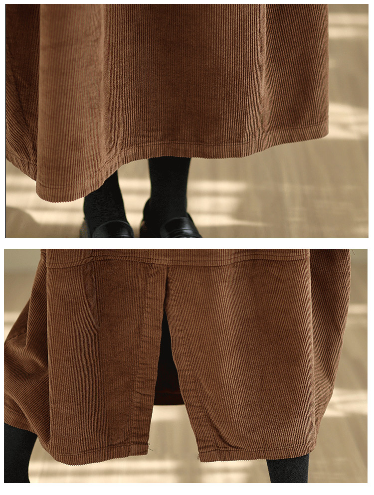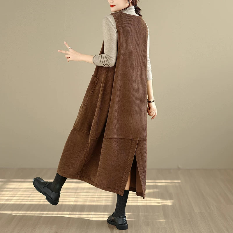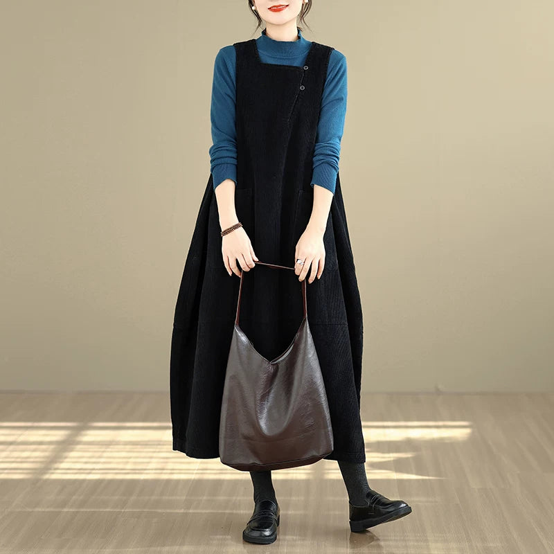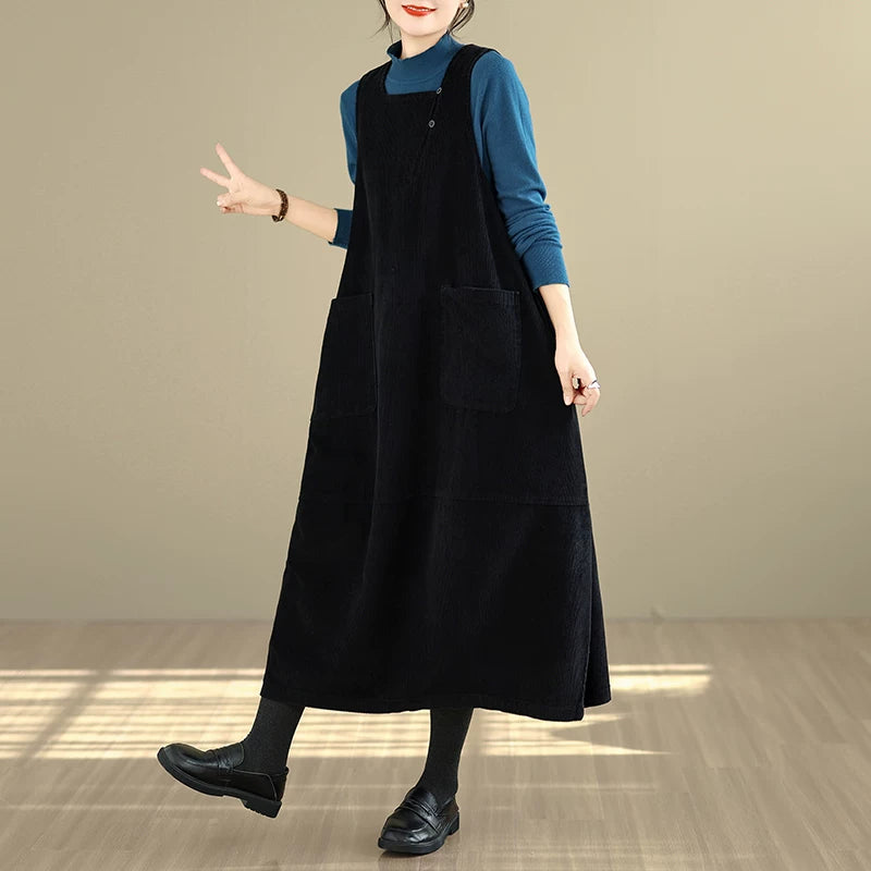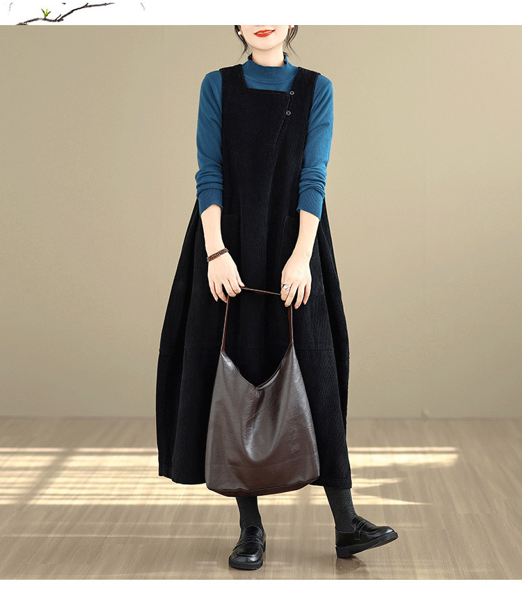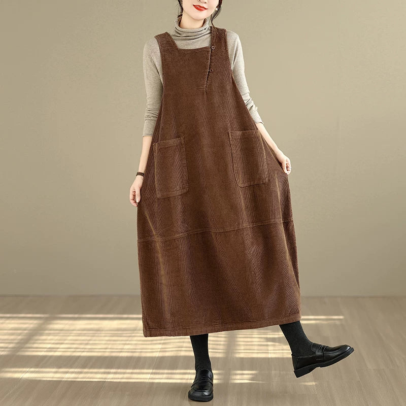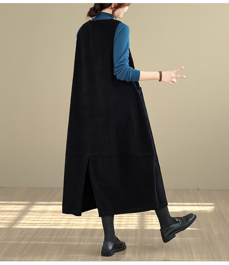 【商品名】【ワンピース】スクエアネック コーデュロイ 綿100% ロング丈 ノースリーブワンピース 冬用【AHシリーズ】