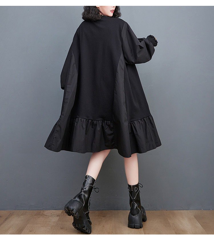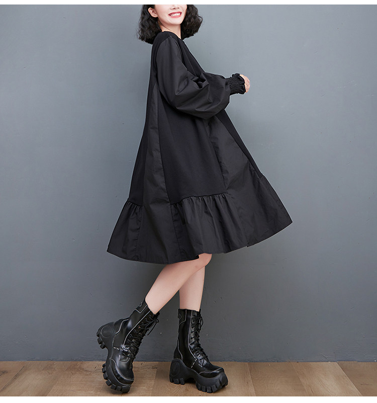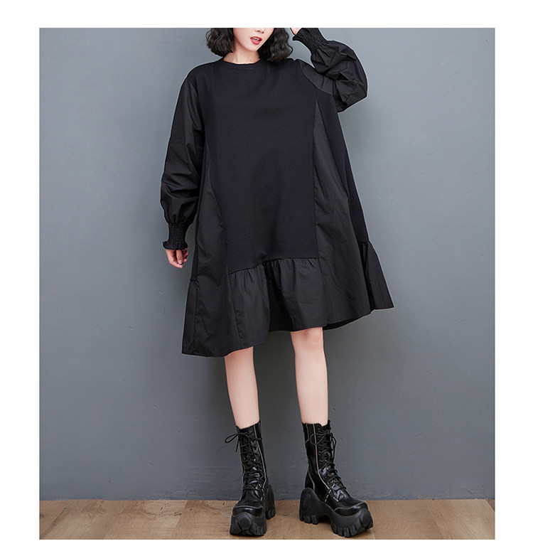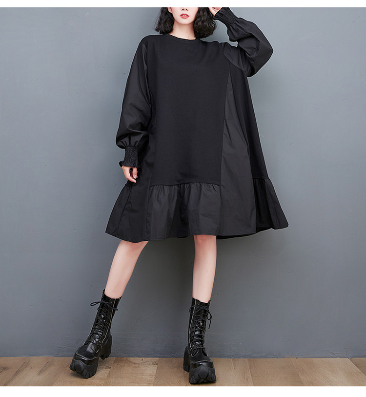 【60%OFF⭐️早い者勝ち】【ワンピース】韓国風 ゆったり 大きいサイズ 体型カバー クルーネック 切替 長袖 スウェットワンピース【AHシリーズ】