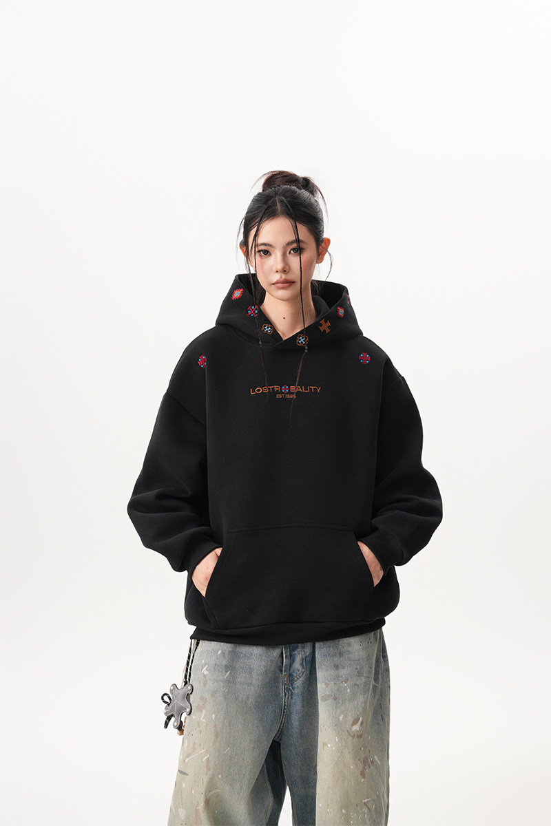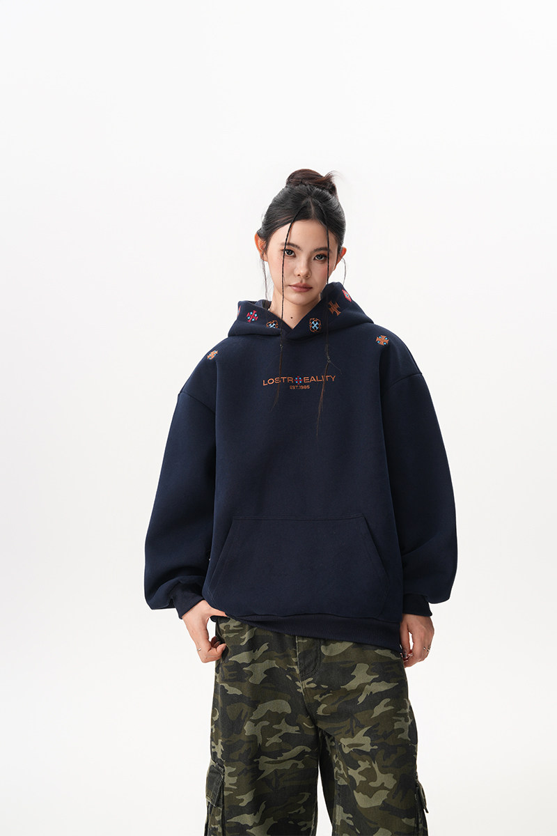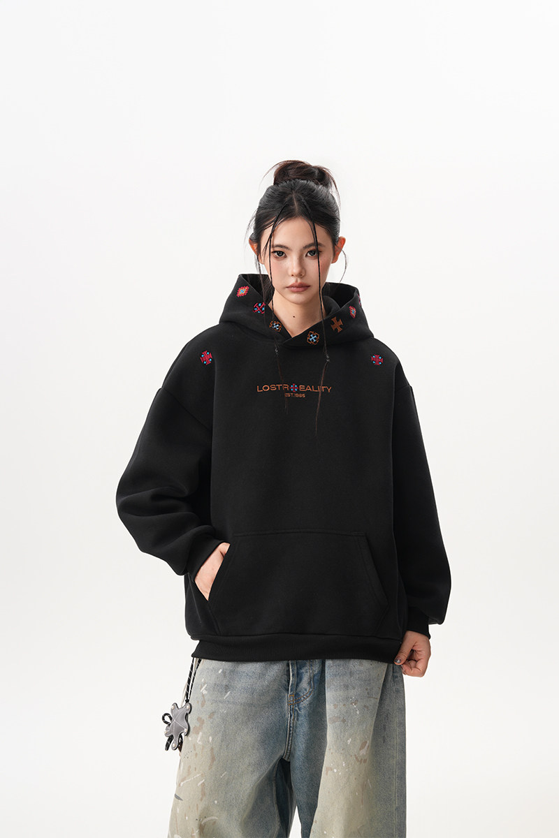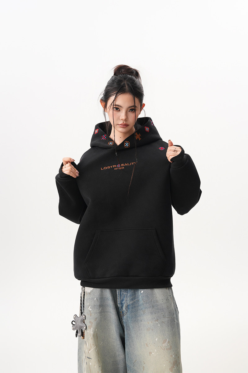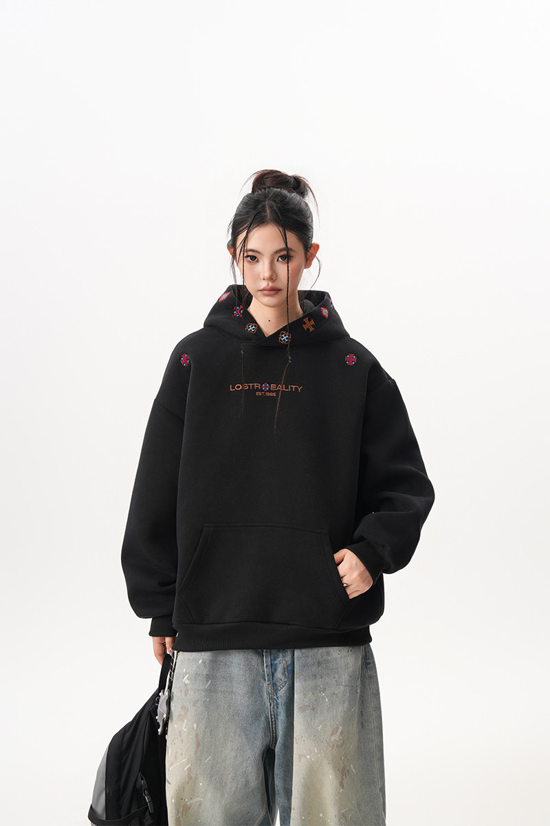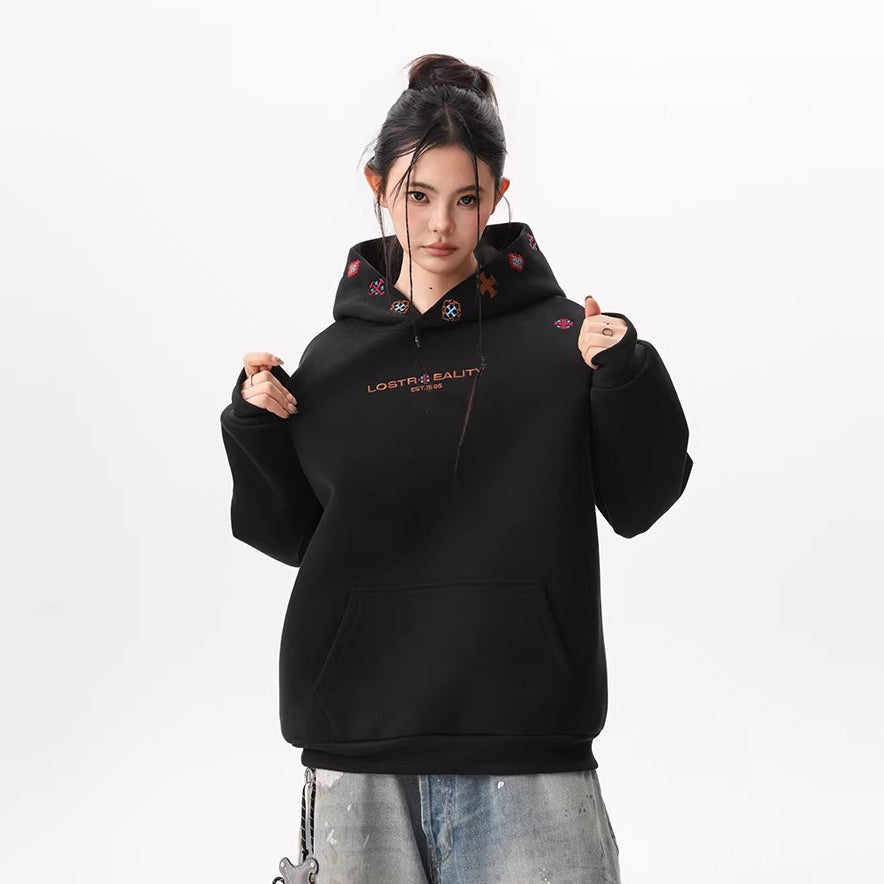 【トップス】裏起毛 刺繍パーカー ストリート系 男女兼用 カジュアル フーディー【FCシリーズ】