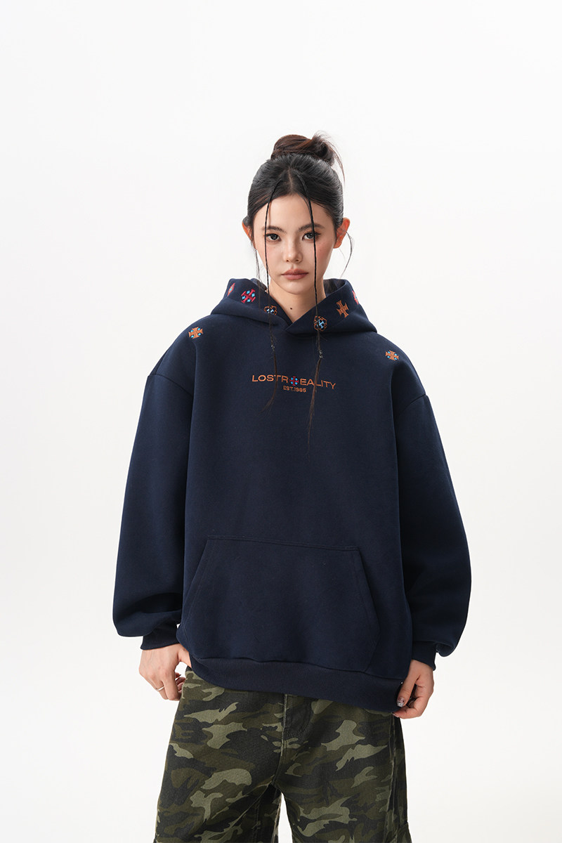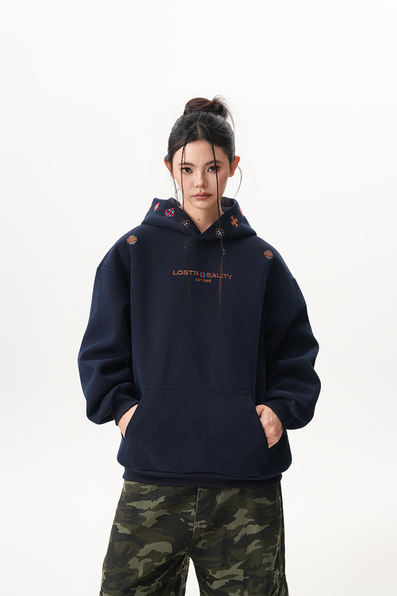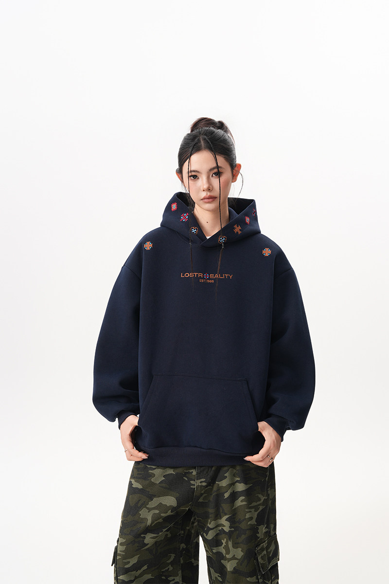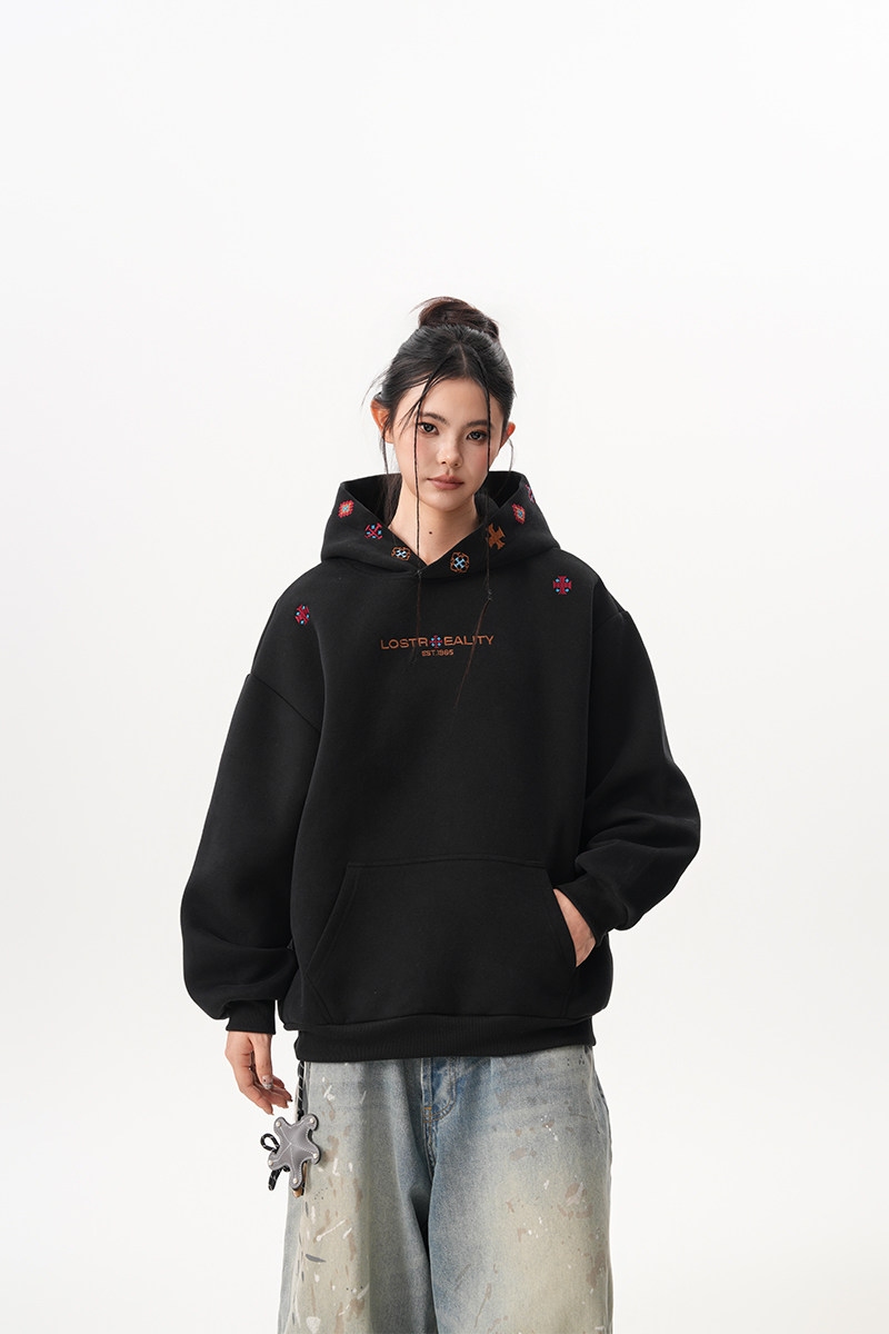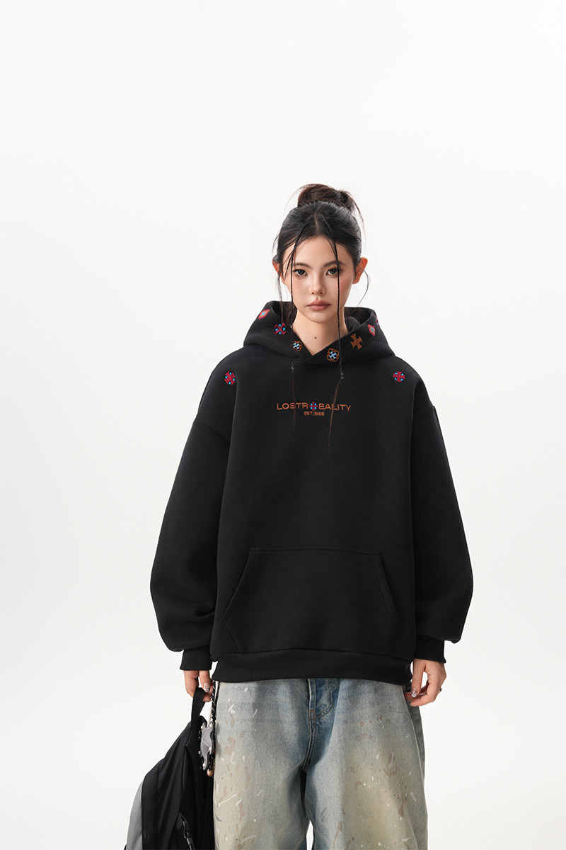 【トップス】裏起毛 刺繍パーカー ストリート系 男女兼用 カジュアル フーディー【FCシリーズ】