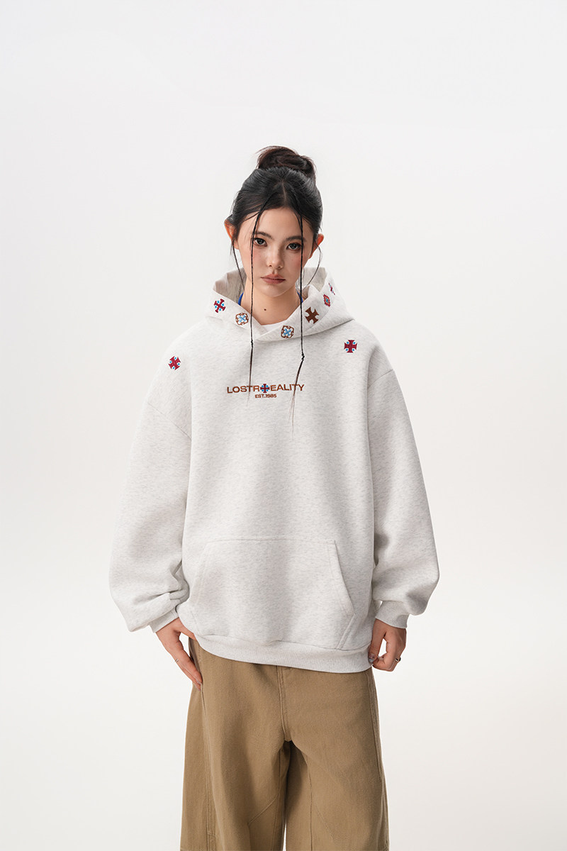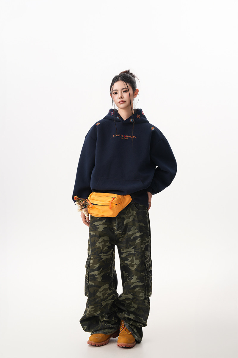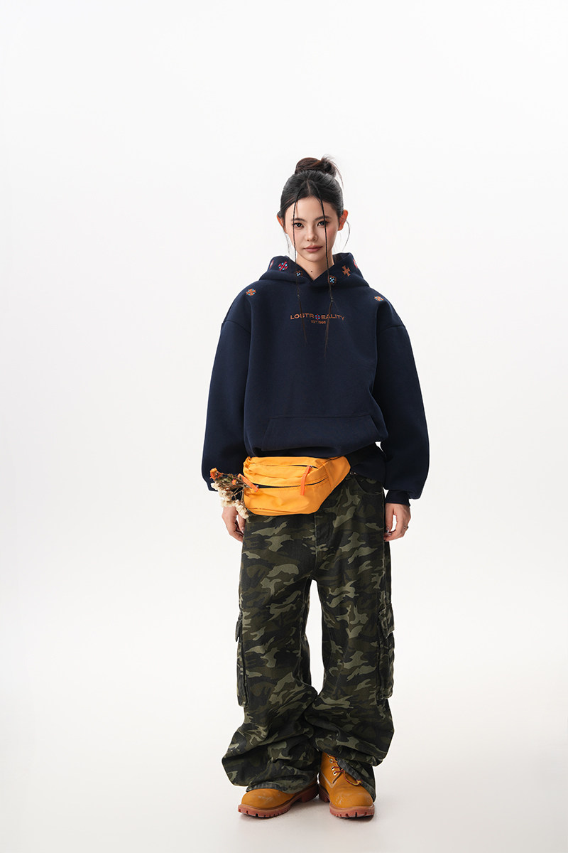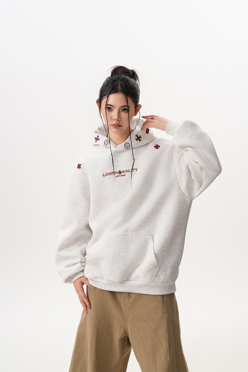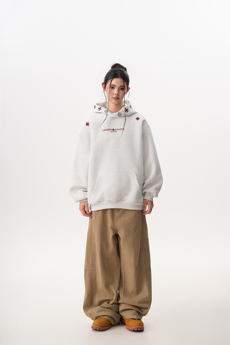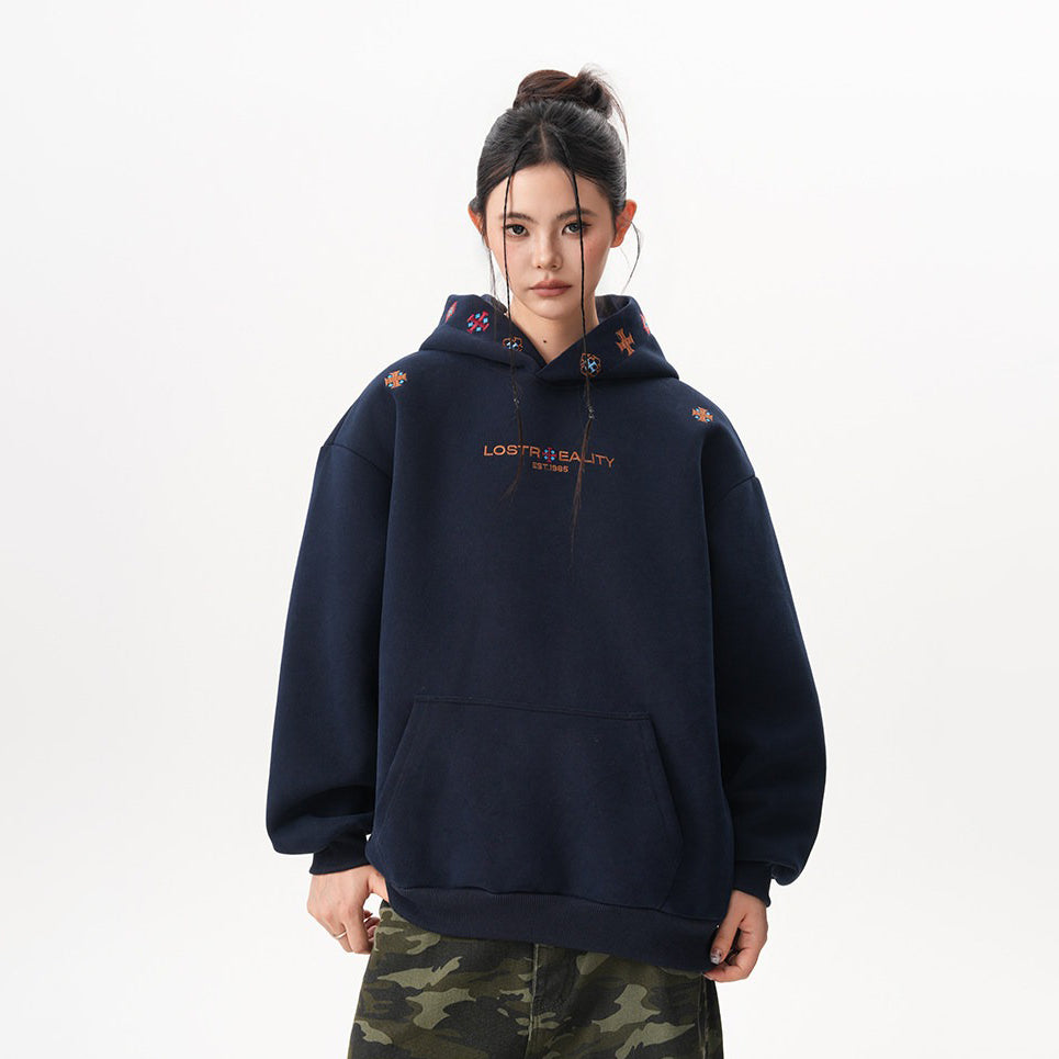 【トップス】裏起毛 刺繍パーカー ストリート系 男女兼用 カジュアル フーディー【FCシリーズ】