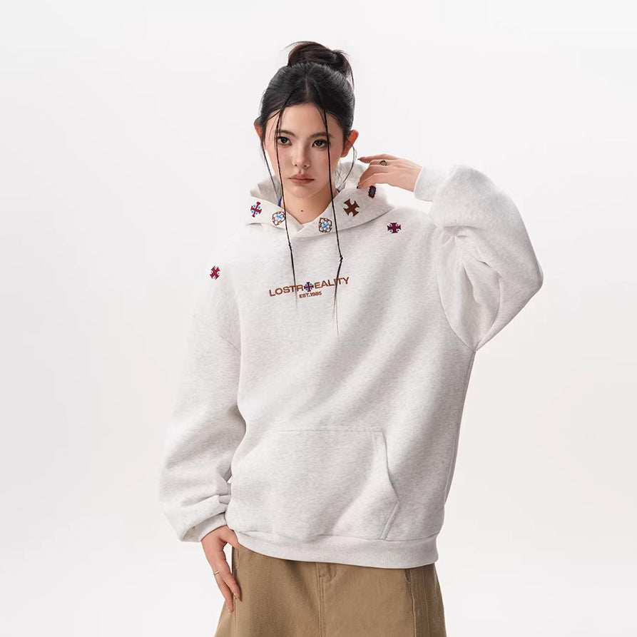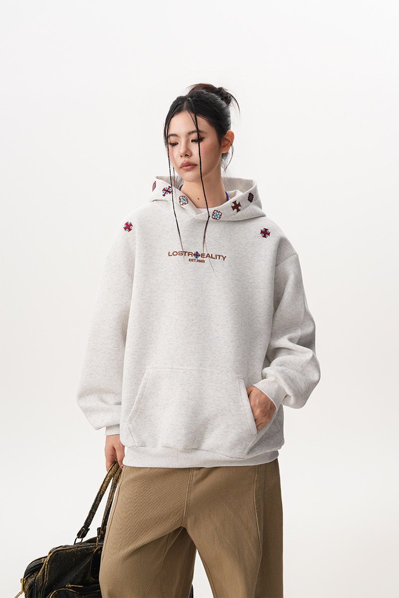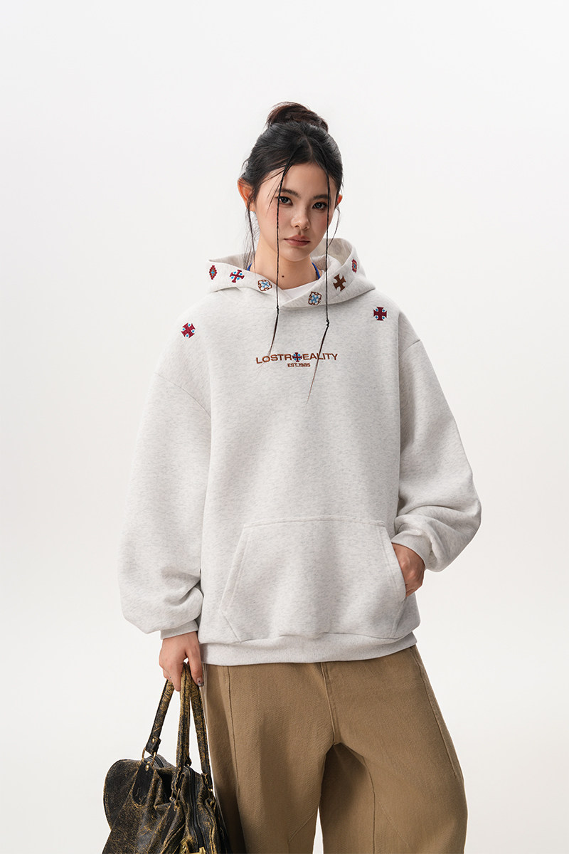 【トップス】ヴィンテージ風 デザイン 蝶刺繍 フードパーカー レディース 新作 ゆったり リラックス 長袖 トップス【FCシリーズ】