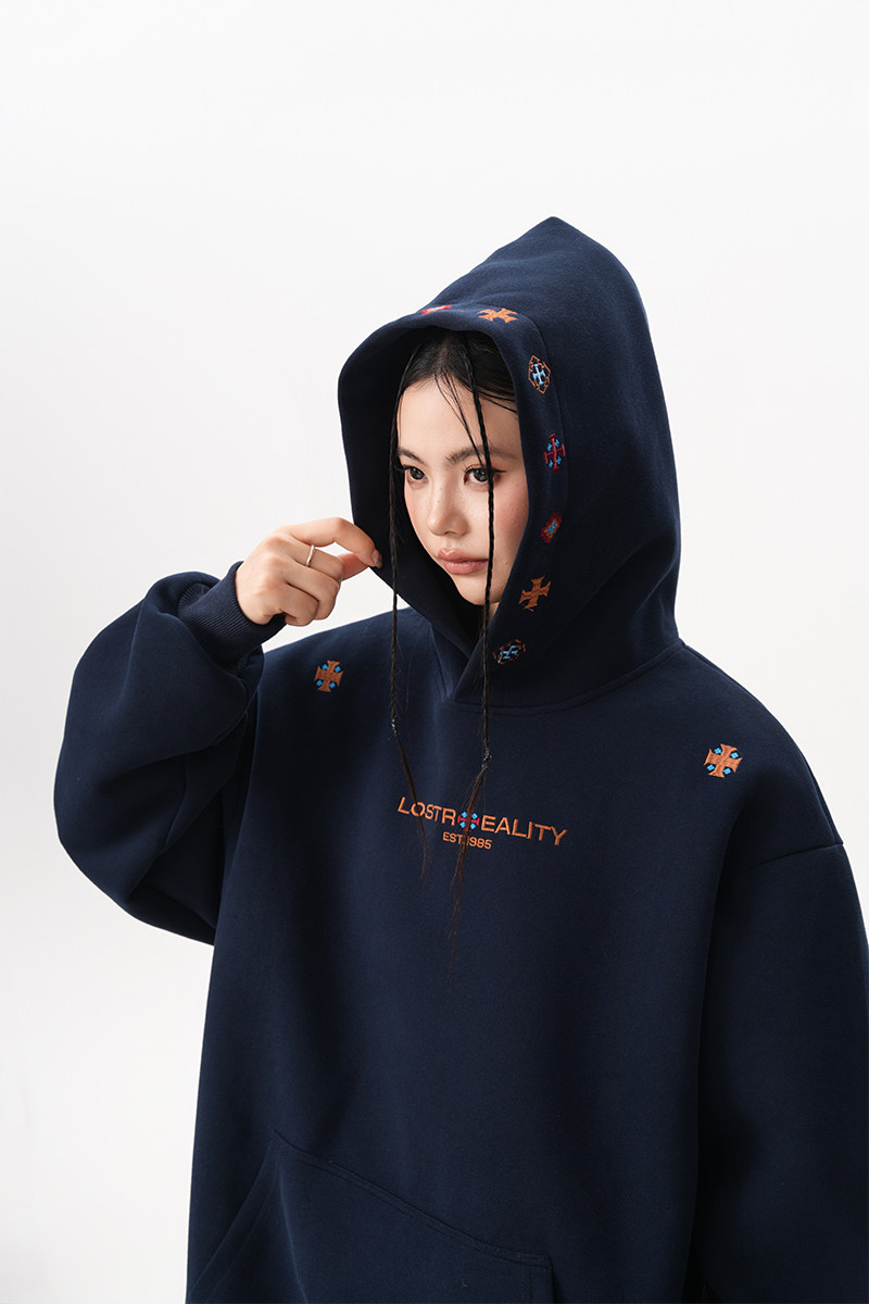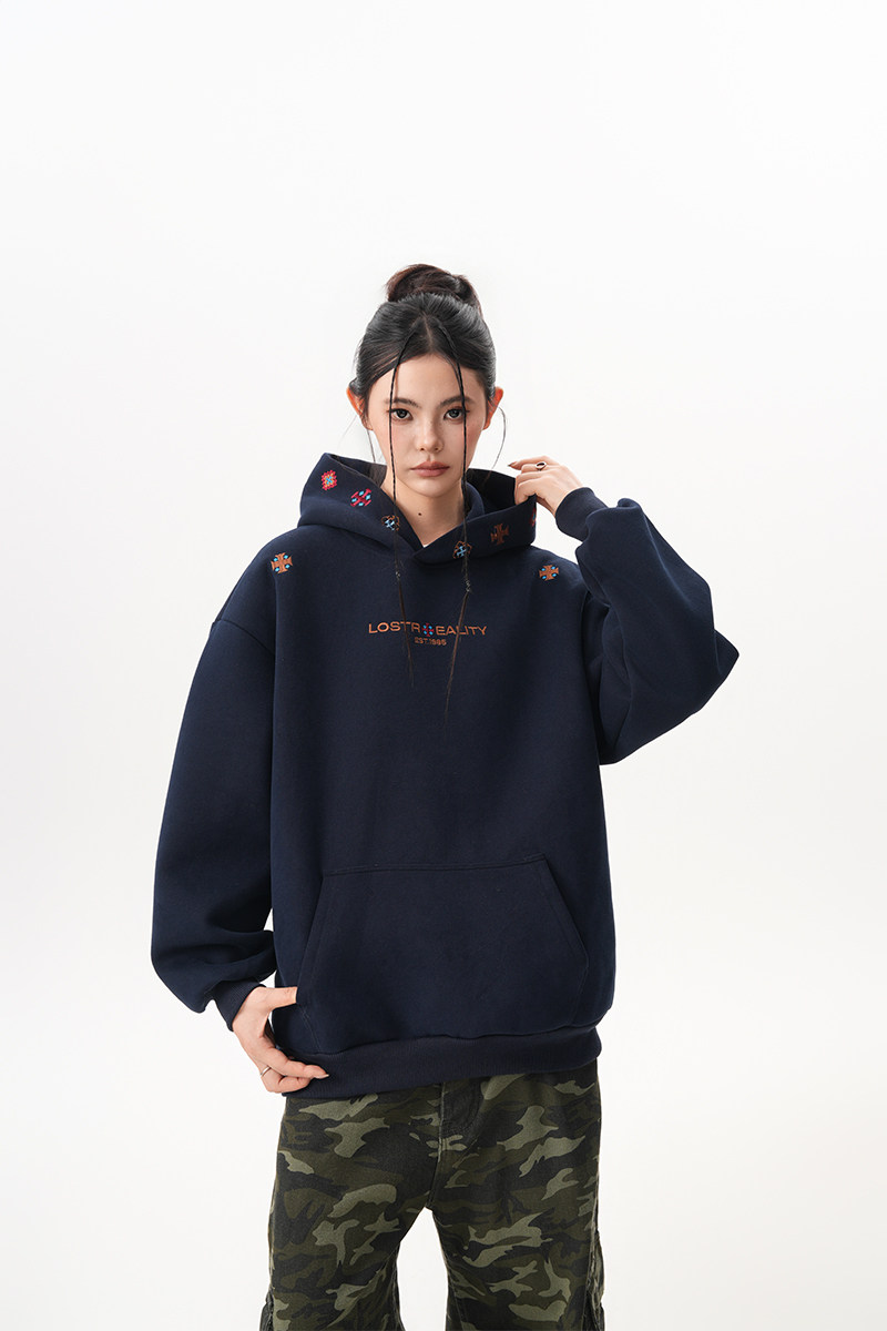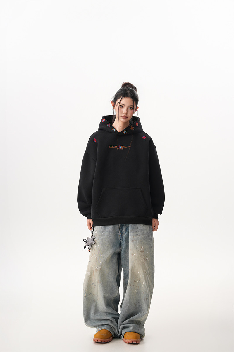 [上衣] 春秋冬寬鬆復古刺繡牛仔連帽衫 [FC系列]