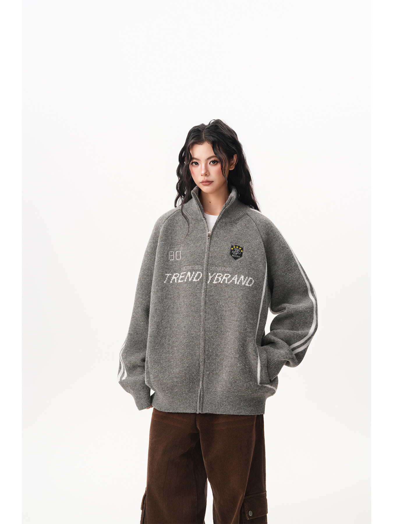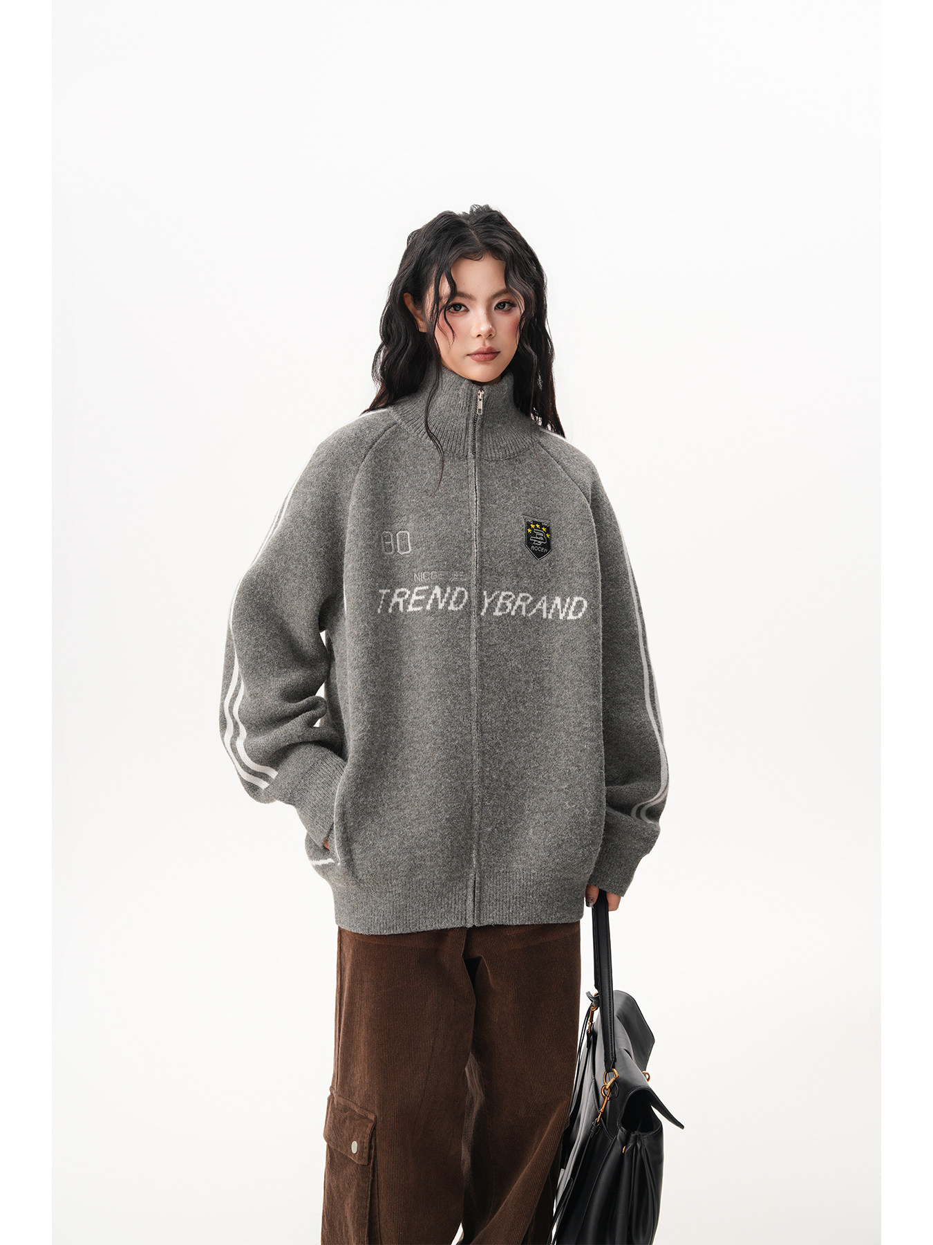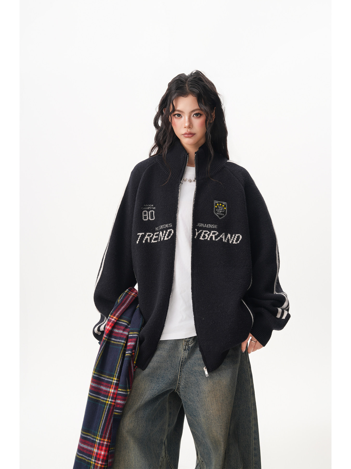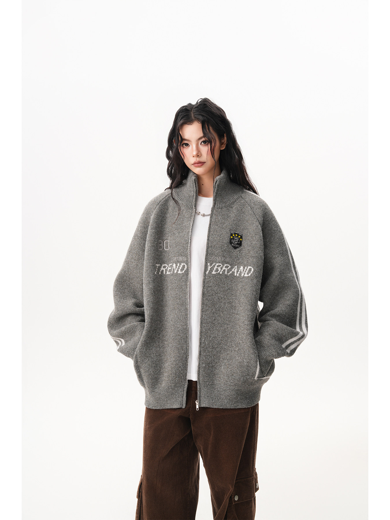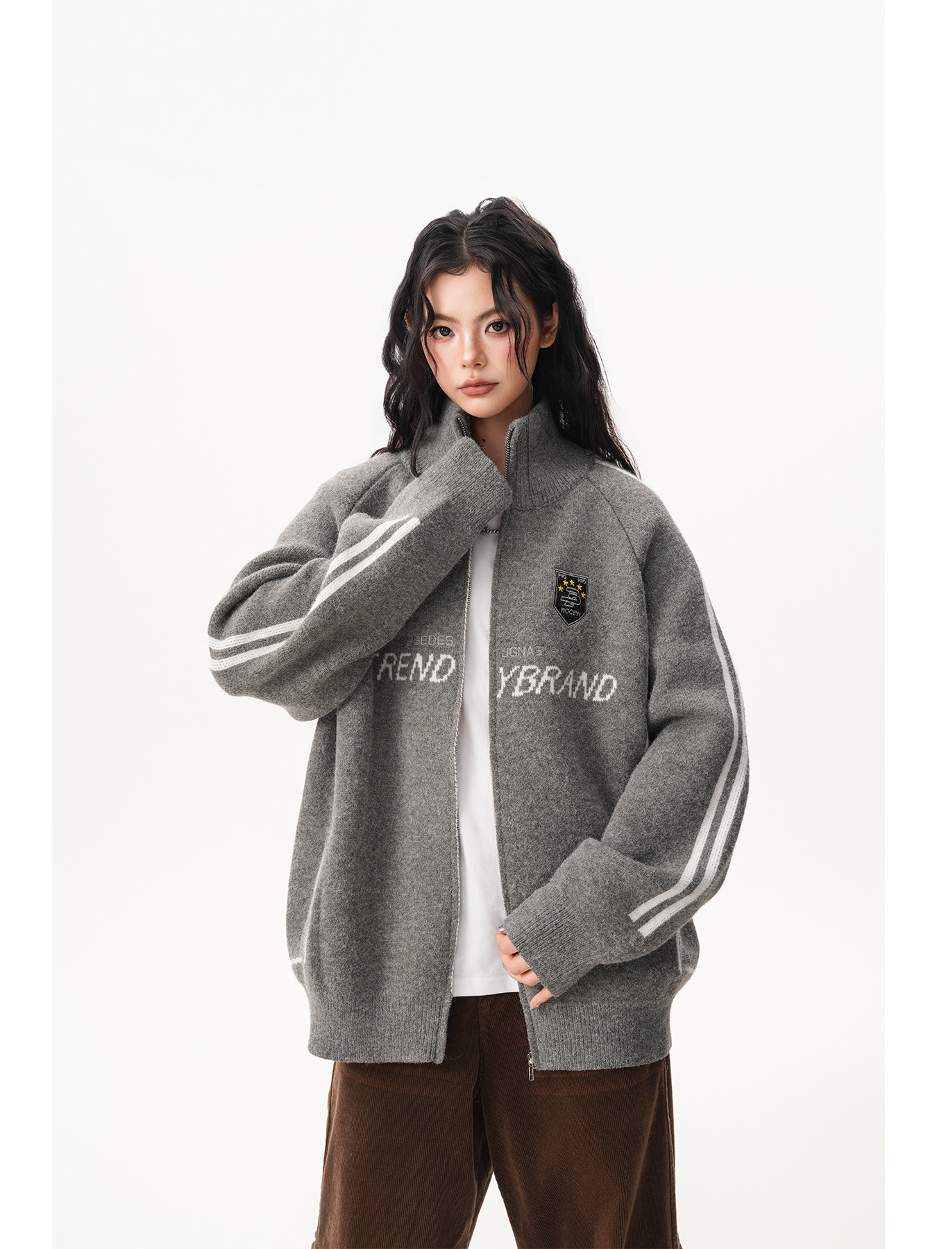 【トップス】アメリカンスポーツ風 立ち襟 ニットカーディガン ユニセックス 秋向け トレンド セーター【FCシリーズ】