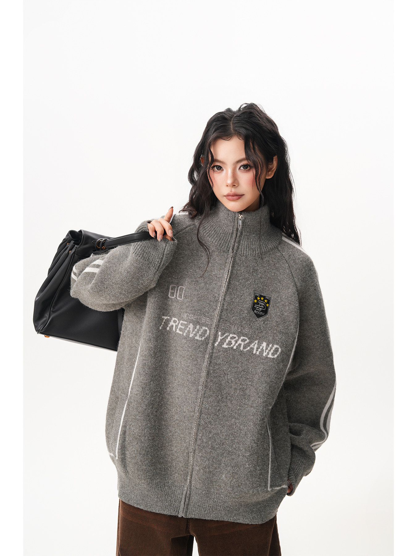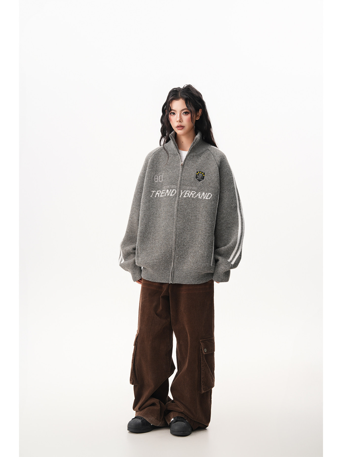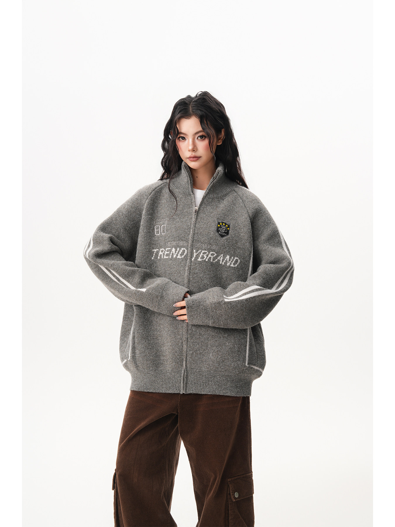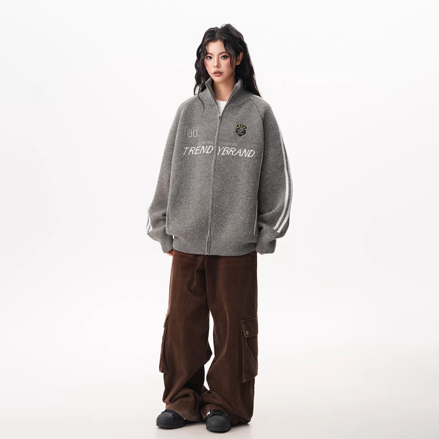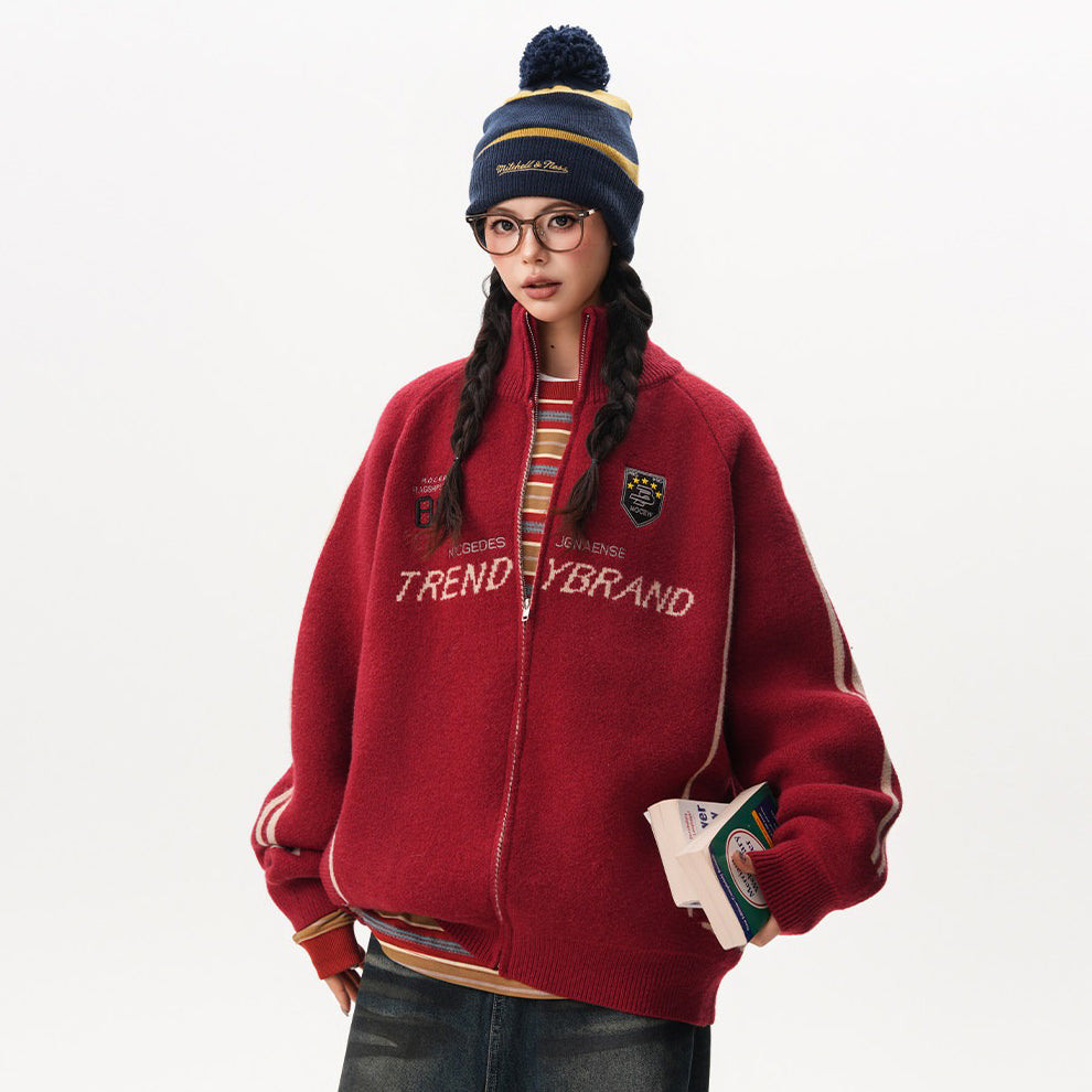 【トップス】アメリカンスポーツ風 立ち襟 ニットカーディガン ユニセックス 秋向け トレンド セーター【FCシリーズ】