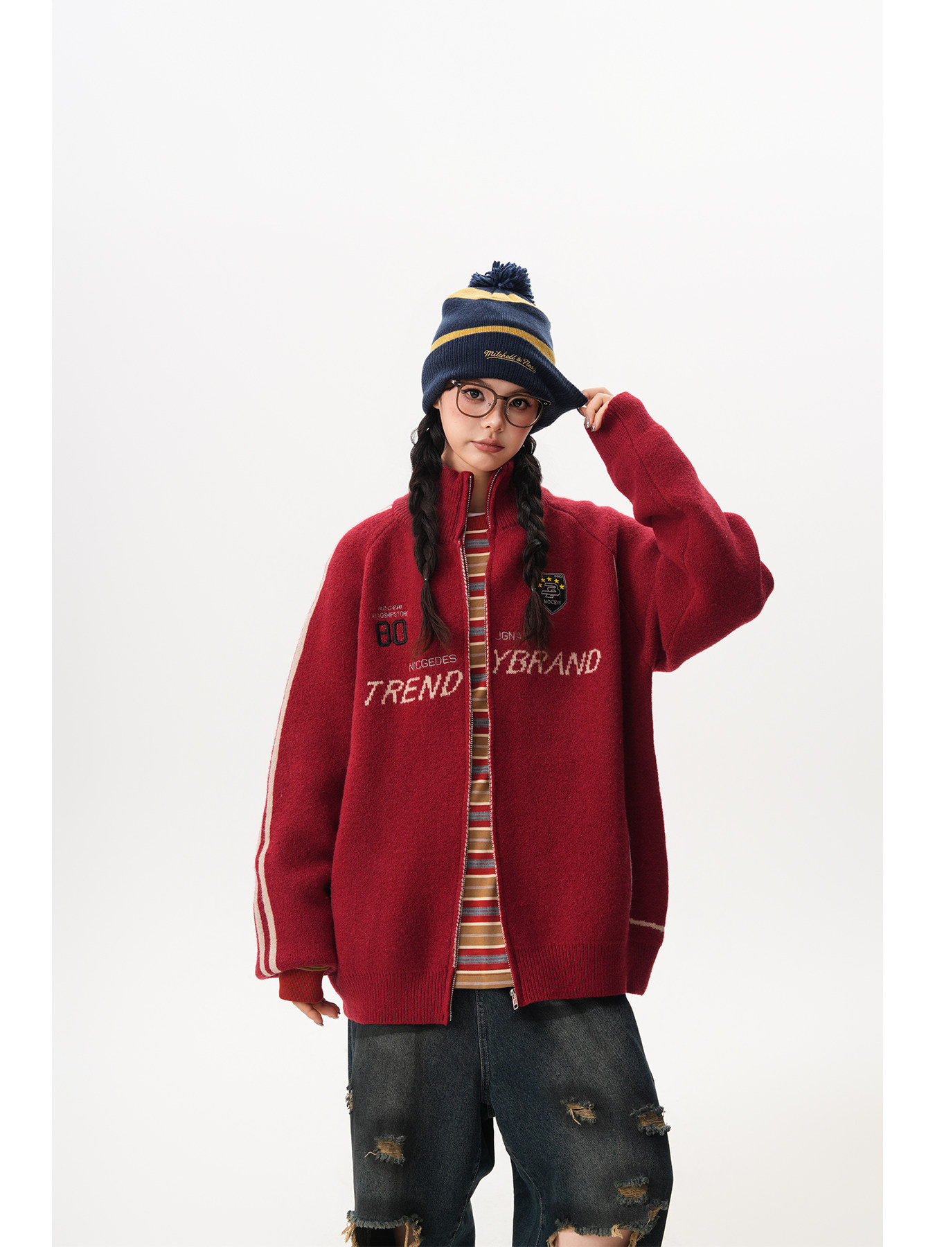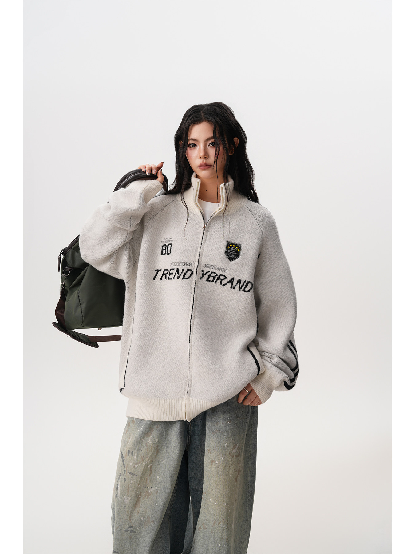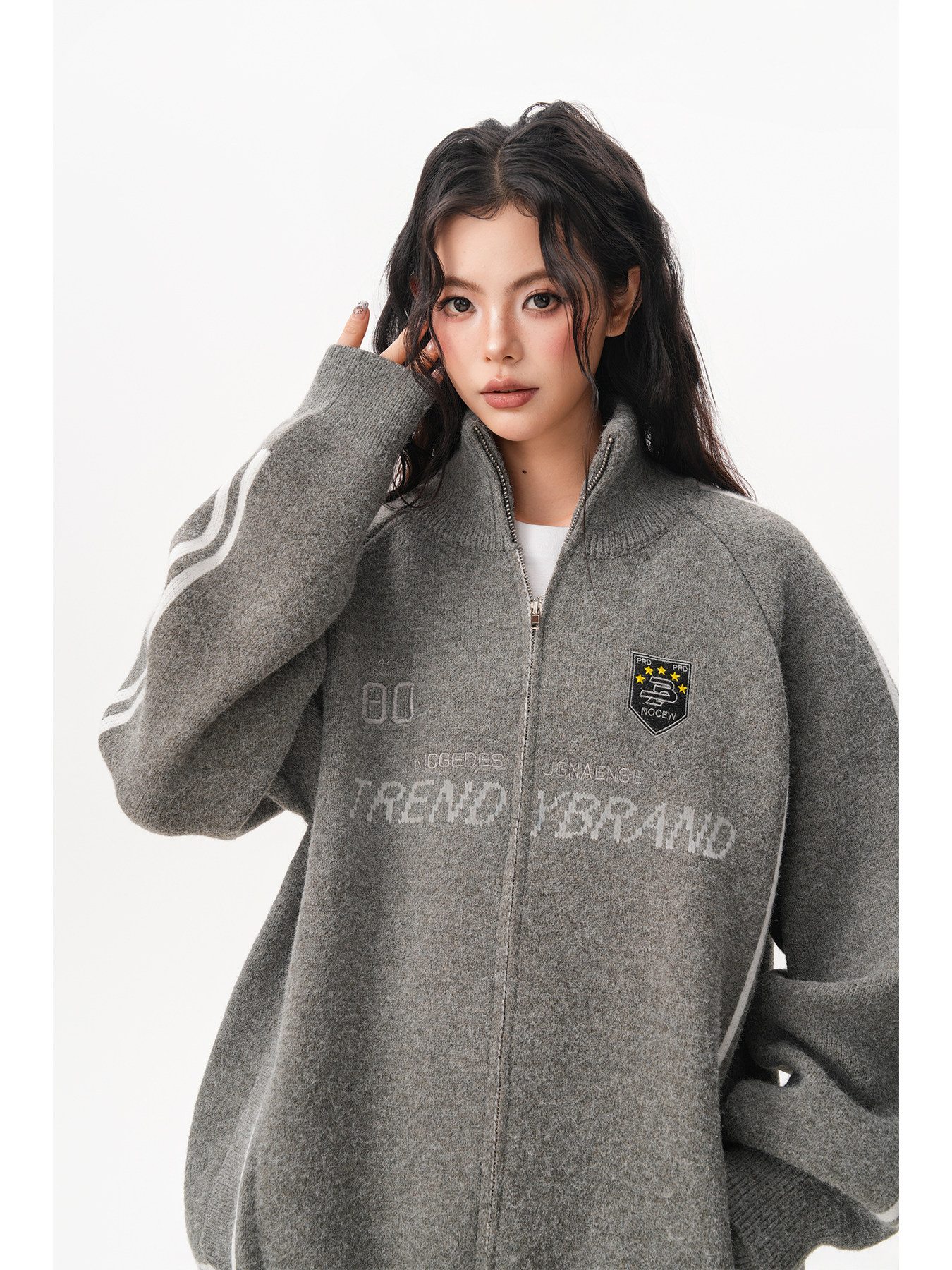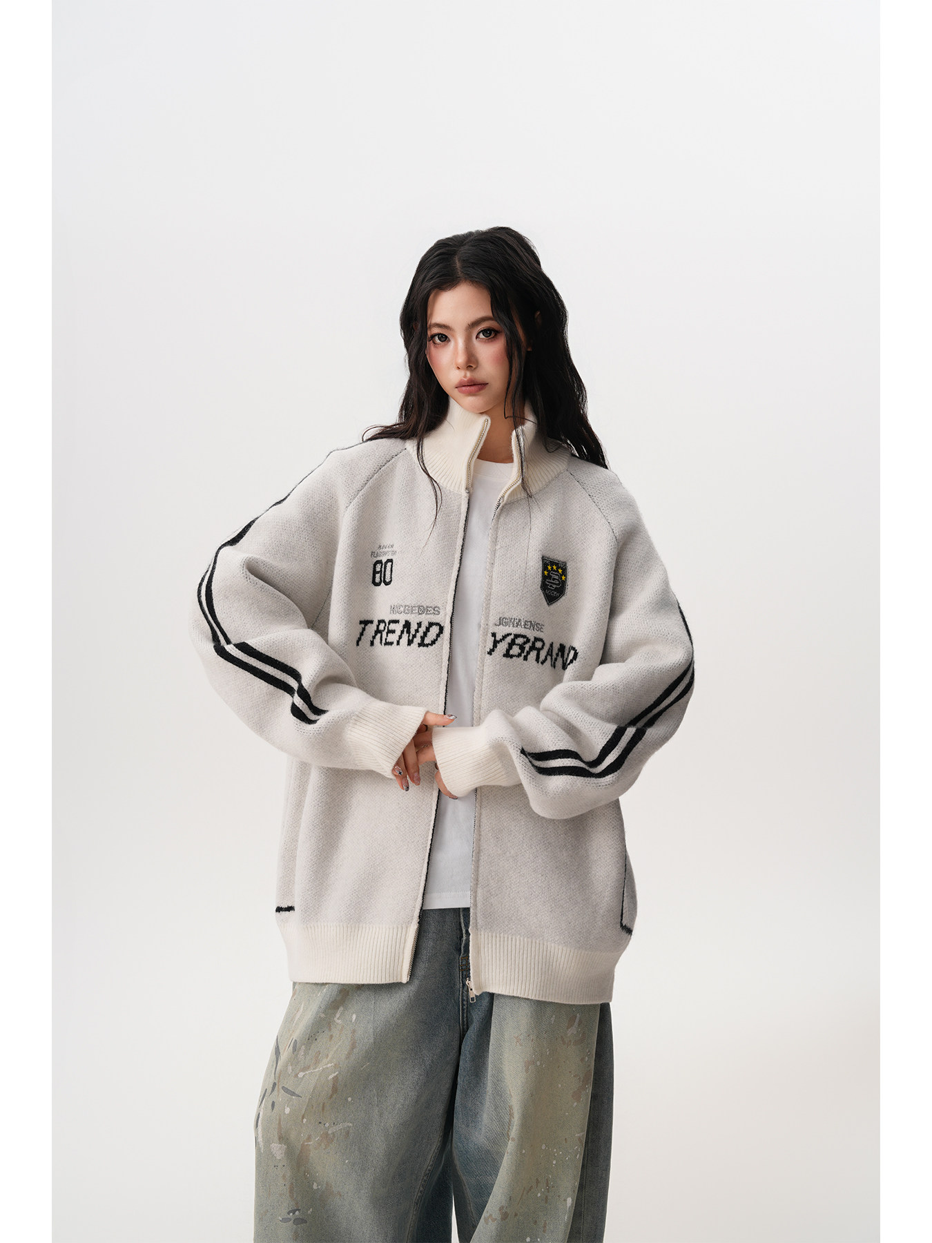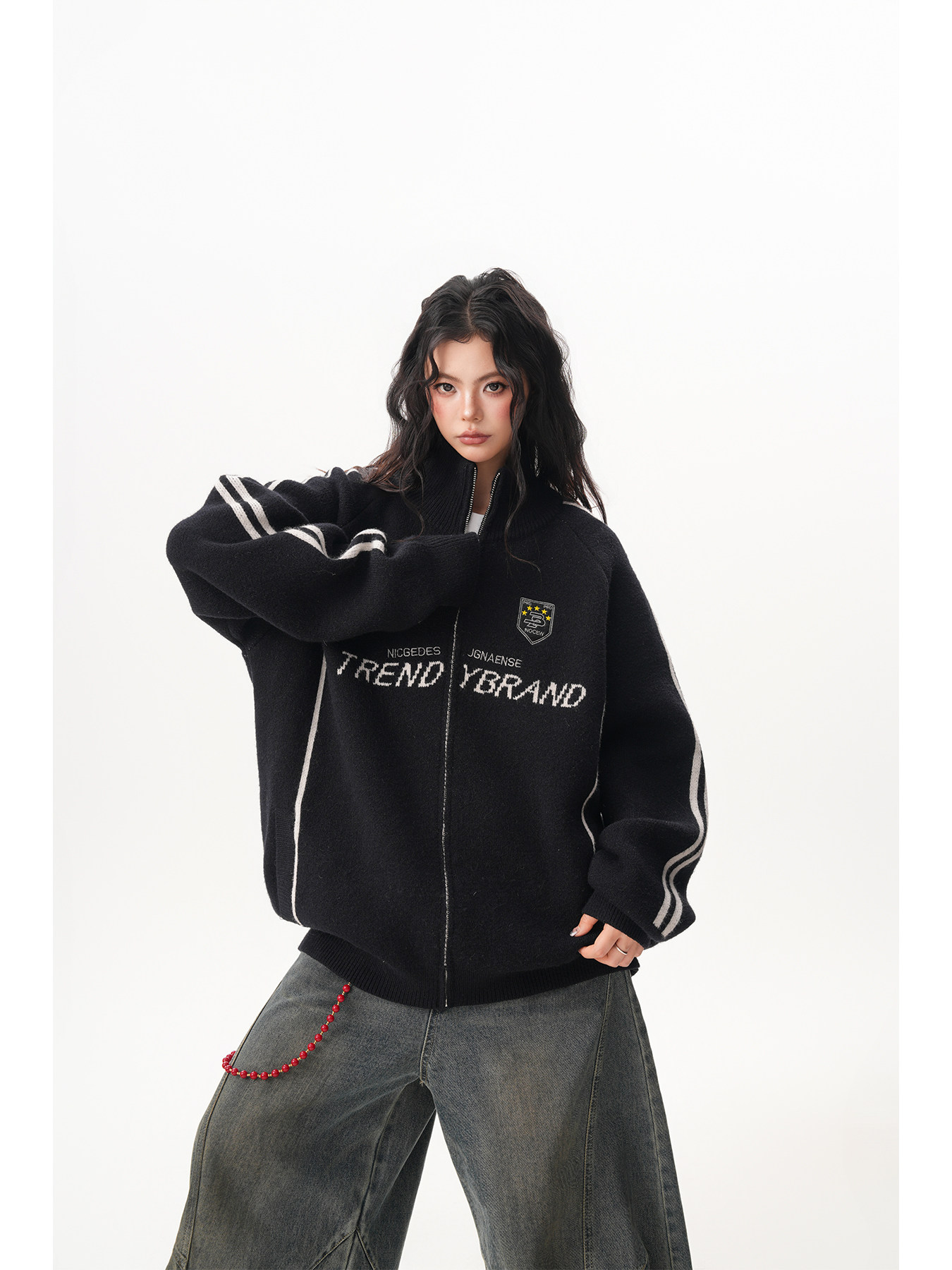 【トップス】アメリカンスポーツ風 立ち襟 ニットカーディガン ユニセックス 秋向け トレンド セーター【FCシリーズ】