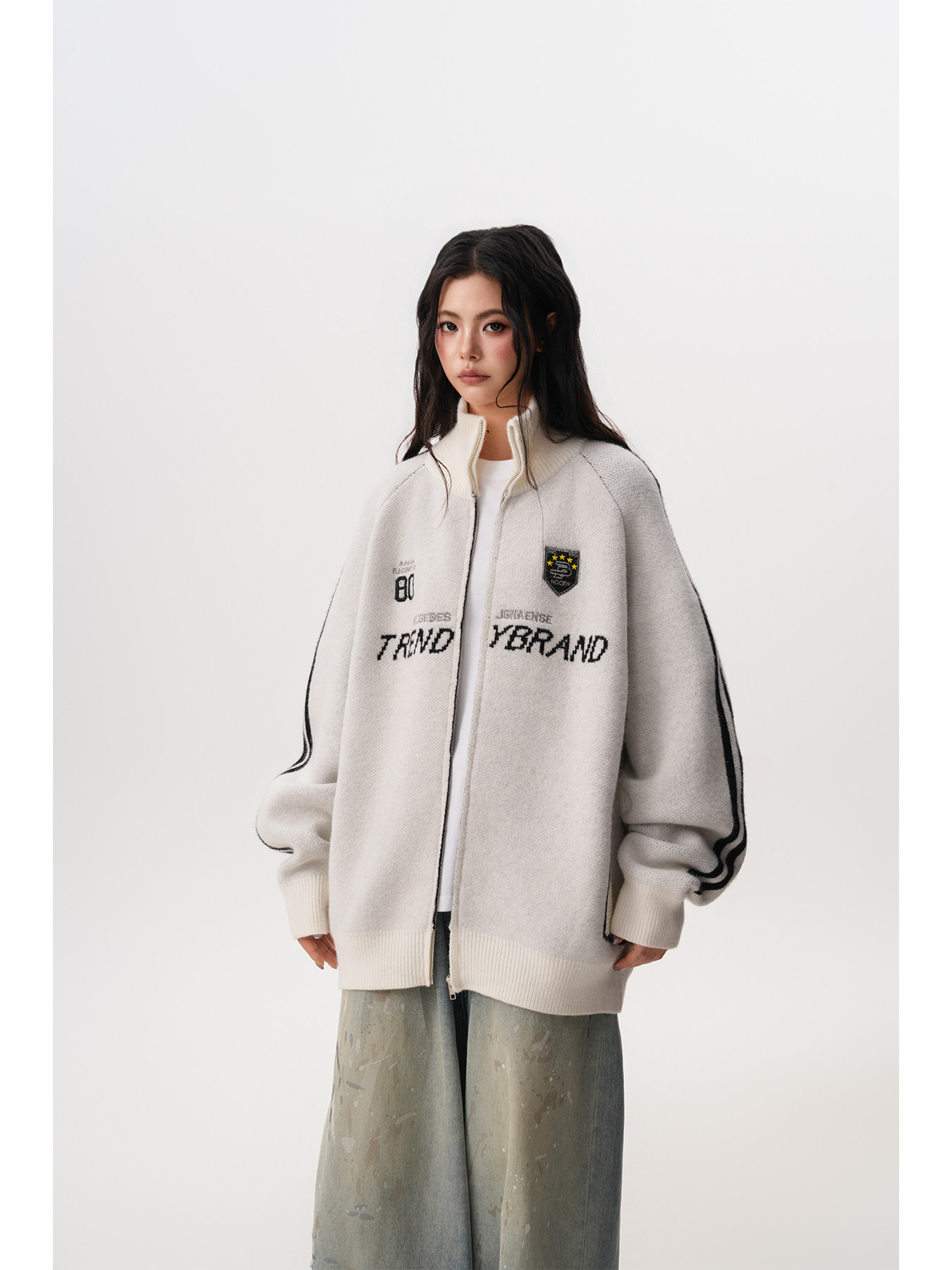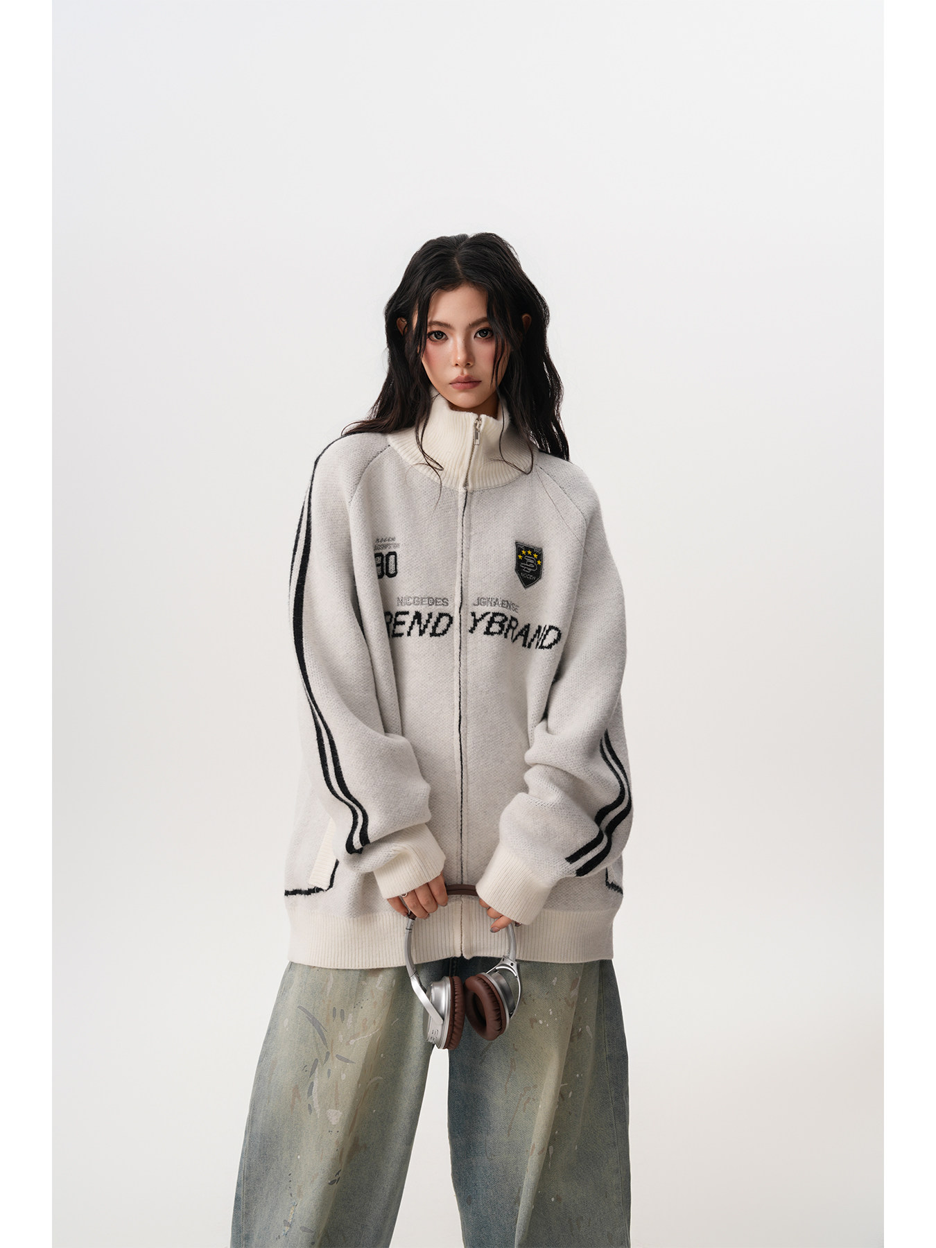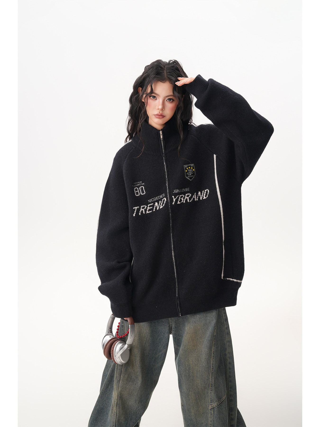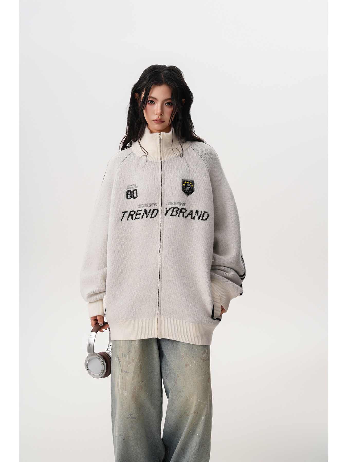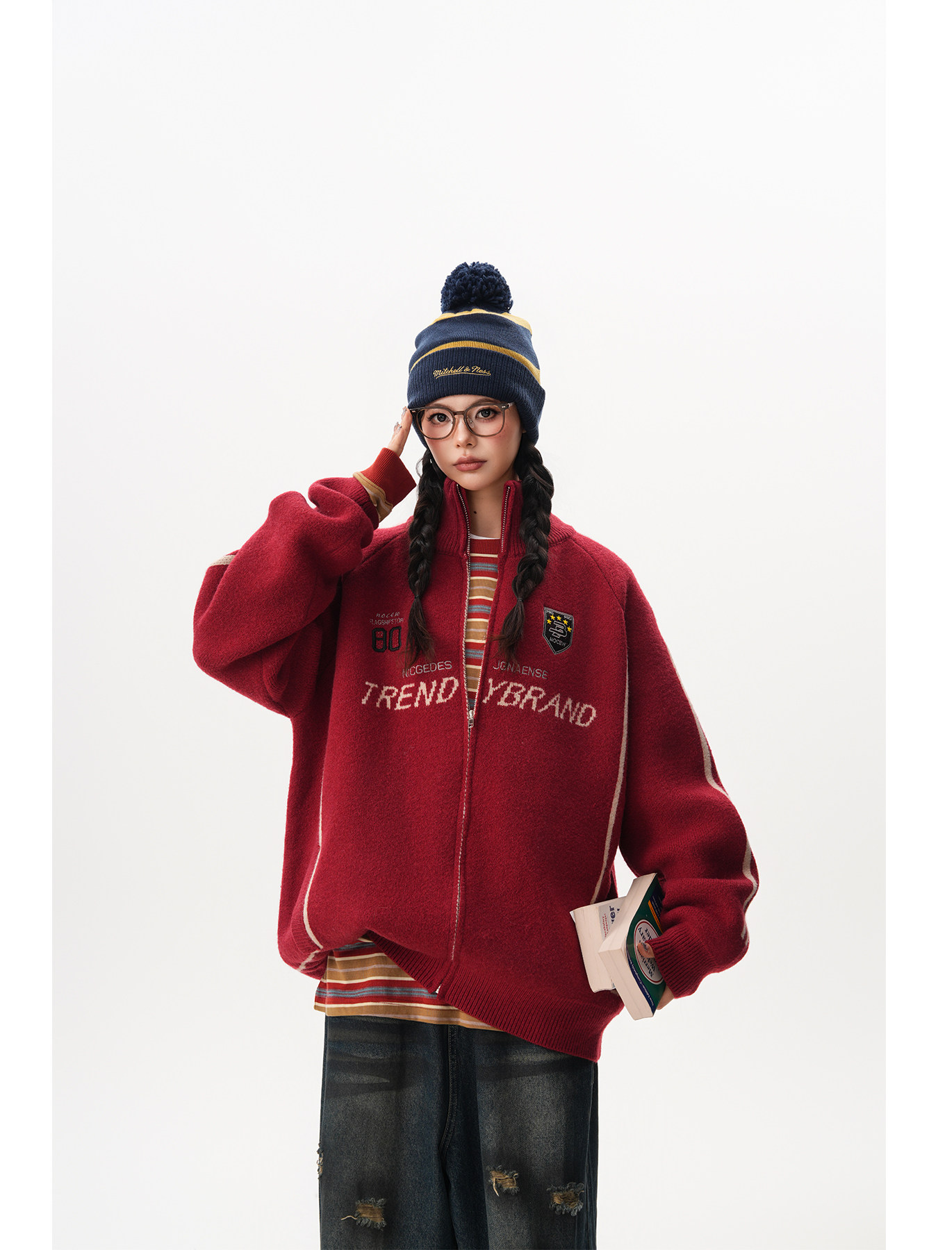 【トップス】アメリカンスポーツ風 立ち襟 ニットカーディガン ユニセックス 秋向け トレンド セーター【FCシリーズ】