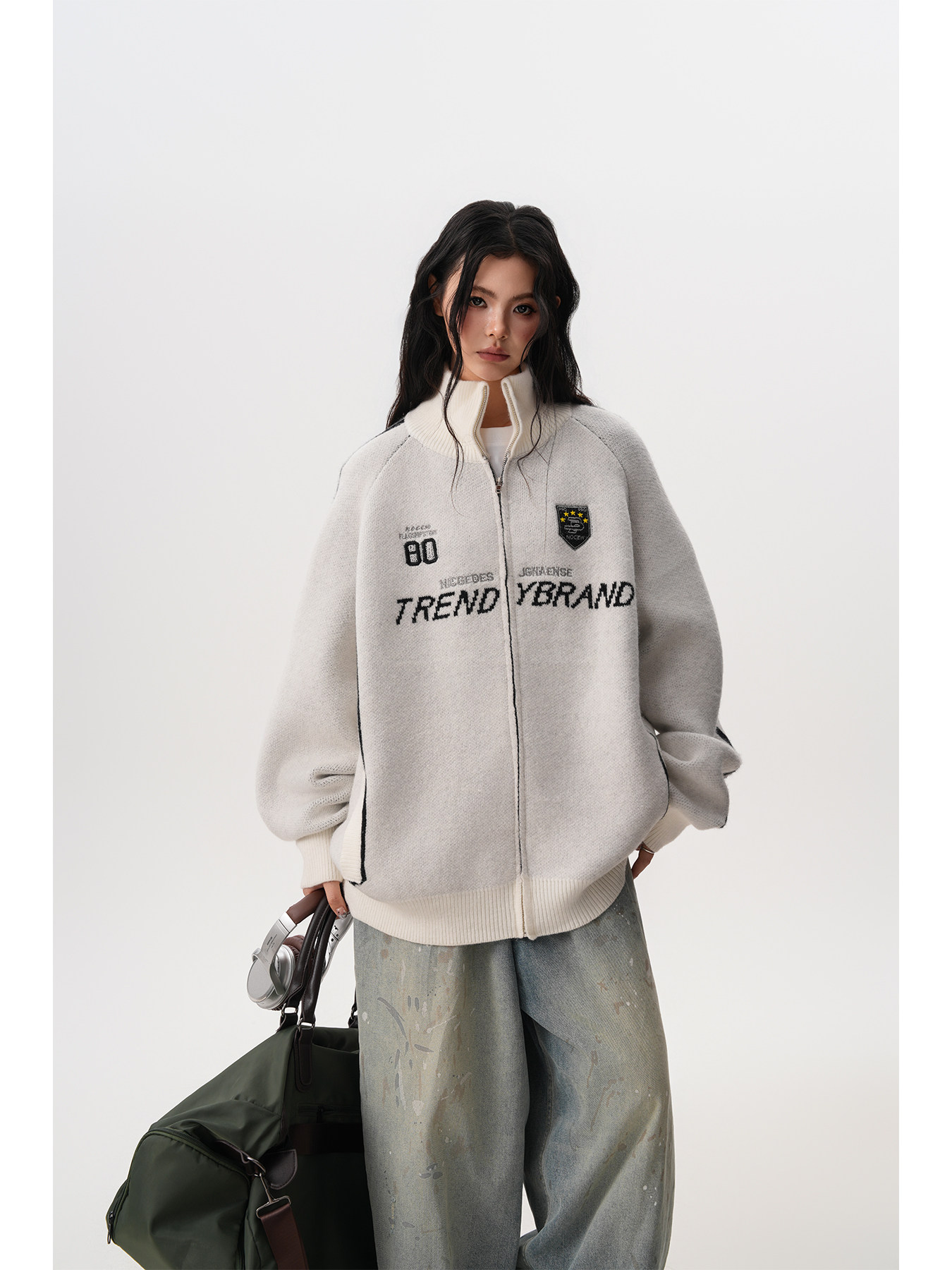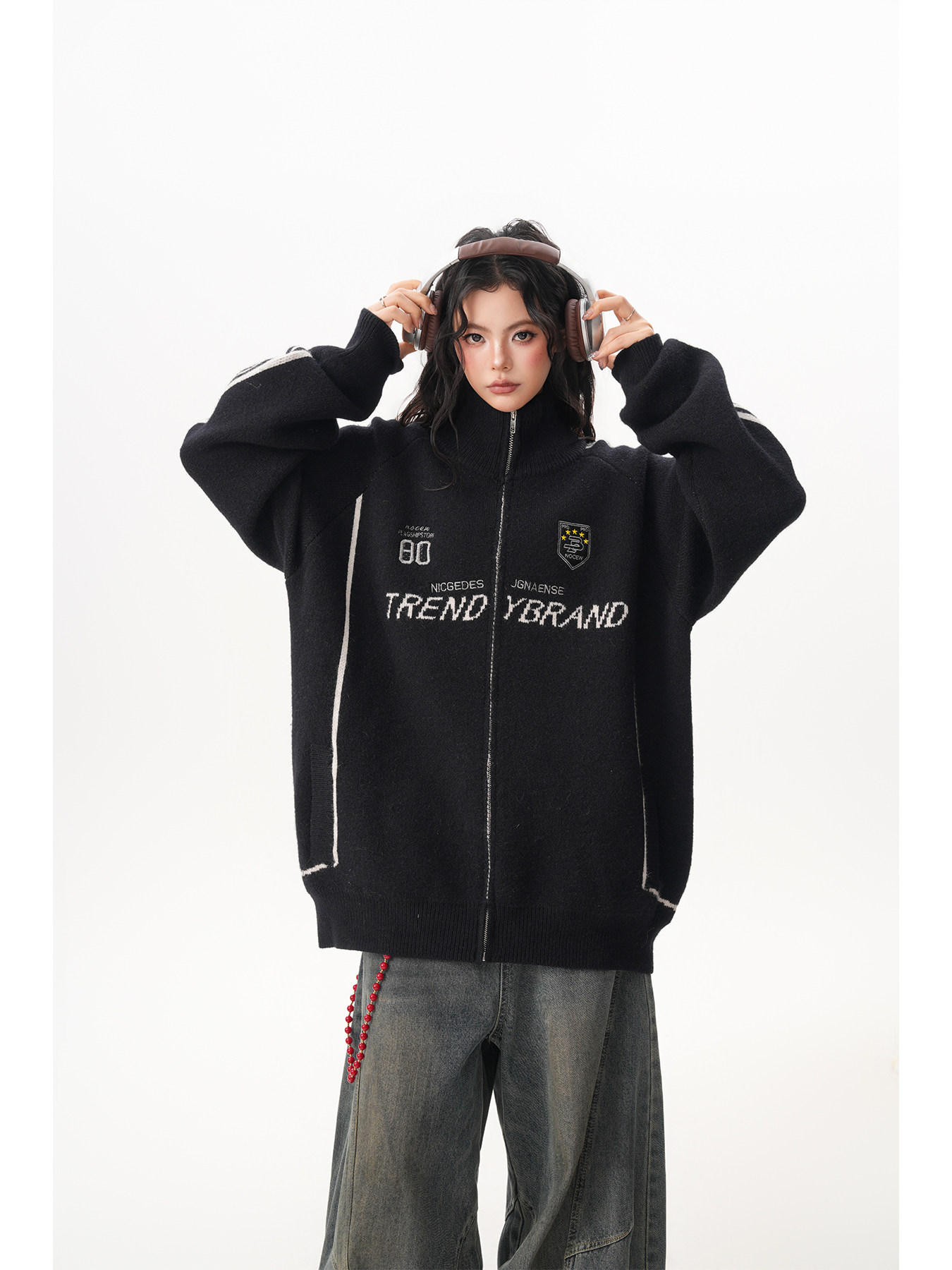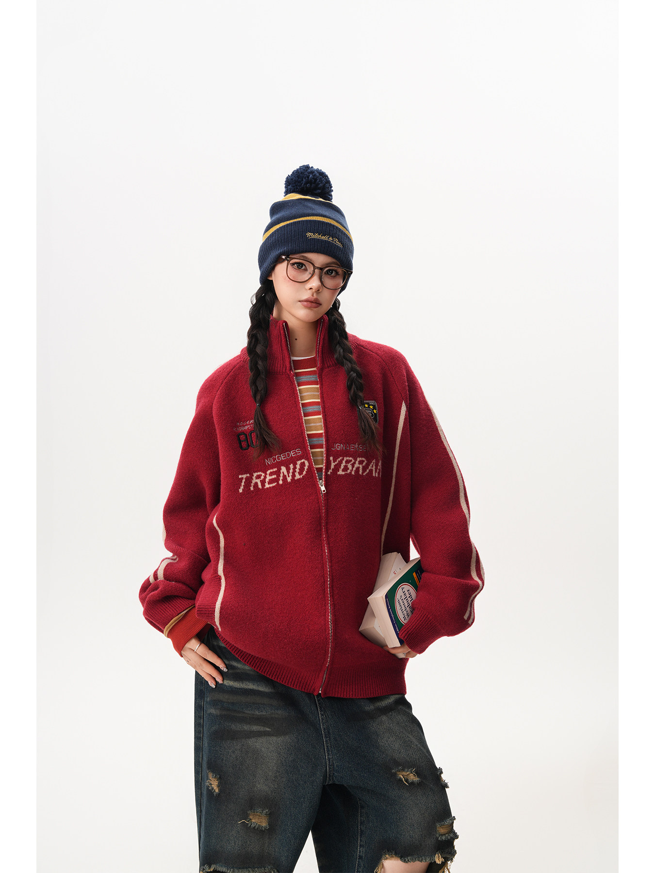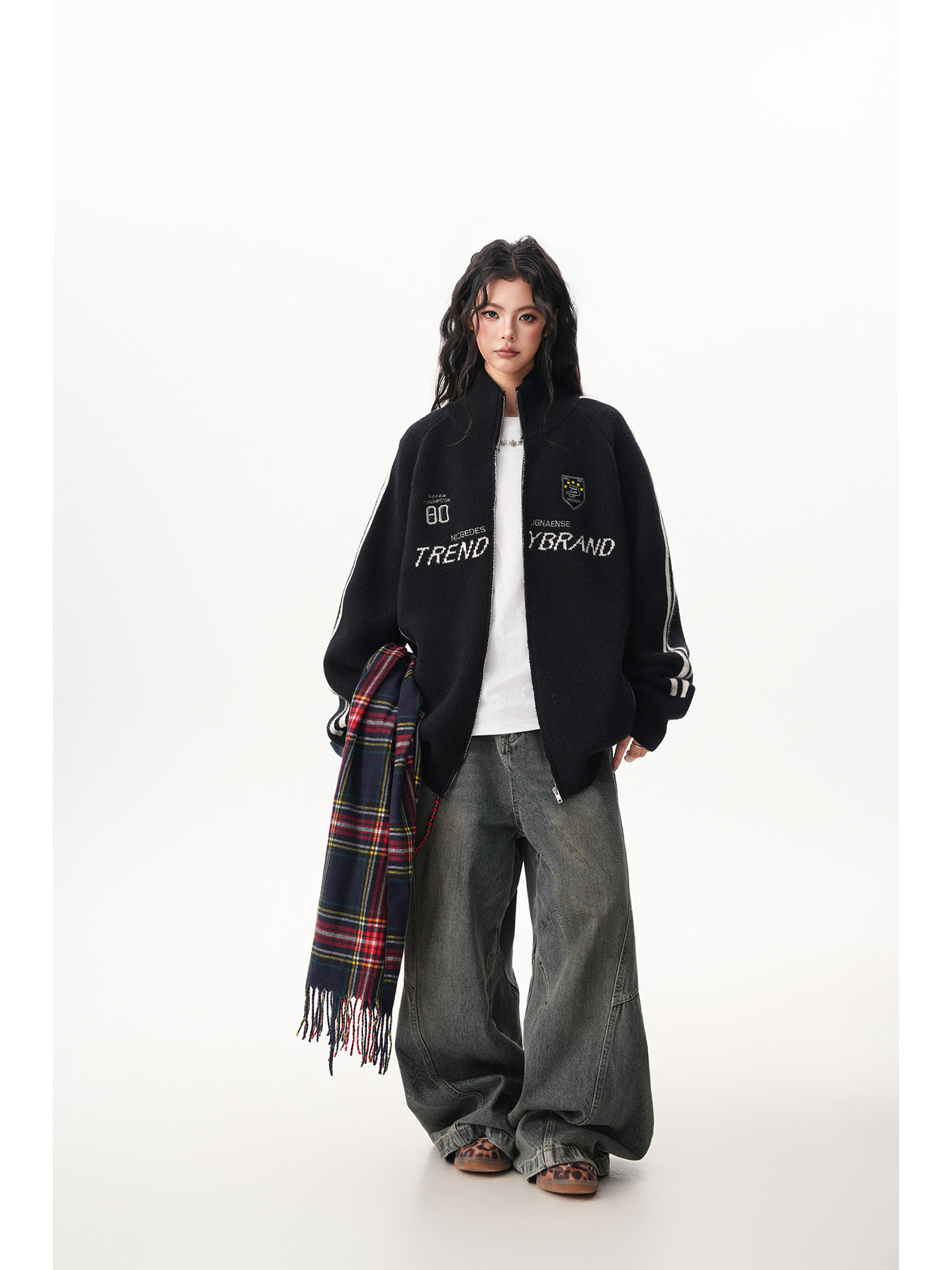【トップス】アメリカンスポーツ風 立ち襟 ニットカーディガン ユニセックス 秋向け トレンド セーター【FCシリーズ】