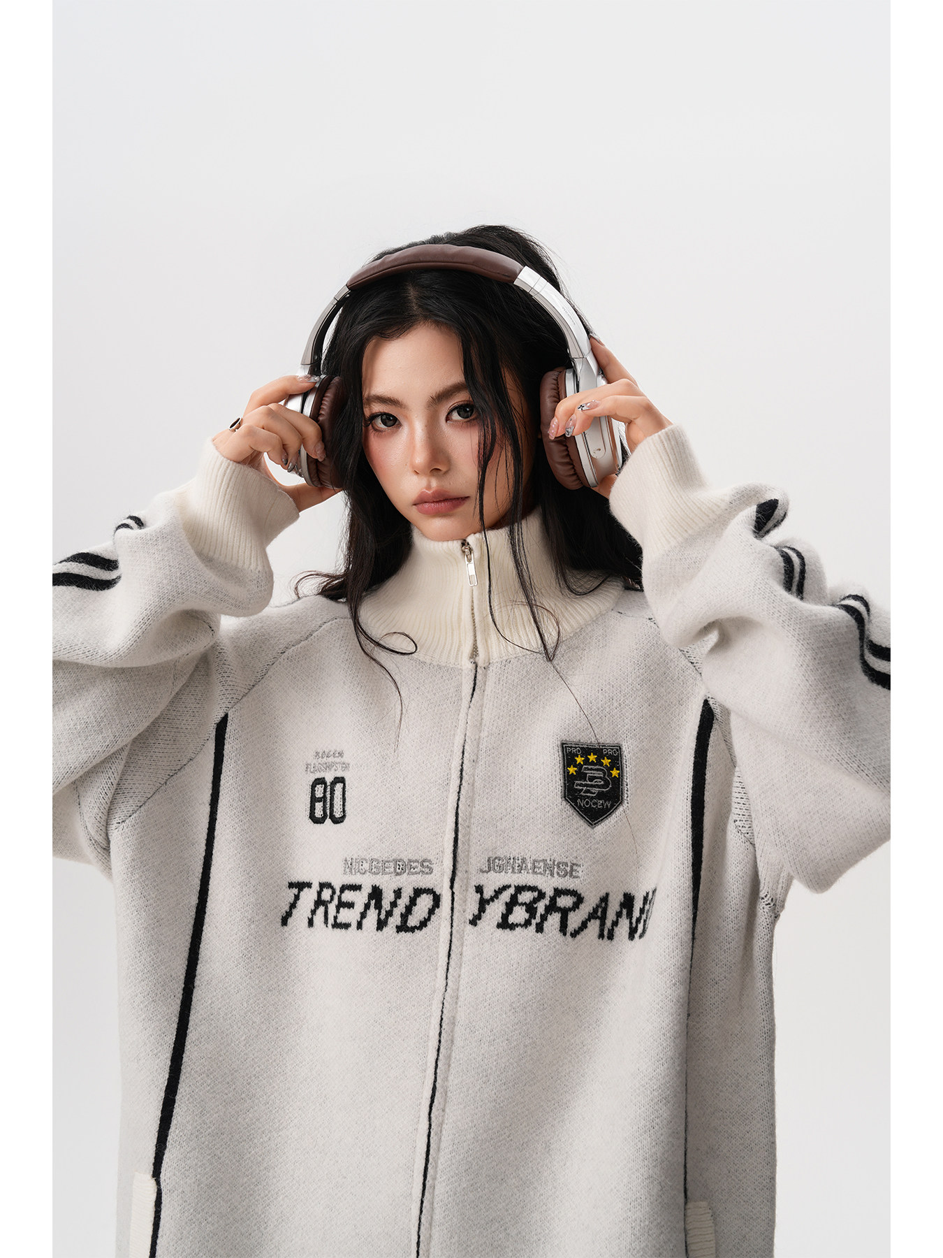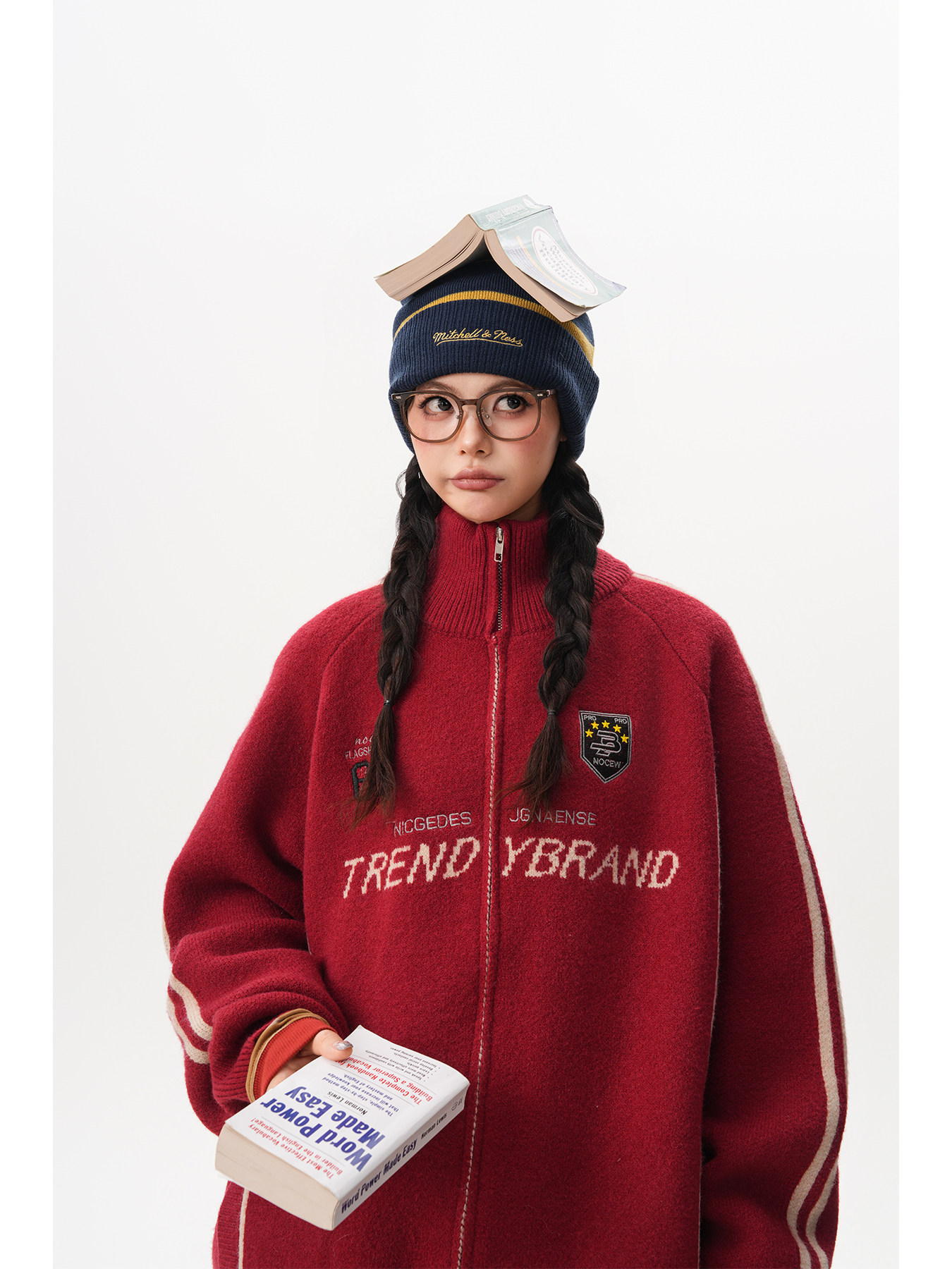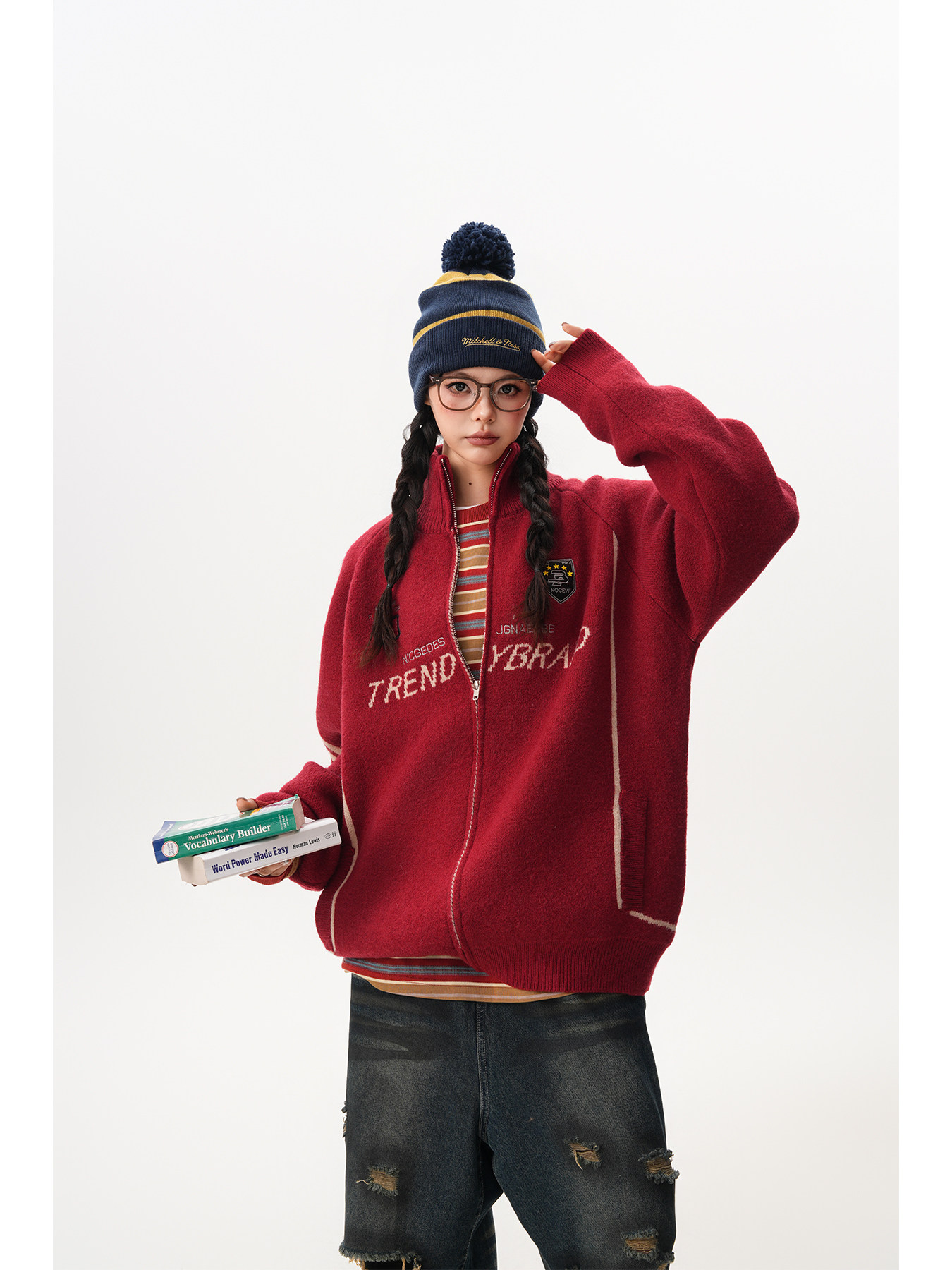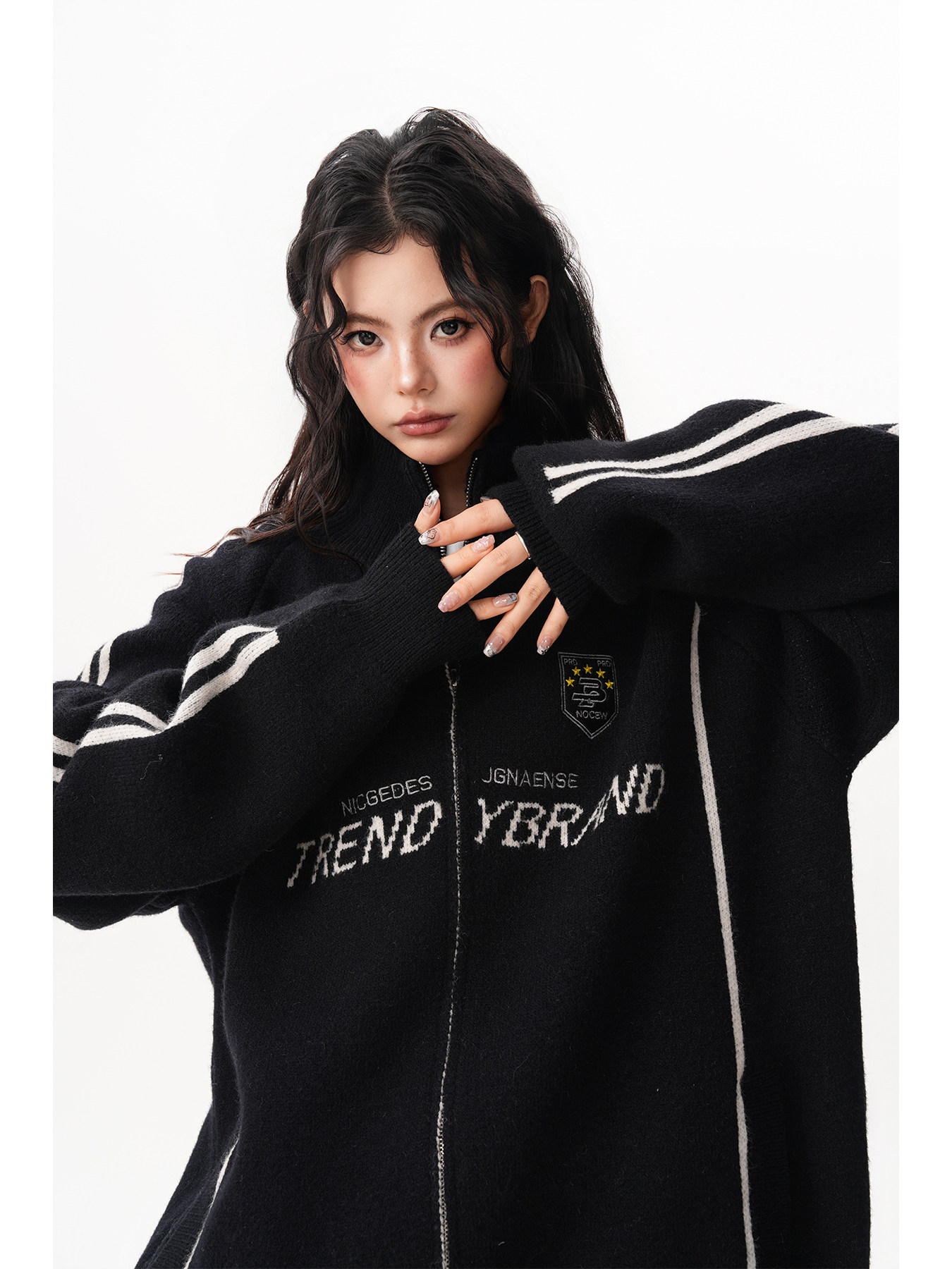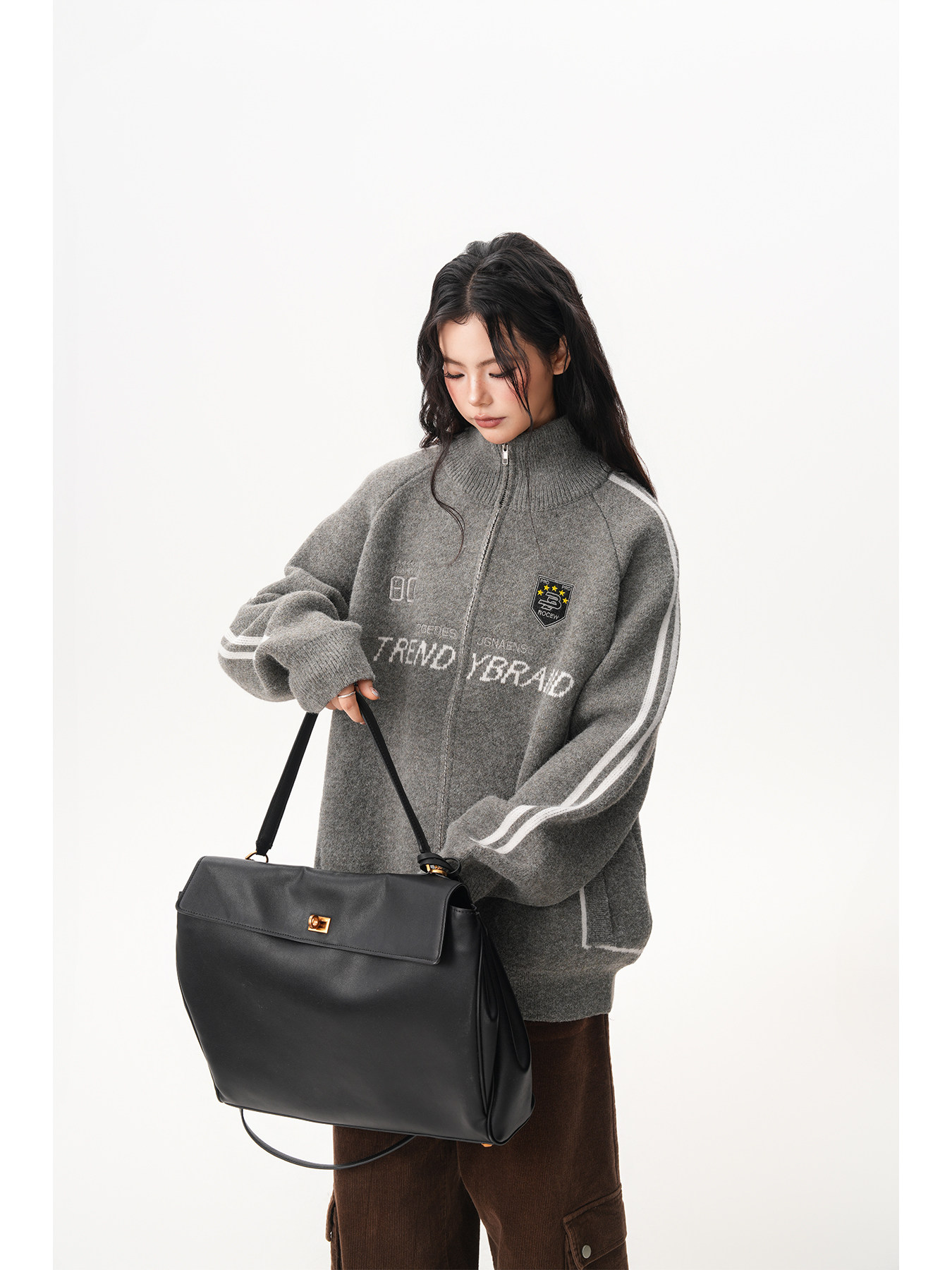 【トップス】アメリカンスポーツ風 立ち襟 ニットカーディガン ユニセックス 秋向け トレンド セーター【FCシリーズ】