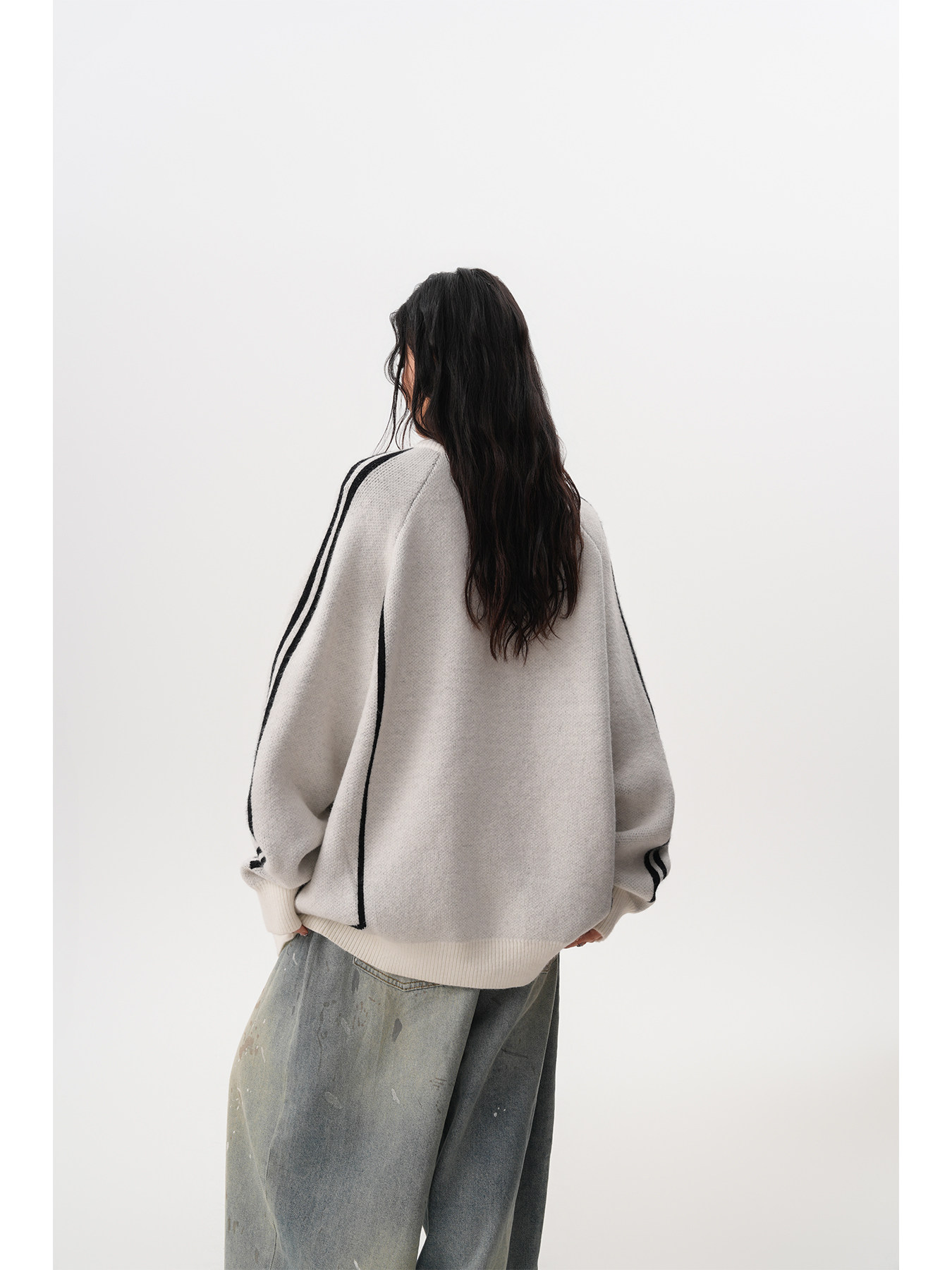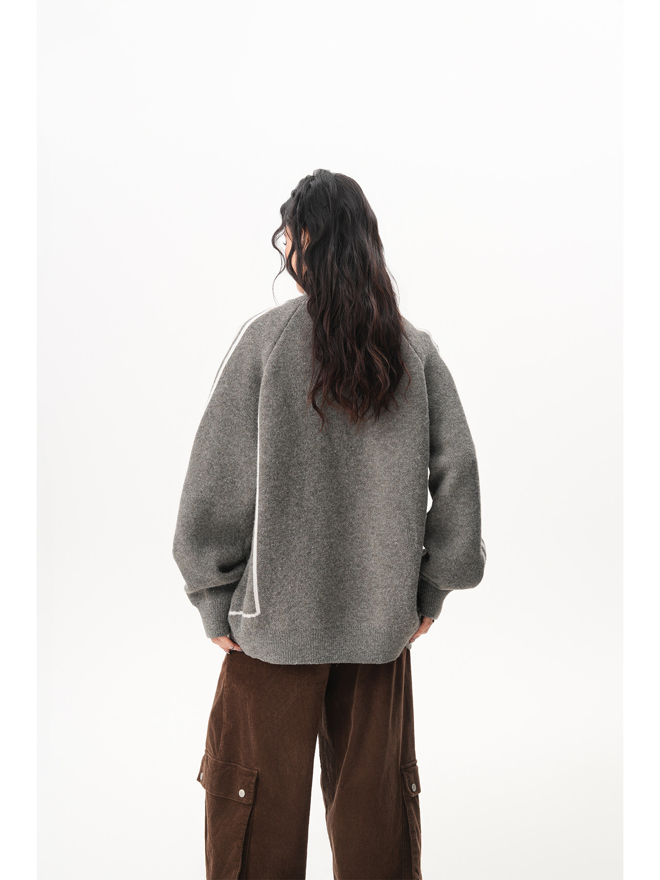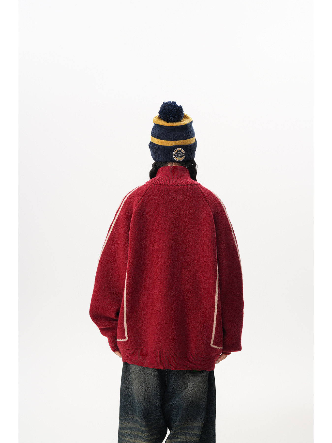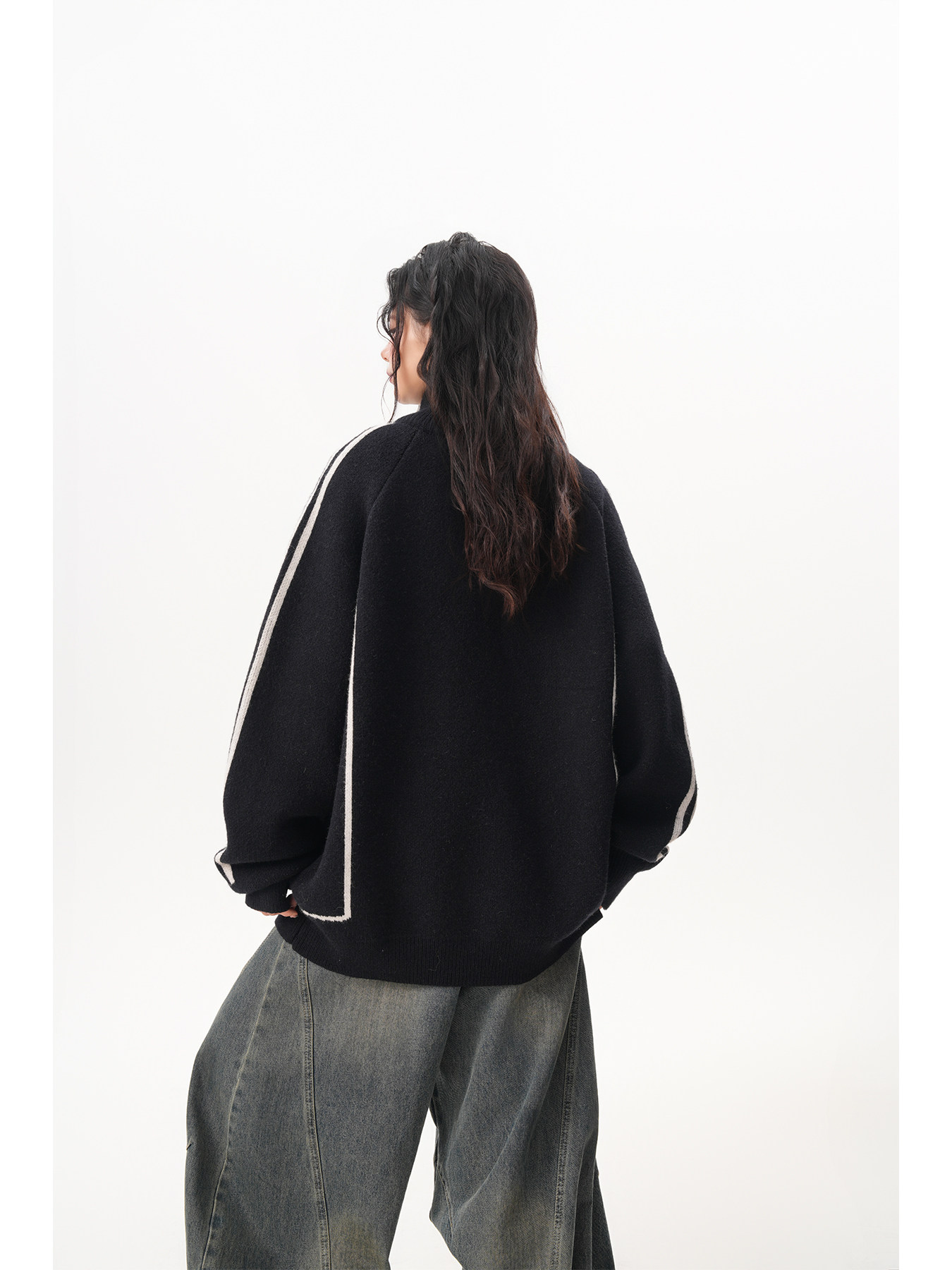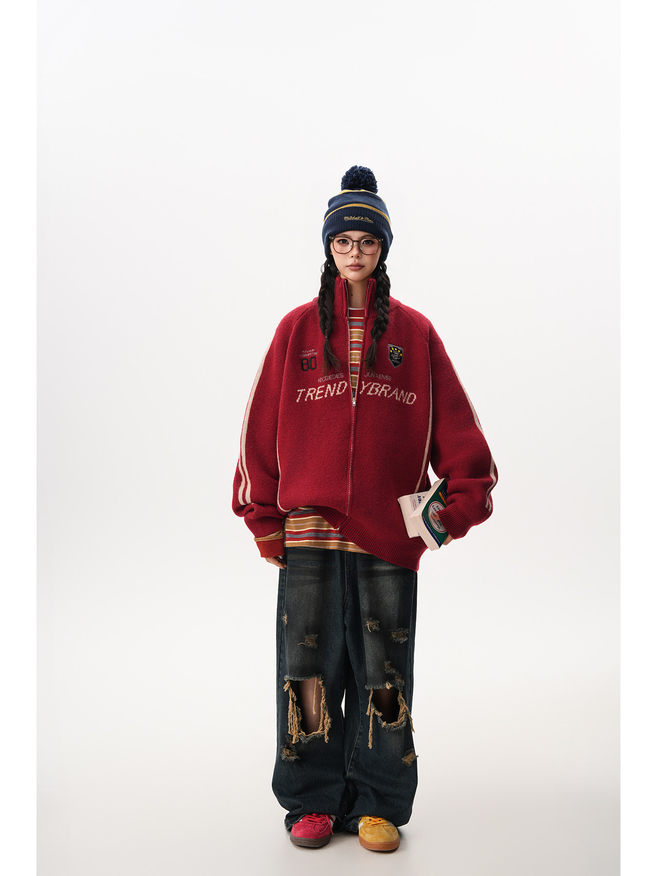 【トップス】アメリカンスポーツ風 立ち襟 ニットカーディガン ユニセックス 秋向け トレンド セーター【FCシリーズ】