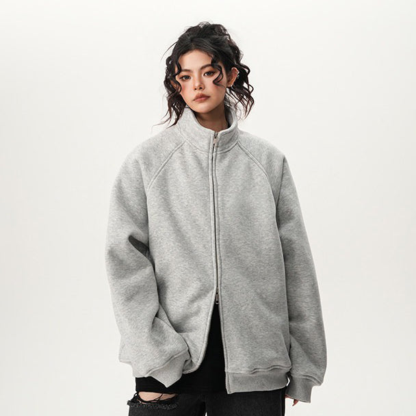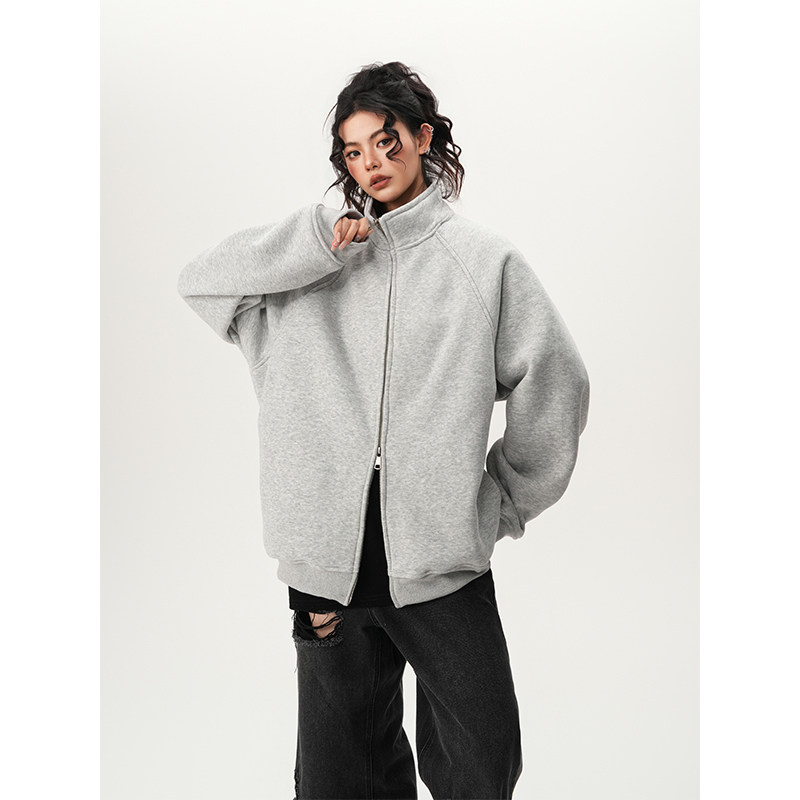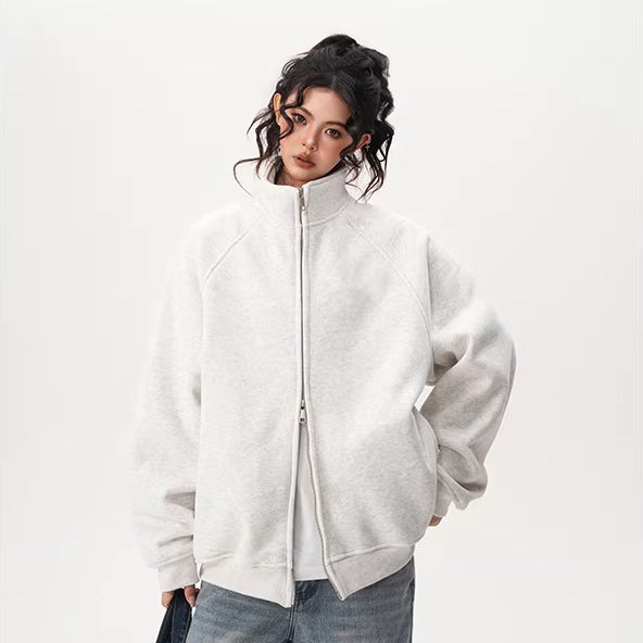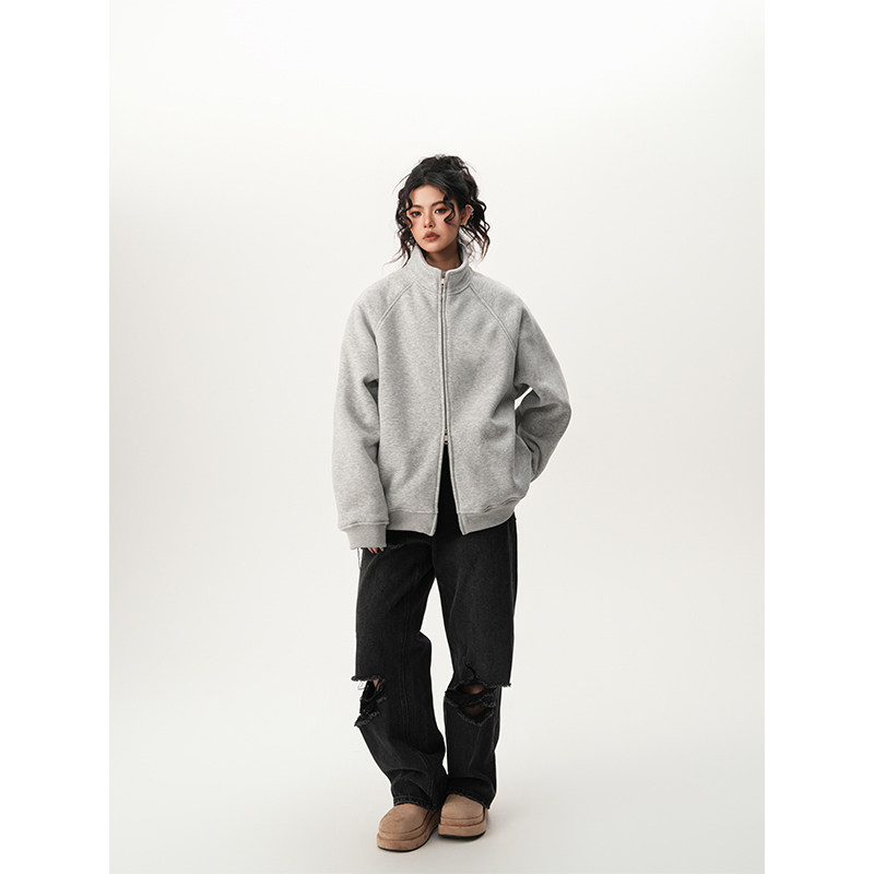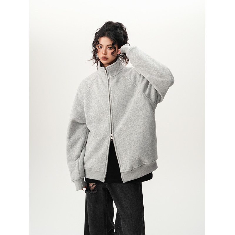 【商品名】【アウター】アメリカン スポーツ風 立ち襟 ニットカーディガン ユニセックス セーター【FCシリーズ】