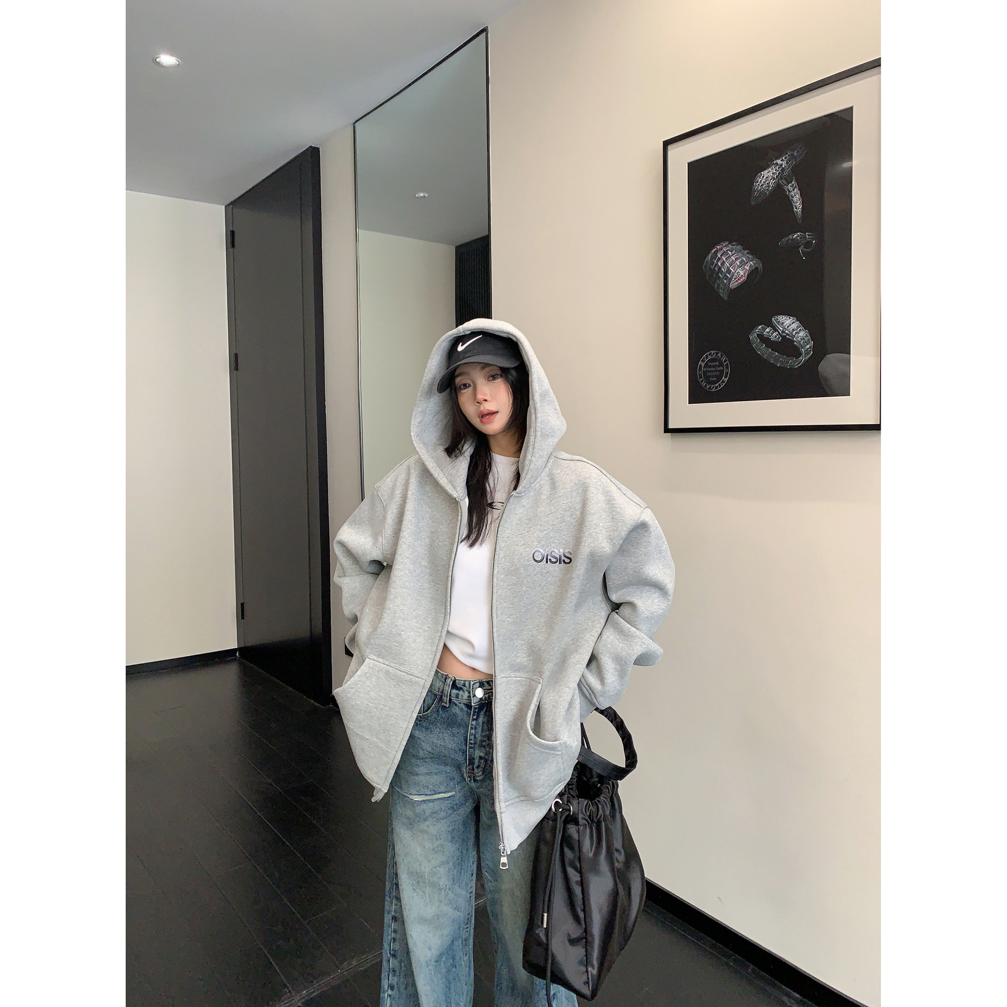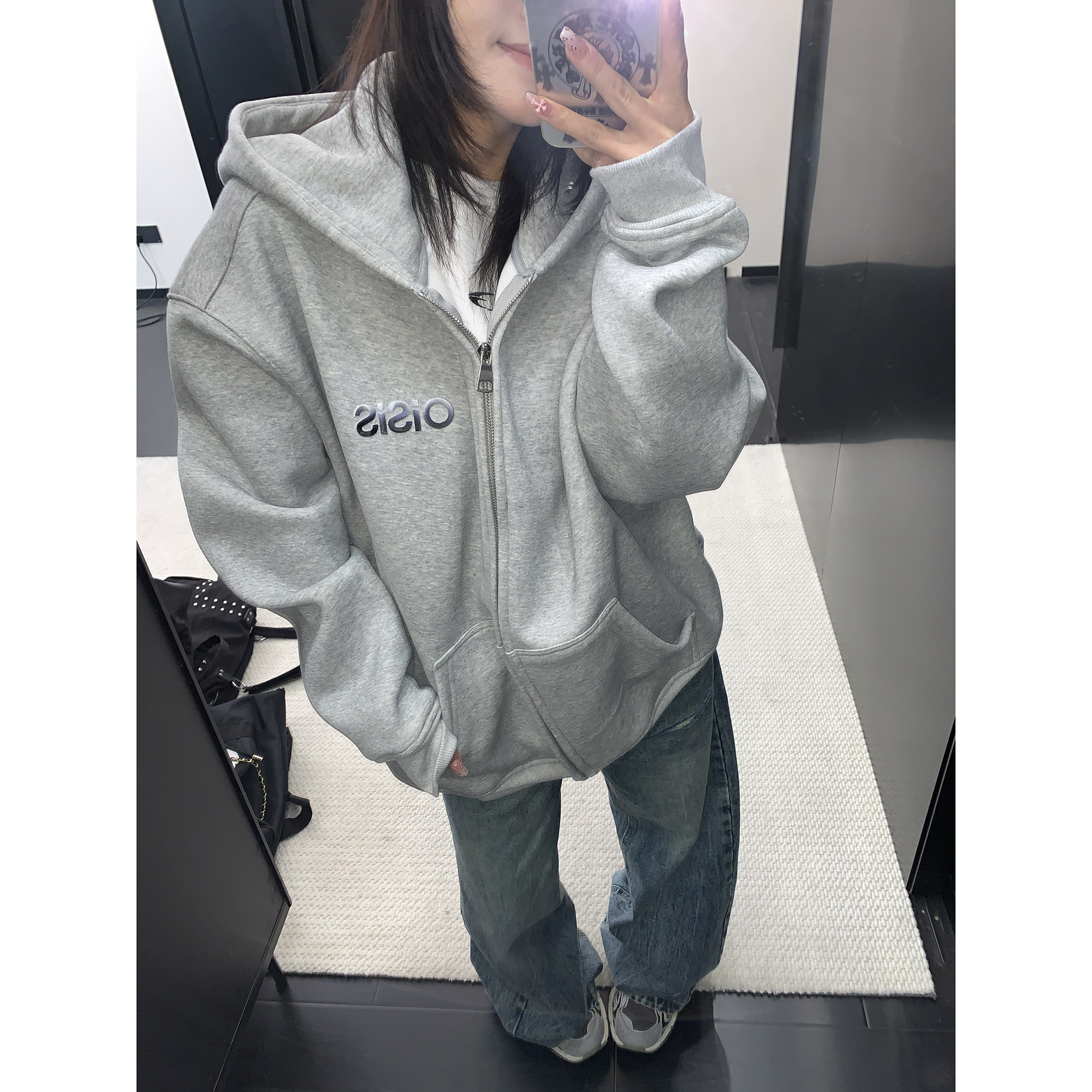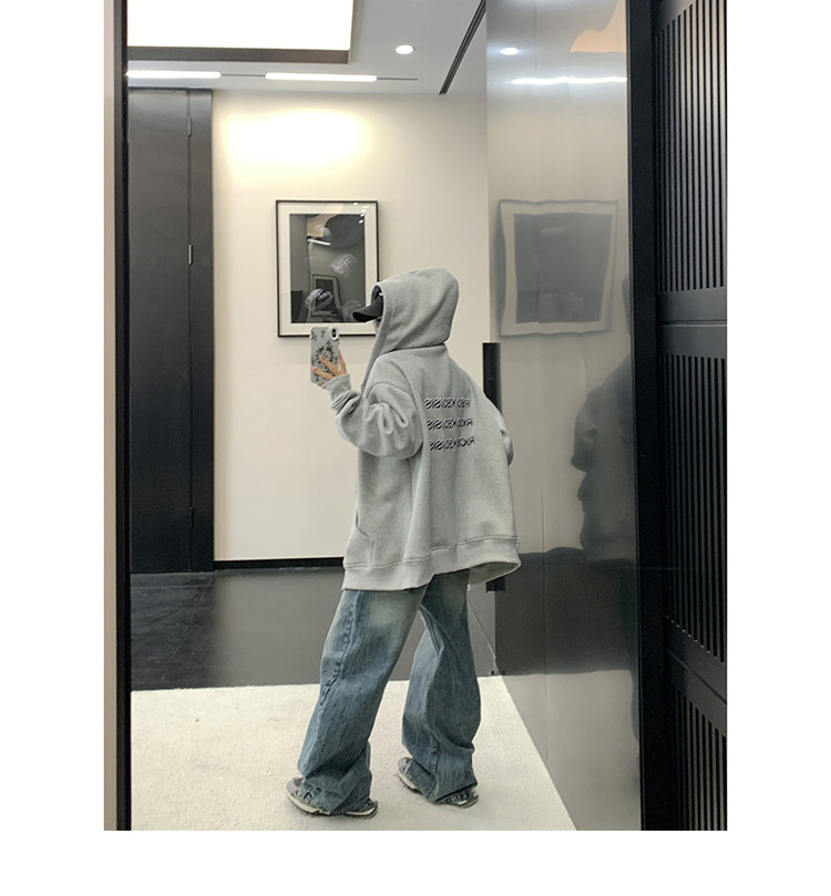 [上衣] 春秋冬寬鬆復古刺繡牛仔連帽衫 [FC系列]