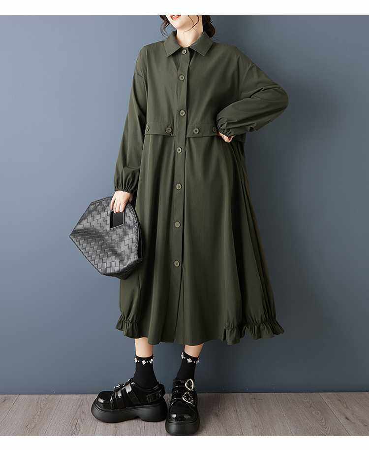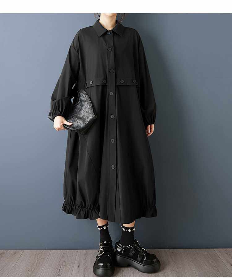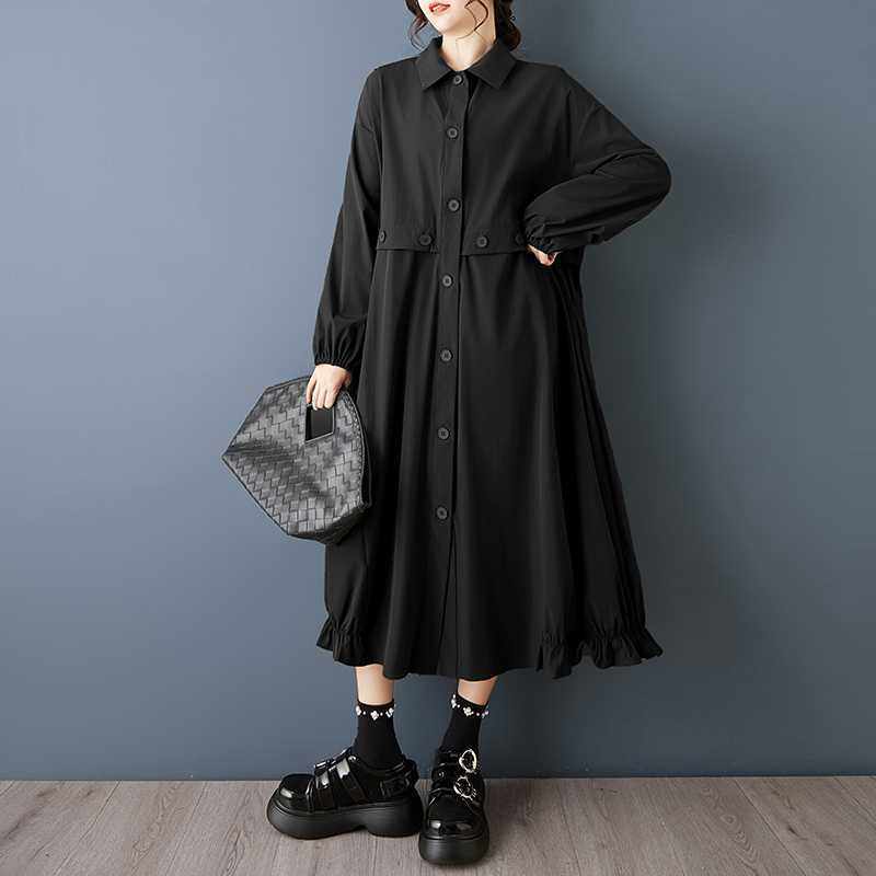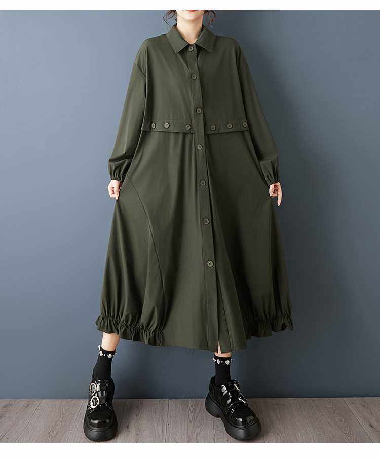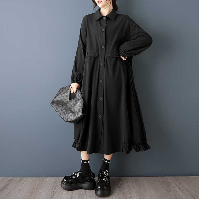 【60%OFF⭐️早い者勝ち】【ワンピース】ダーク系 大きいサイズ ミディ丈 長袖 シャツワンピース ゆったり 細見え 体型カバー【AHシリーズ】