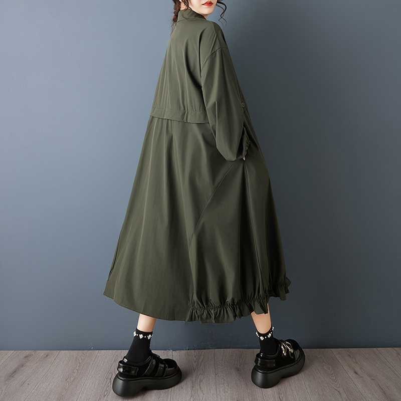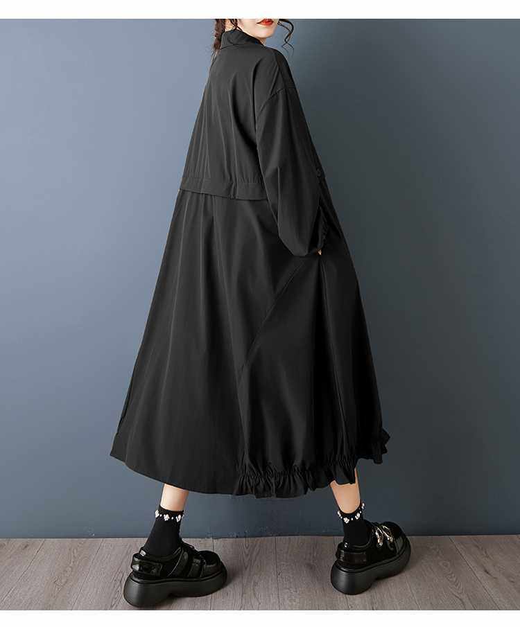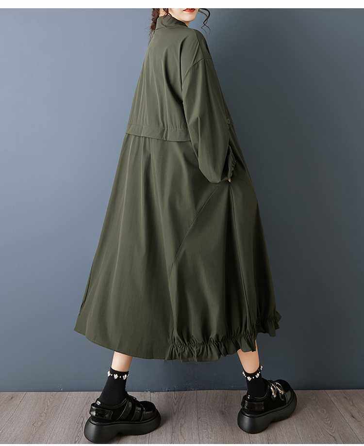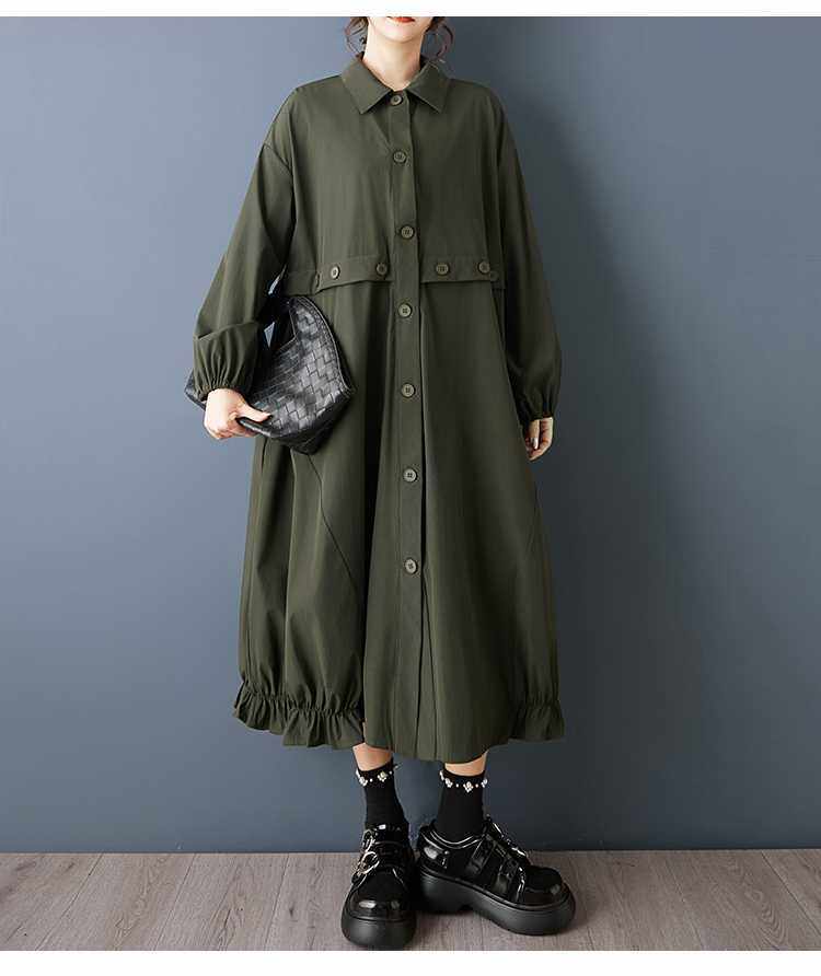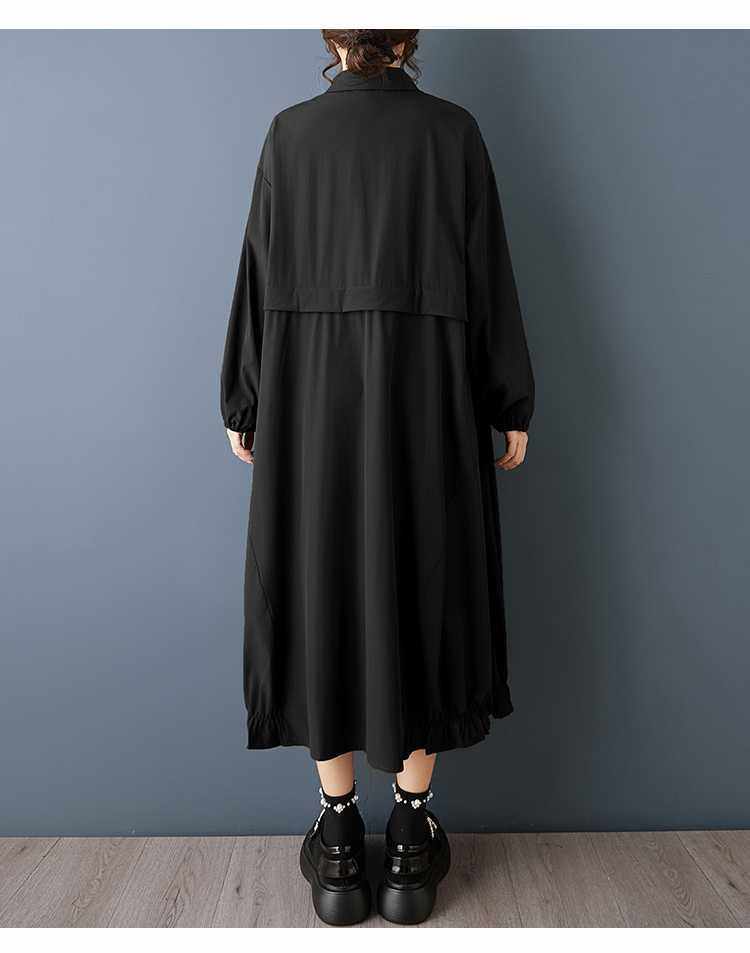 【60%OFF⭐️早い者勝ち】【ワンピース】ダーク系 大きいサイズ ミディ丈 長袖 シャツワンピース ゆったり 細見え 体型カバー【AHシリーズ】