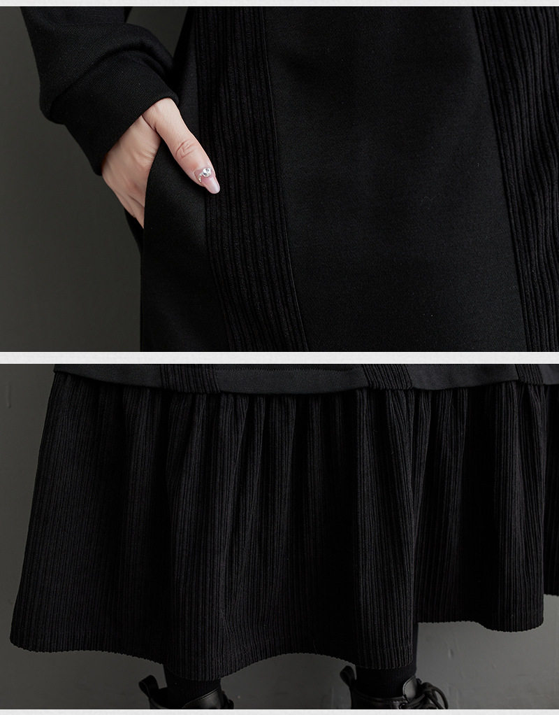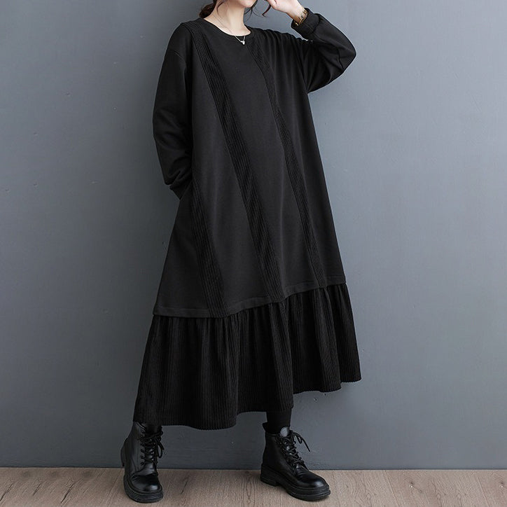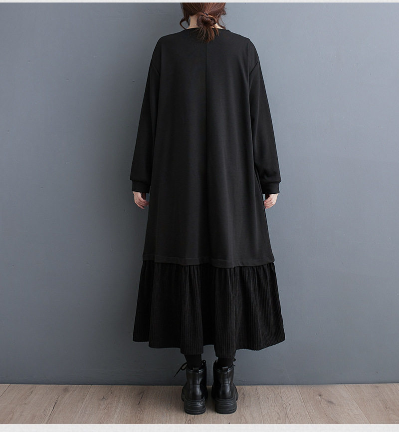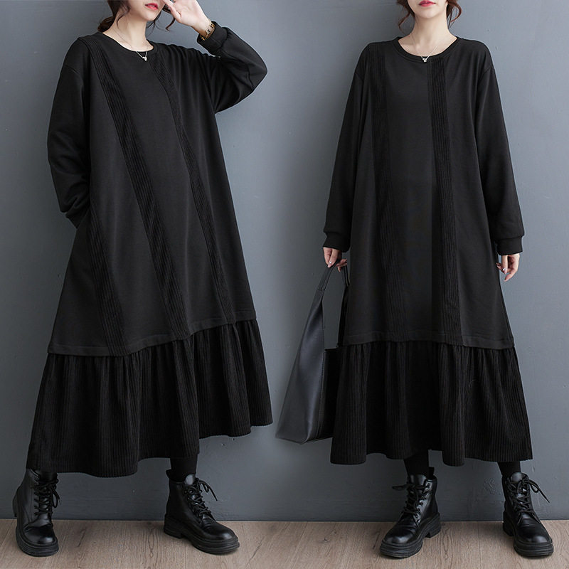 【60%OFF⭐️早い者勝ち】【ワンピース】秋冬 ダーク系 コーデュロイ 切替 ゆったり 長袖 ロングワンピース 暖かい【AHシリーズ】