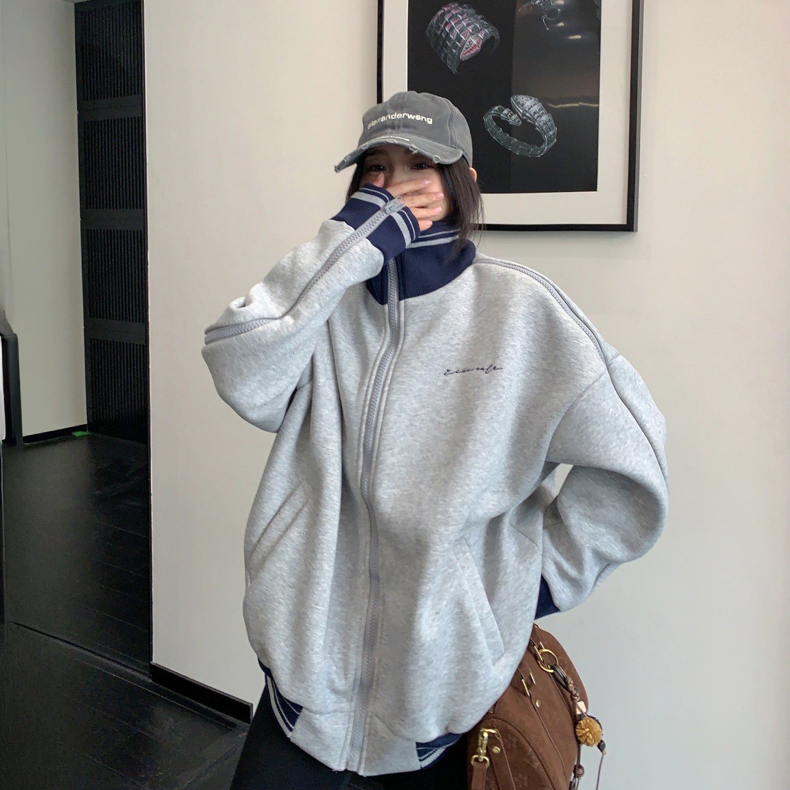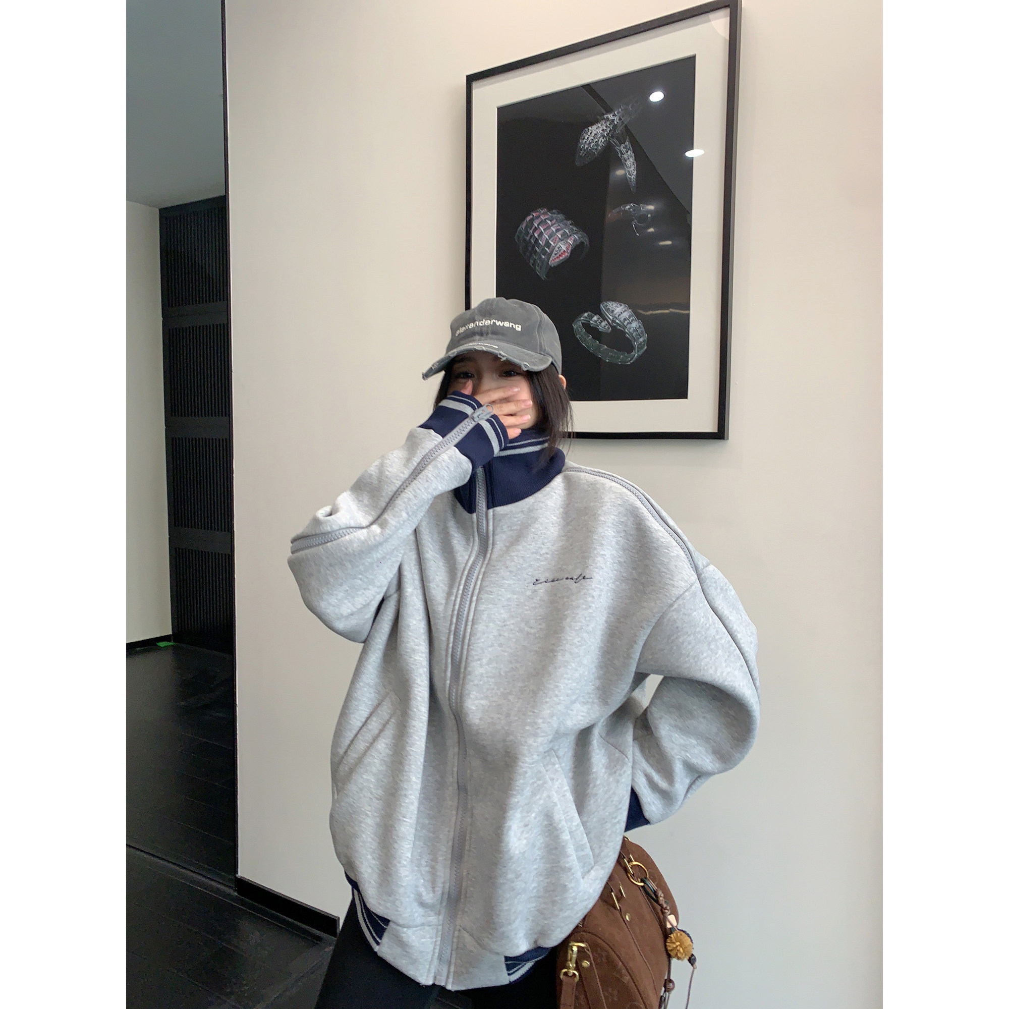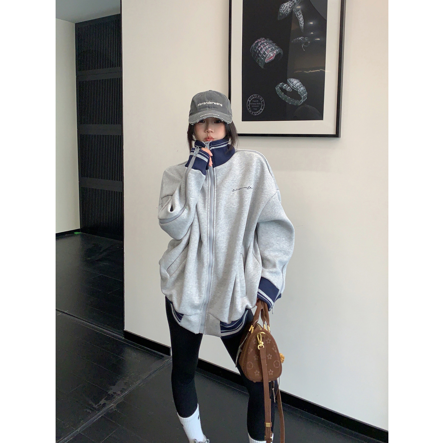 【アウター】アメリカンヴィンテージ レオパード ロゴ ジップアップパーカー ゆったり 男女兼用 カジュアルカーディガン【FCシリーズ】