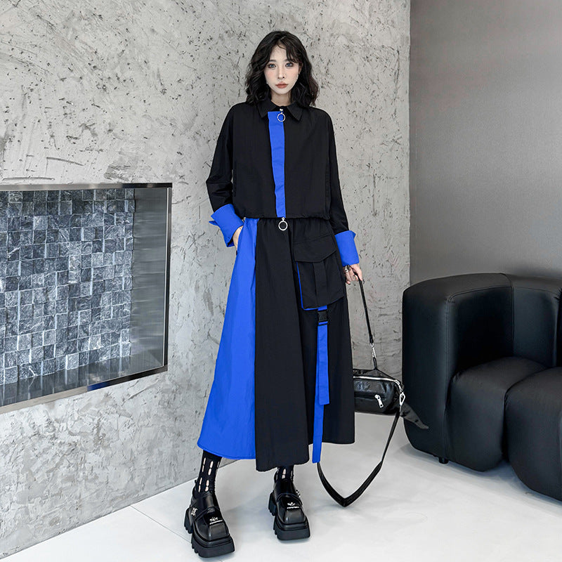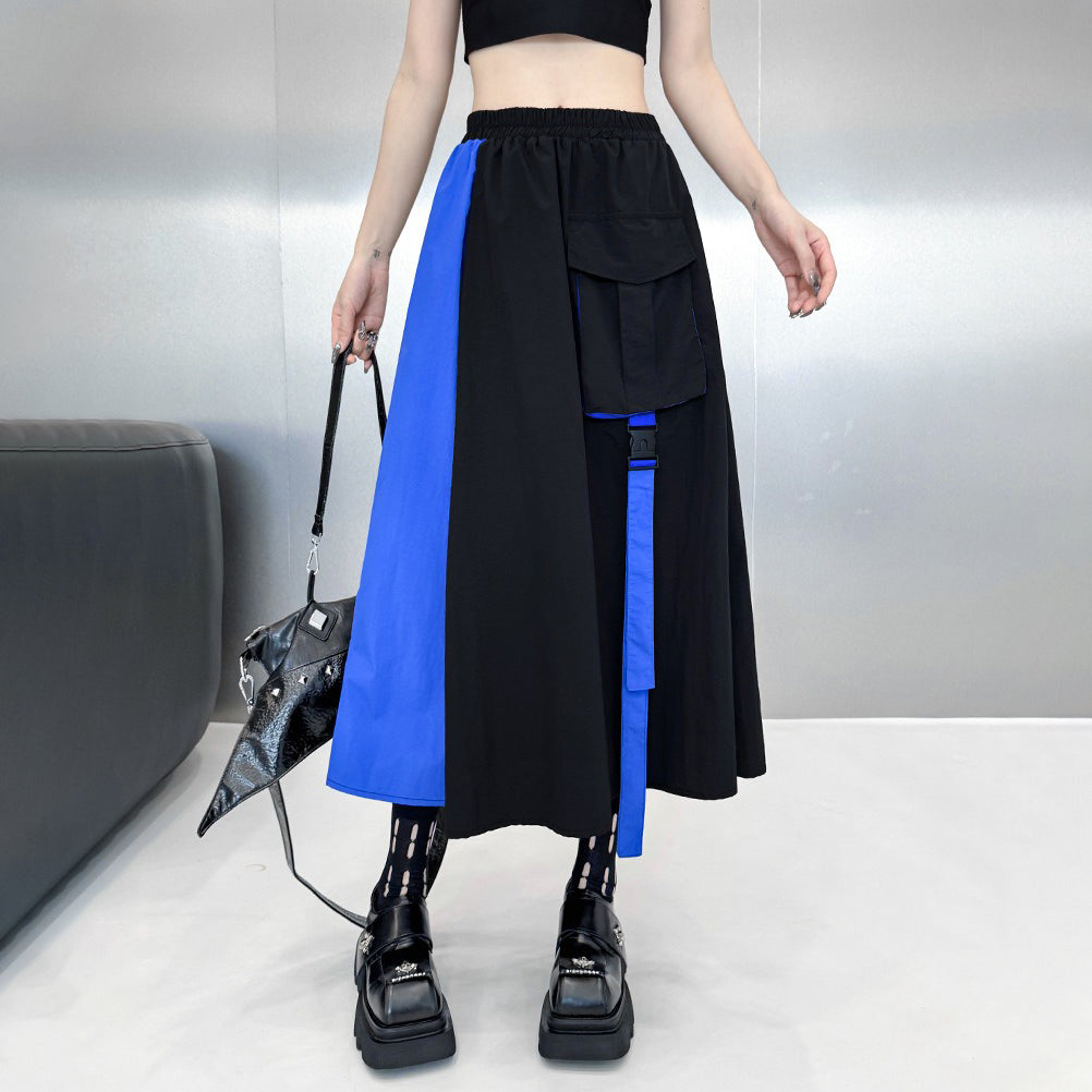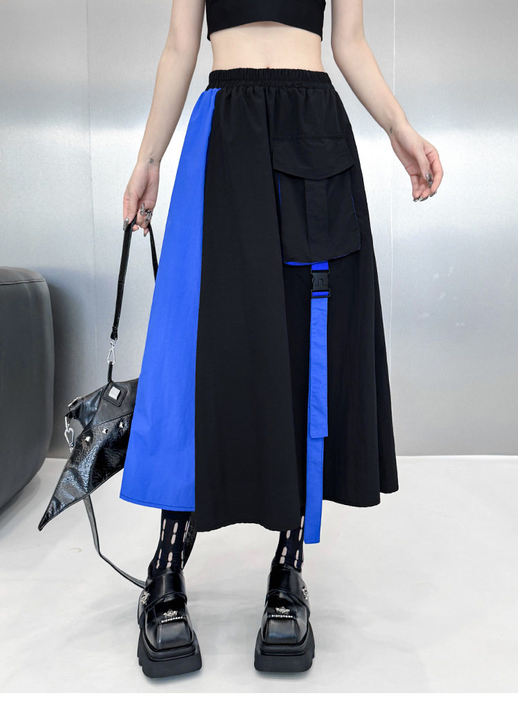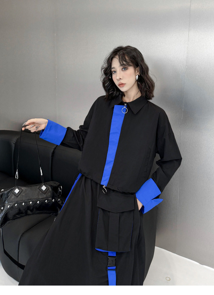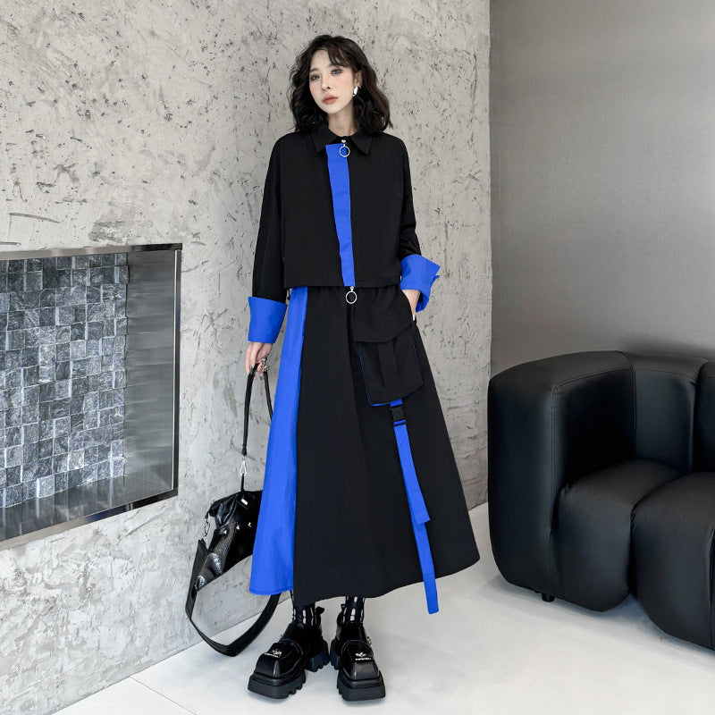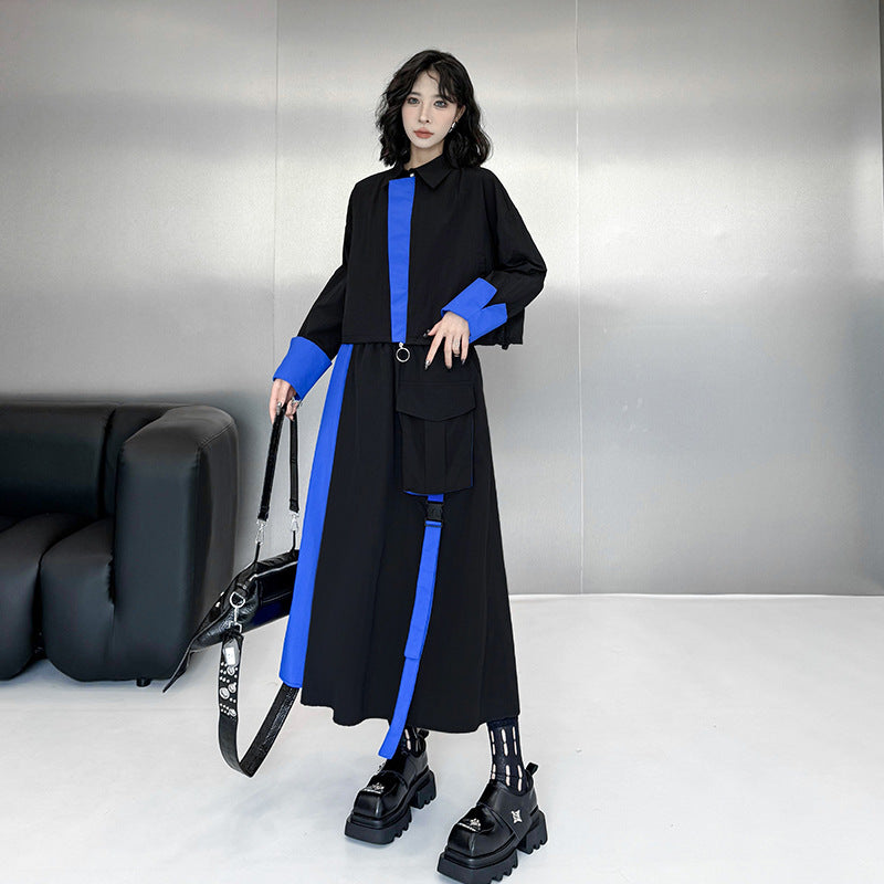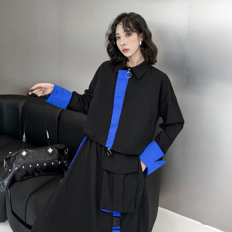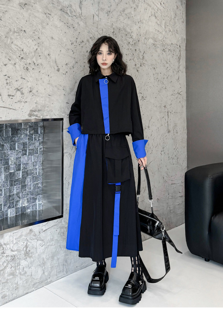 【商品名】2点セット!【セットアップ】モードデザイン 配色切替 ショートトップス+ウエストゴム スカート 上下セット レディース 春秋【AHシリーズ】