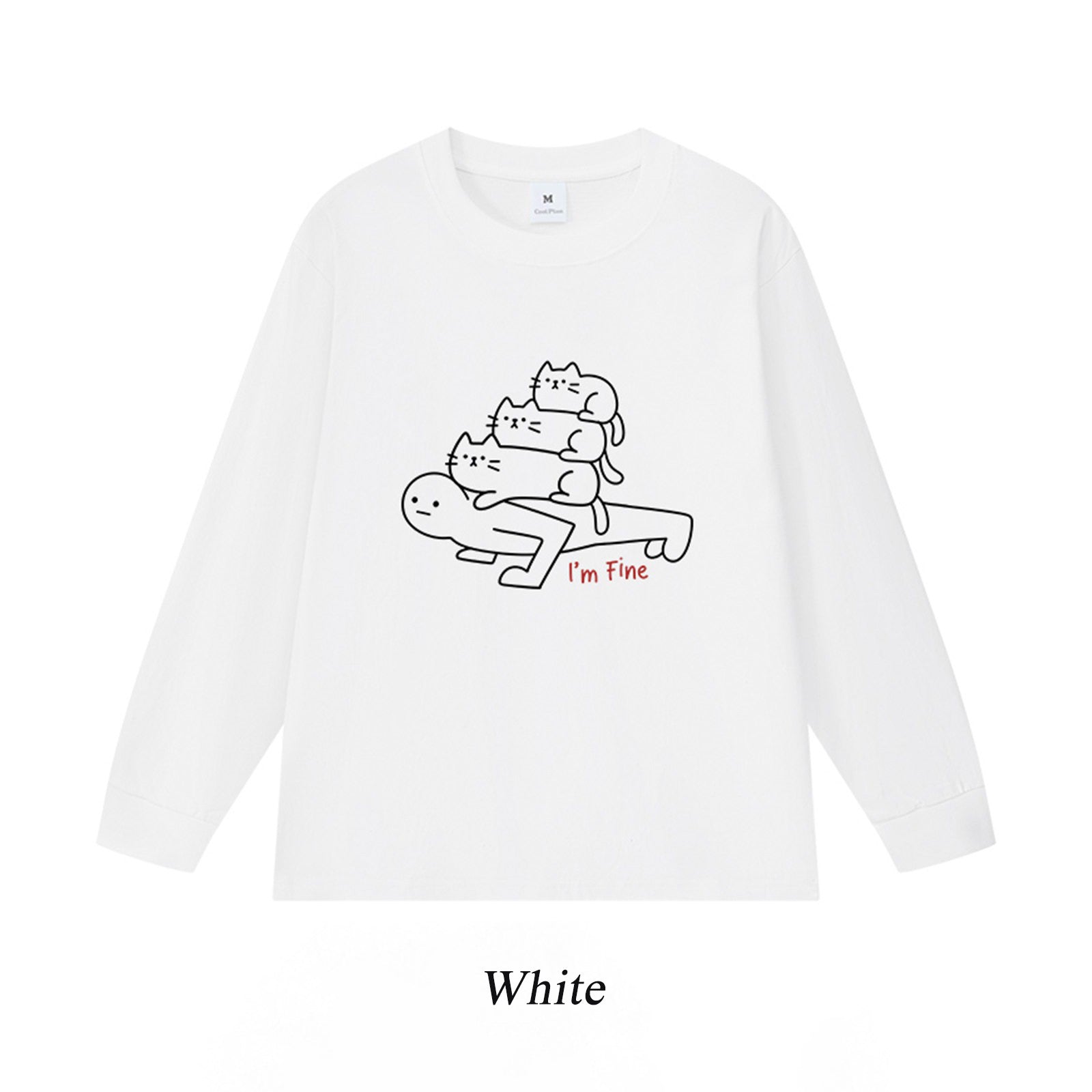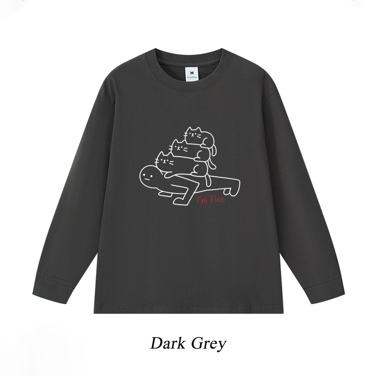 6カラー | S~3XL【トップス】猫からのプレッシャー プリント ロングTシャツ 春秋 ユニセックス ルーズ コットン【FCシリーズ】