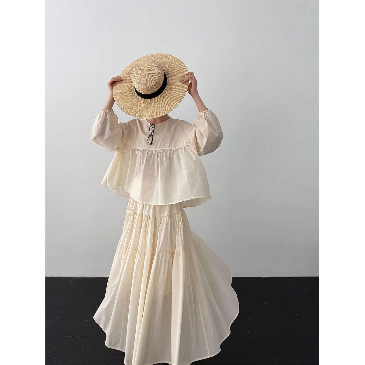 【商品名】【セットアップ】スウィート ドール風ブラウス + フレアスカート 2点上下セット 【JZシリーズ】