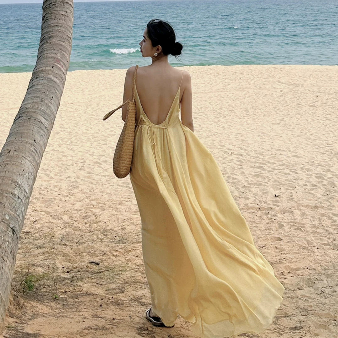 【商品名】【ワンピース】【海辺のリゾート】着痩せ ノースリーブワンピース 2026新作|ビーチ 撮影用 映えドレス